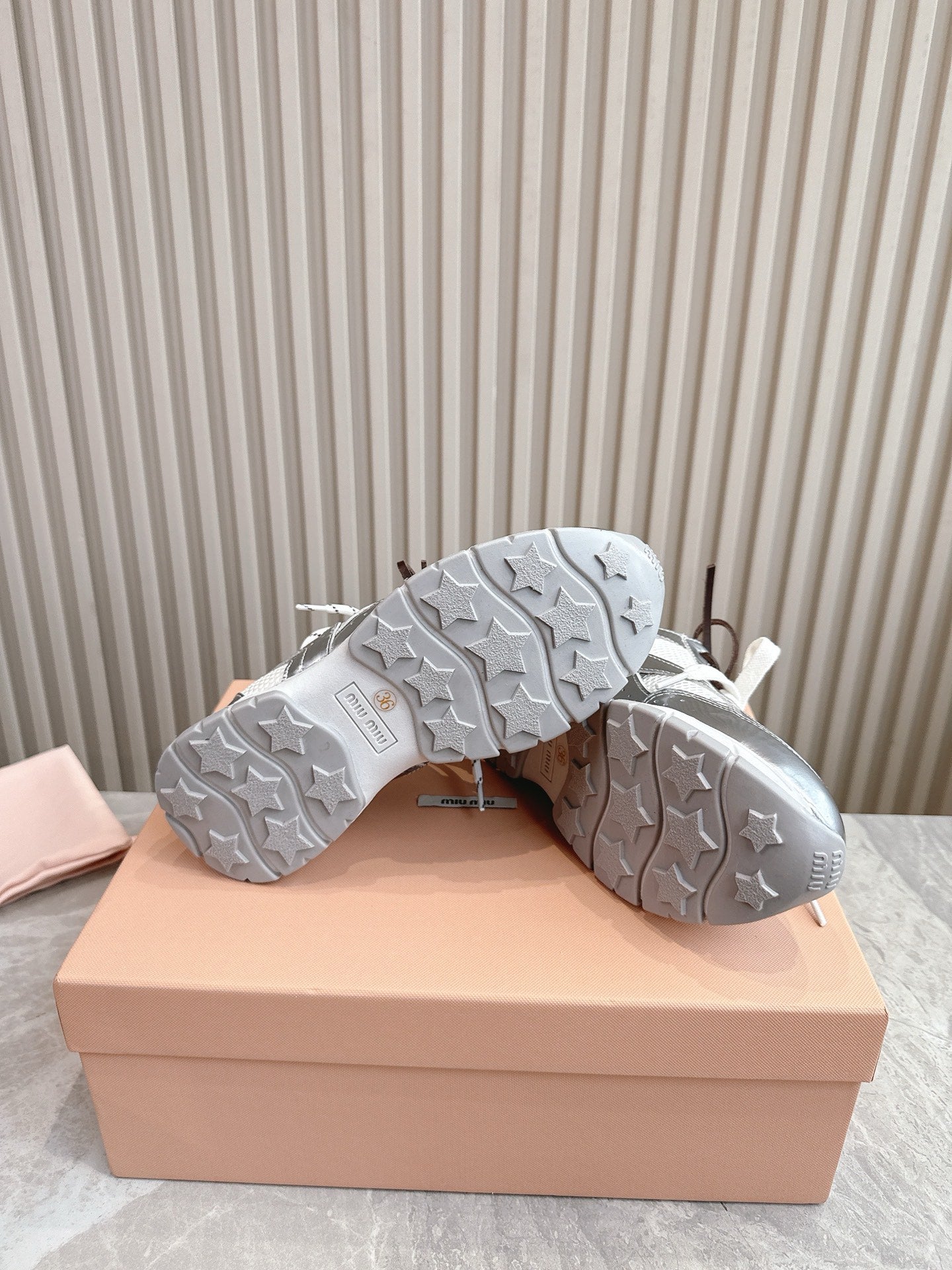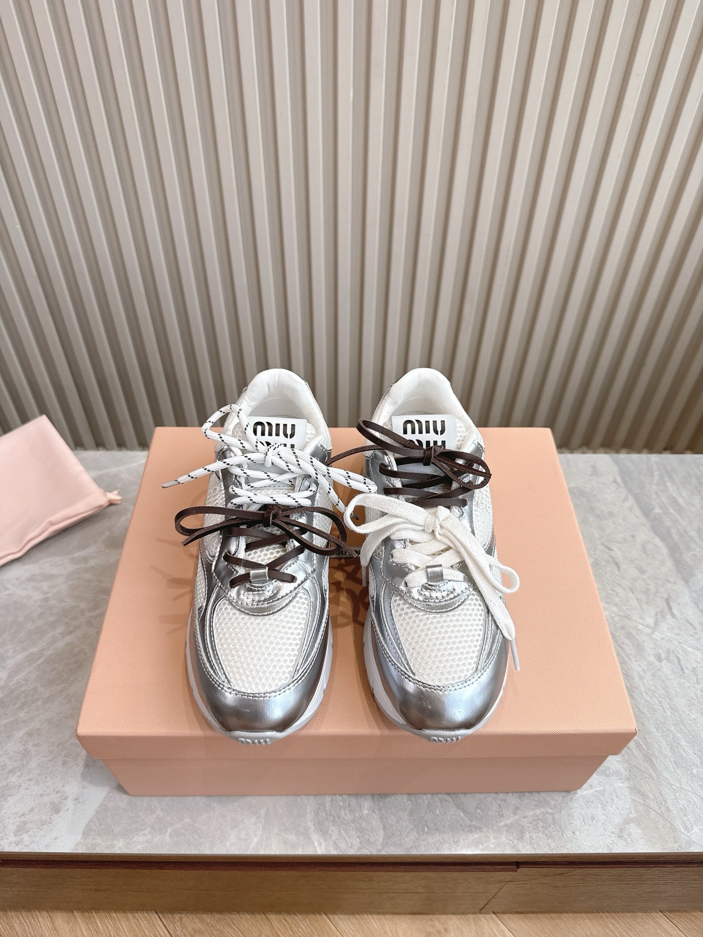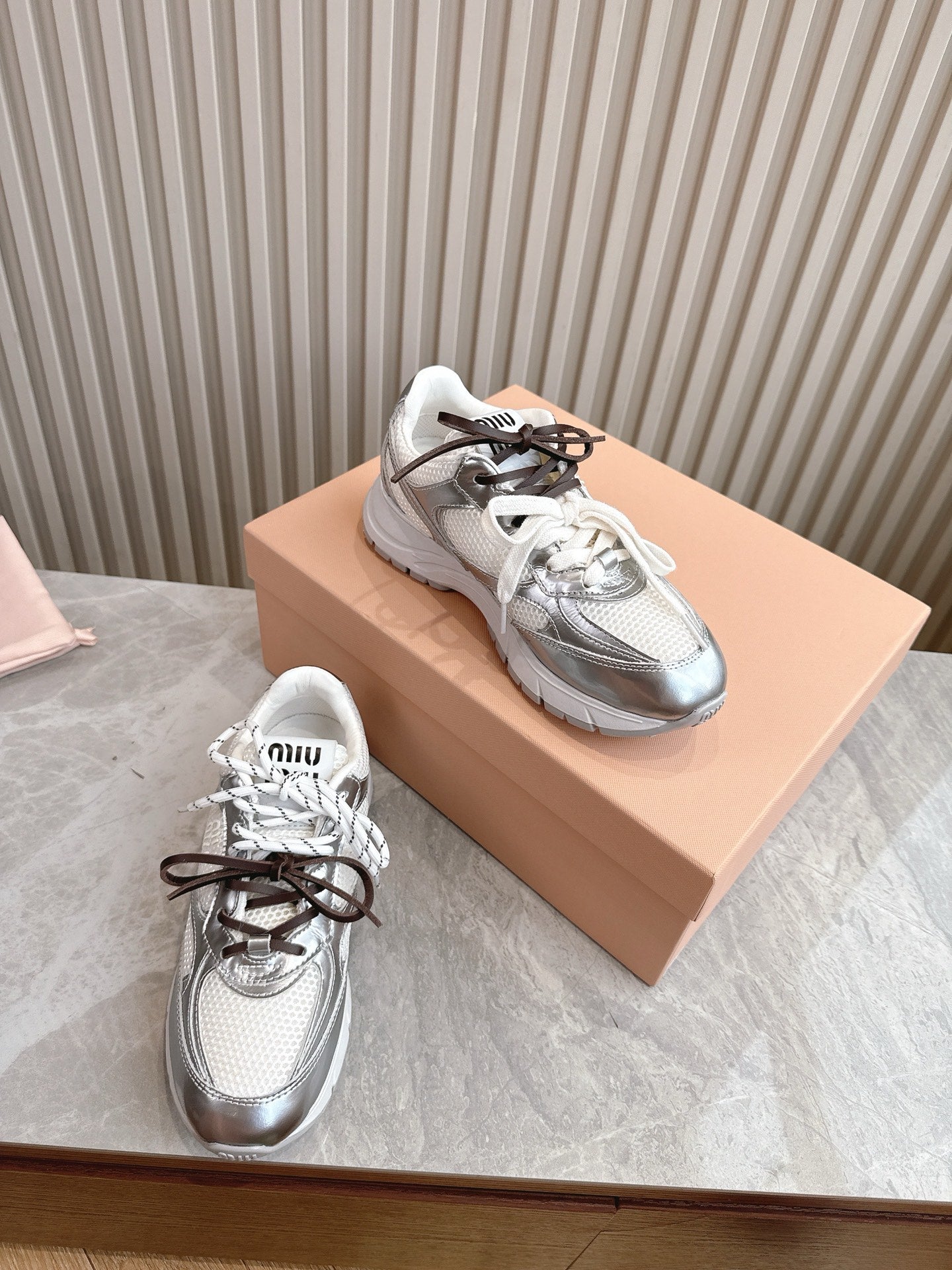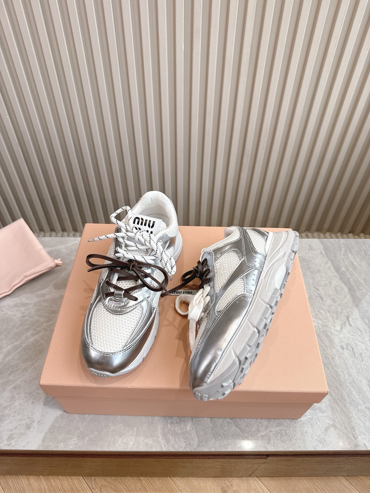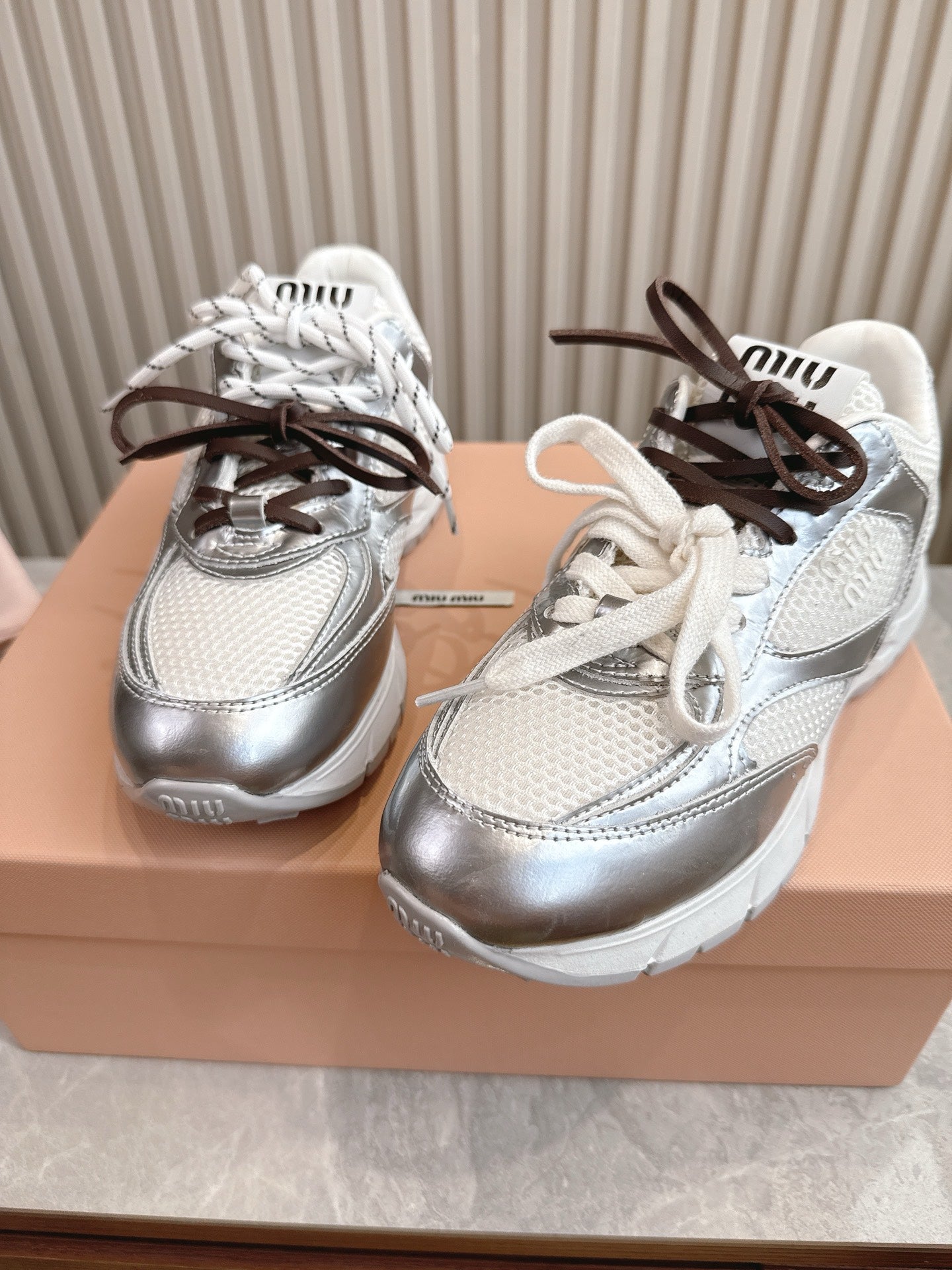 MM SNEAKERS IN WHITE AND SILVER MESH MIX CALFSKIN