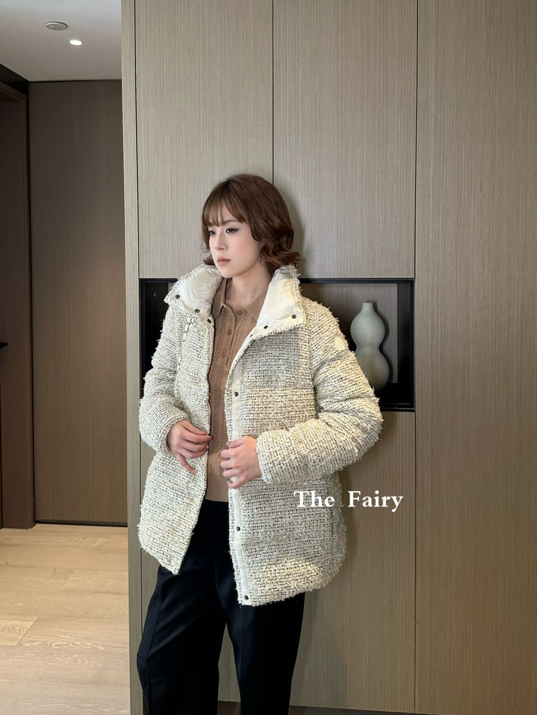 MONCLER 25S COCHELLE TWEED MID-LENGTH DOWN JACKET 202
