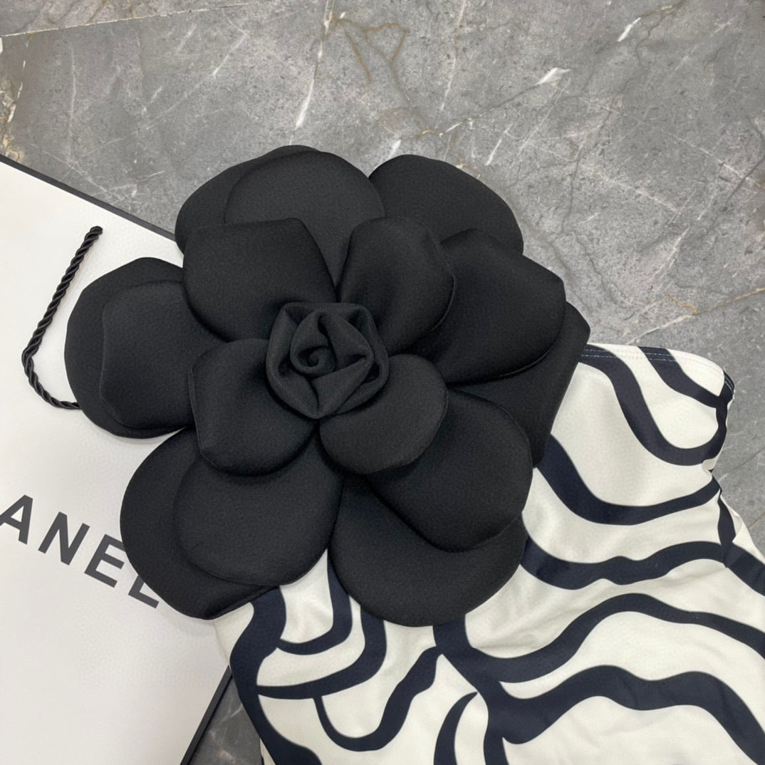 ONE-PIECE SWIMSUIT WITH FLORAL PATTERN IN BLACK AND WHITE 627827