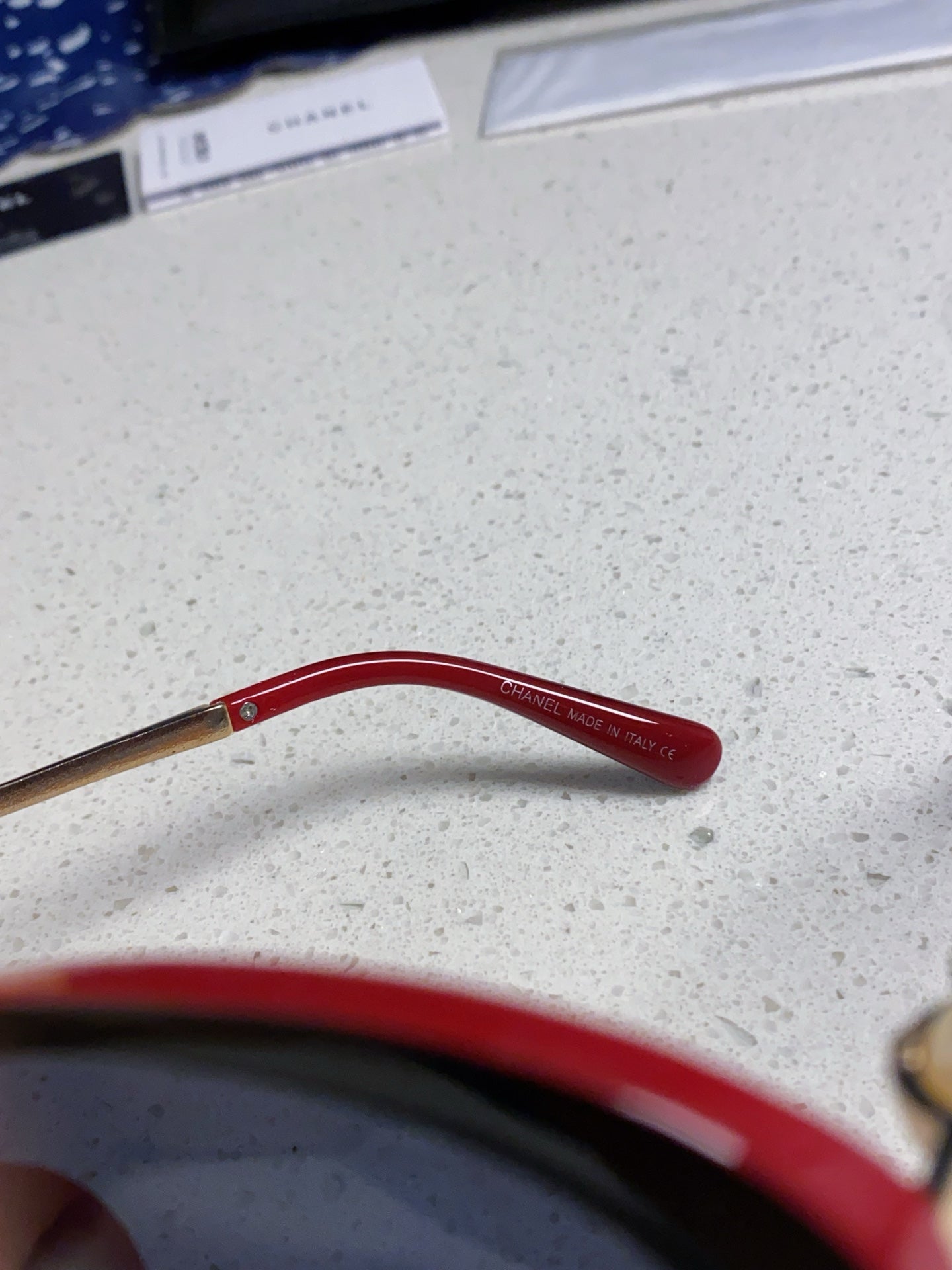 OVAL SUNGLASSES 640344 IN BLACK RED ACETATE METAL FRAME EMBOSSED PEARL