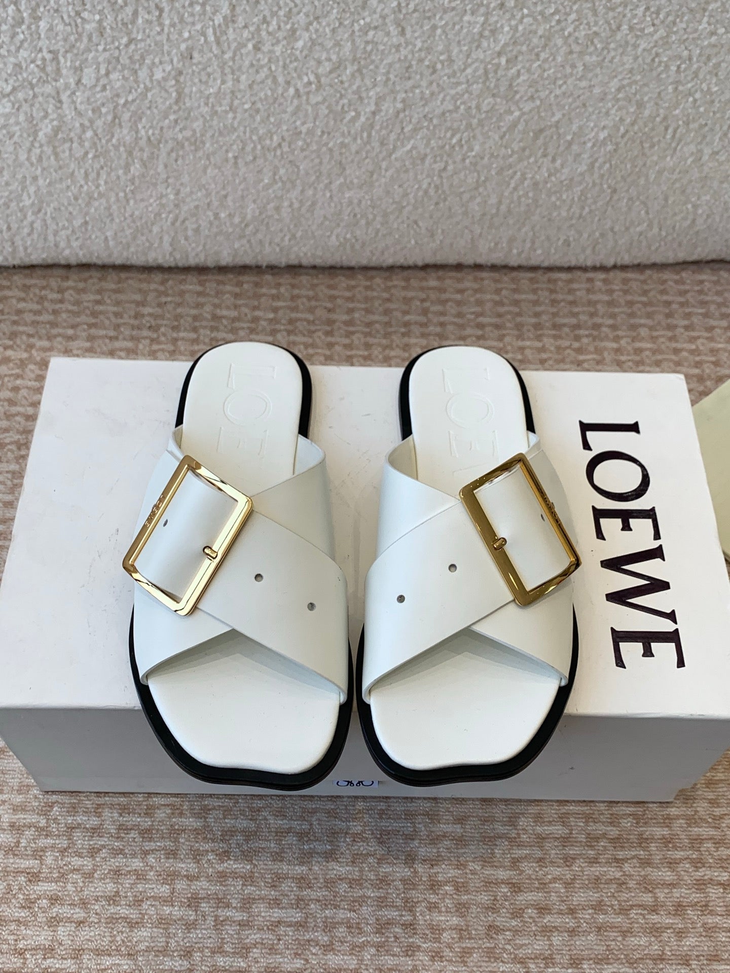 PETAL BELT FLAT SANDAL IN WHITE CALFSKIN