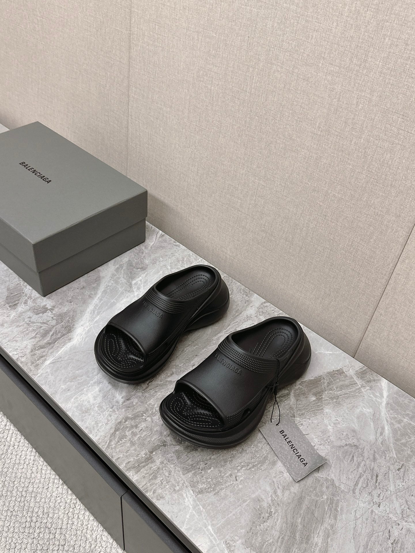 POOL CROCS SLIDE SANDAL IN BLACK RUBBER