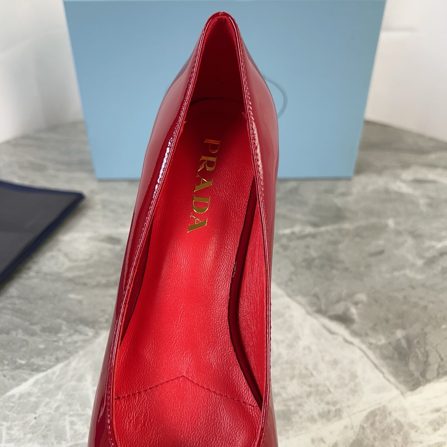 PRADA 25S LOW HEELS SLIP ON BOW 45MM IN DARK WINE RED GLOSSY CALFSKIN
