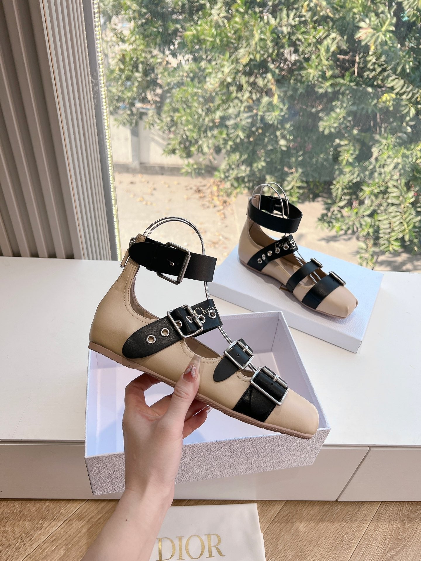 PUNK BALLET FLAT IN BLACK MIX CAMEL BEIGE CALFSKIN