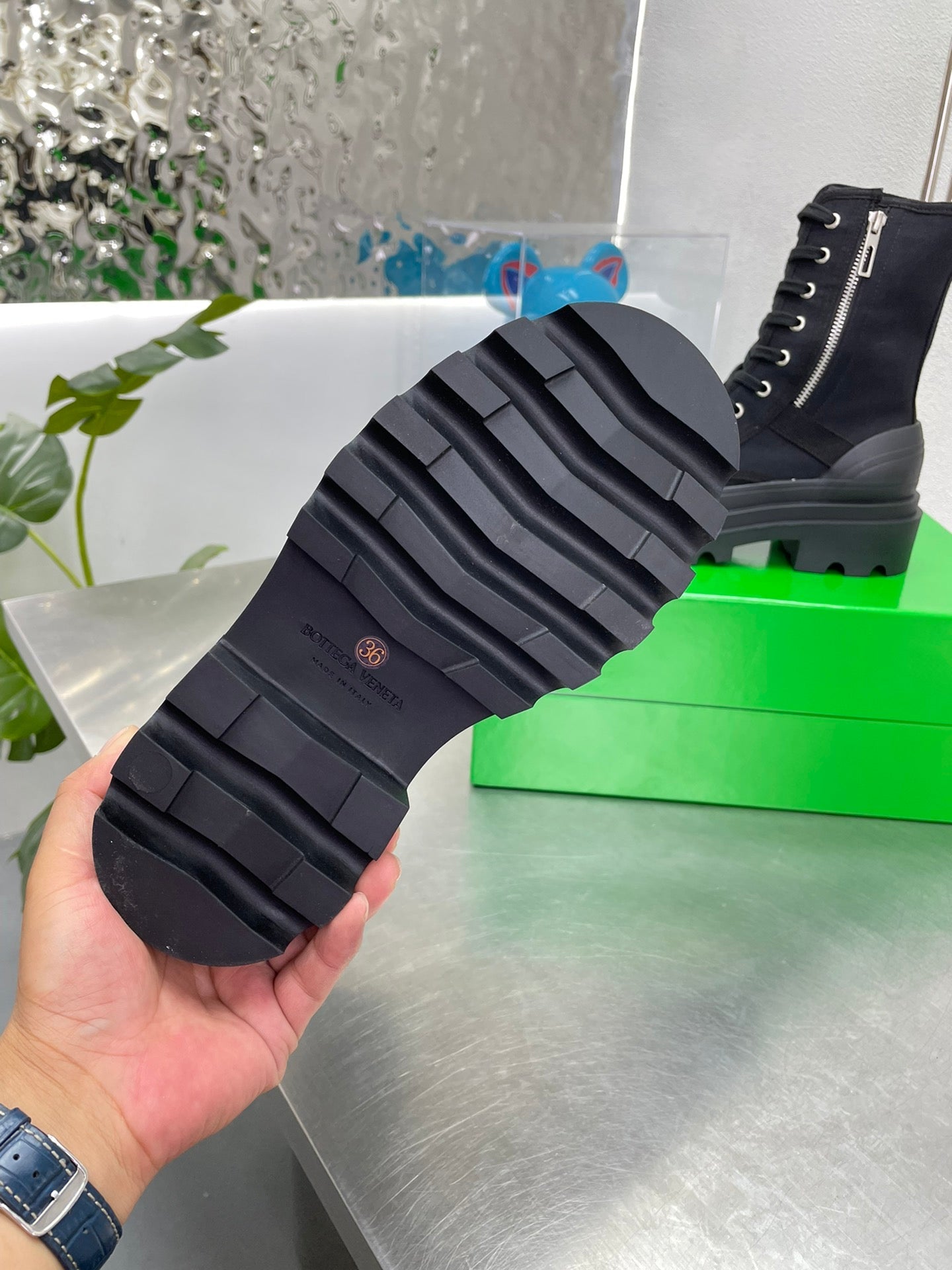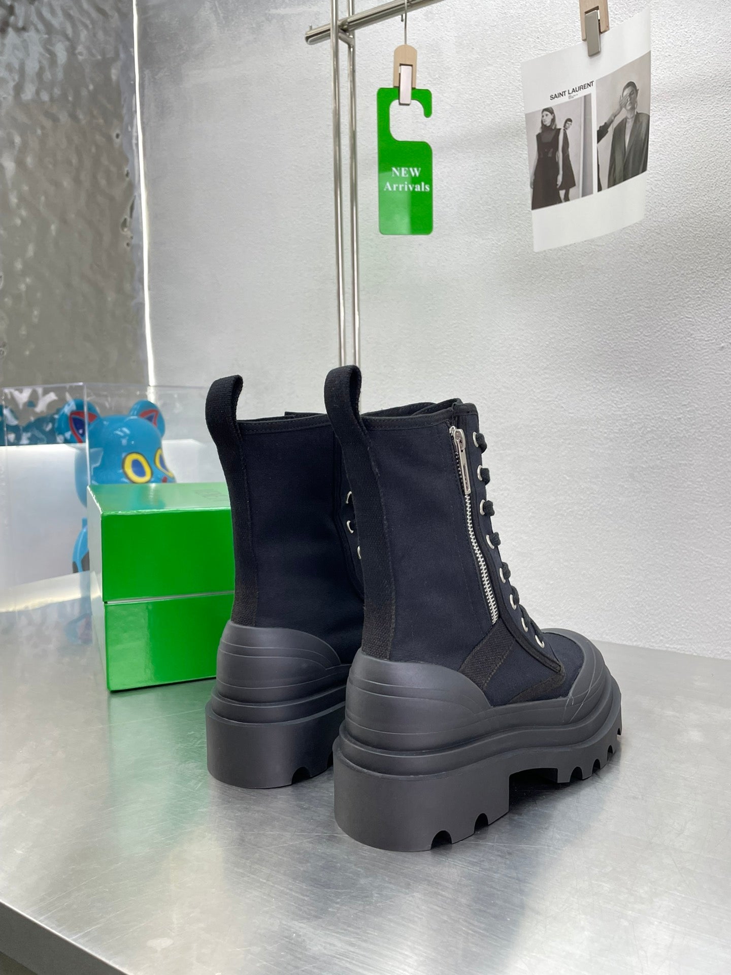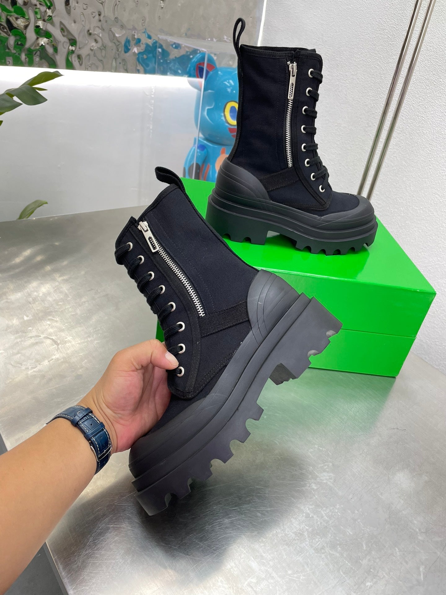 RIBBON BOMBER LACE-UP BOOTS IN BLACK CANVAS