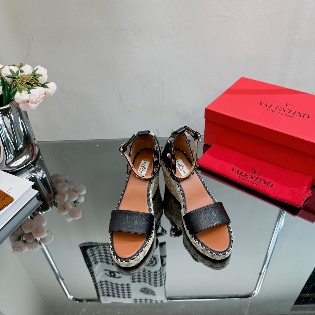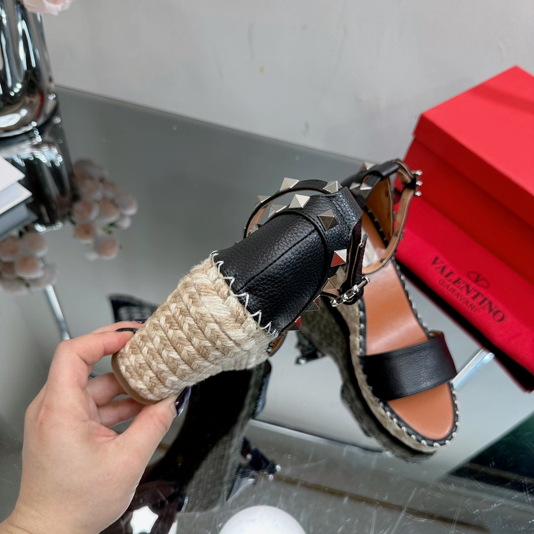 ROCKSTUD WEDGE 85 MM IN BLACK CALFSKIN
