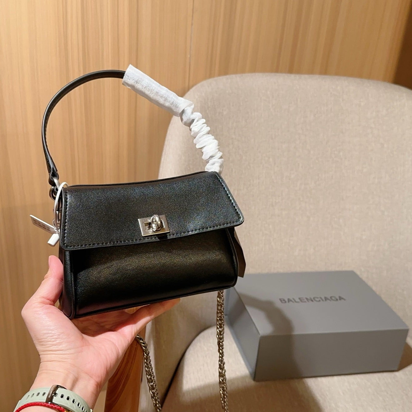 RODEO NANO BAG WITH CHAIN 17 IN BLACK SMOOTH CALFSKIN SILVER HARDWARE
