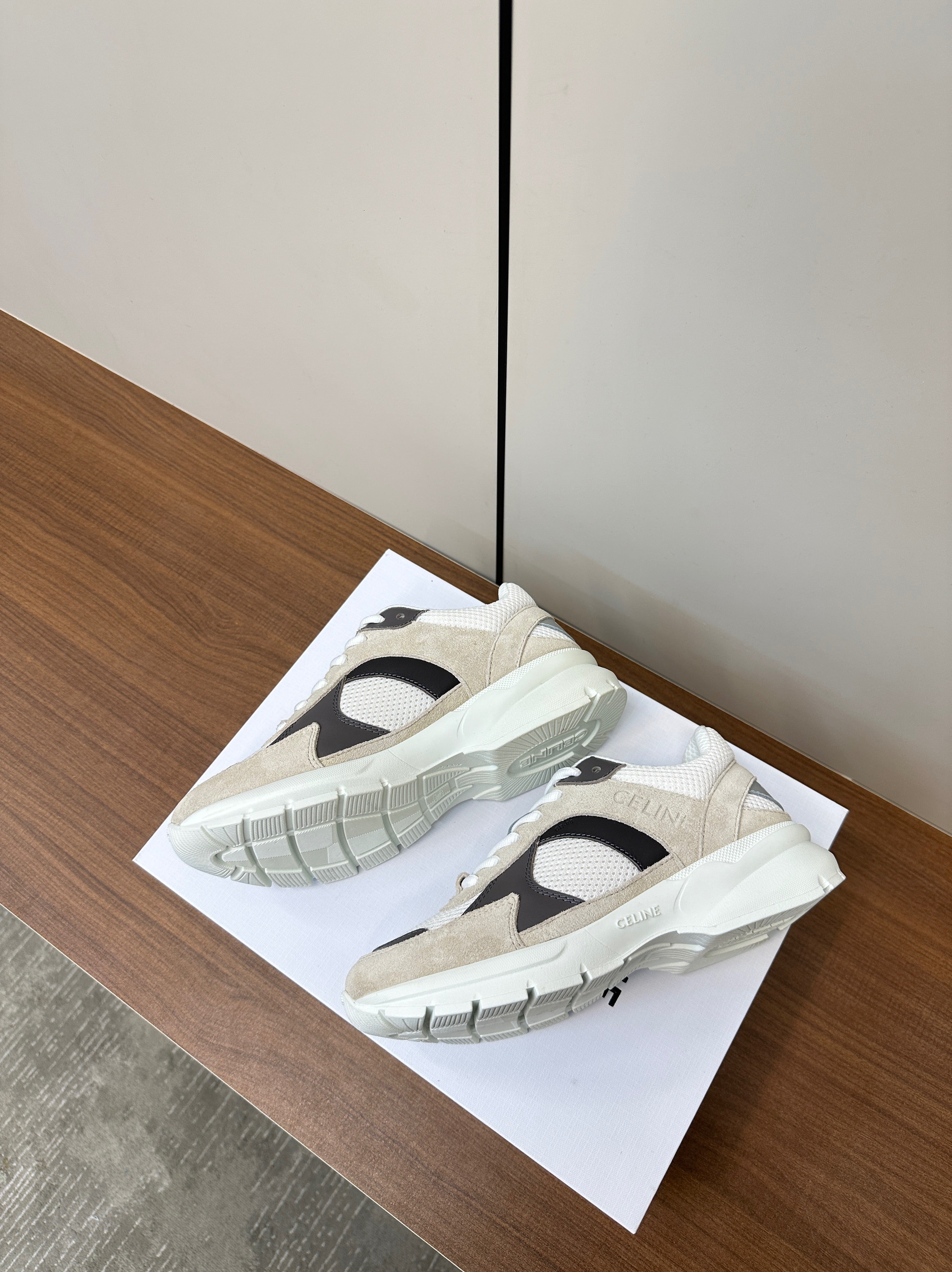 RUNNER CR-03 LOW LACE-UP PALE GRAY SUEDE AND BLACK CALFSKIN