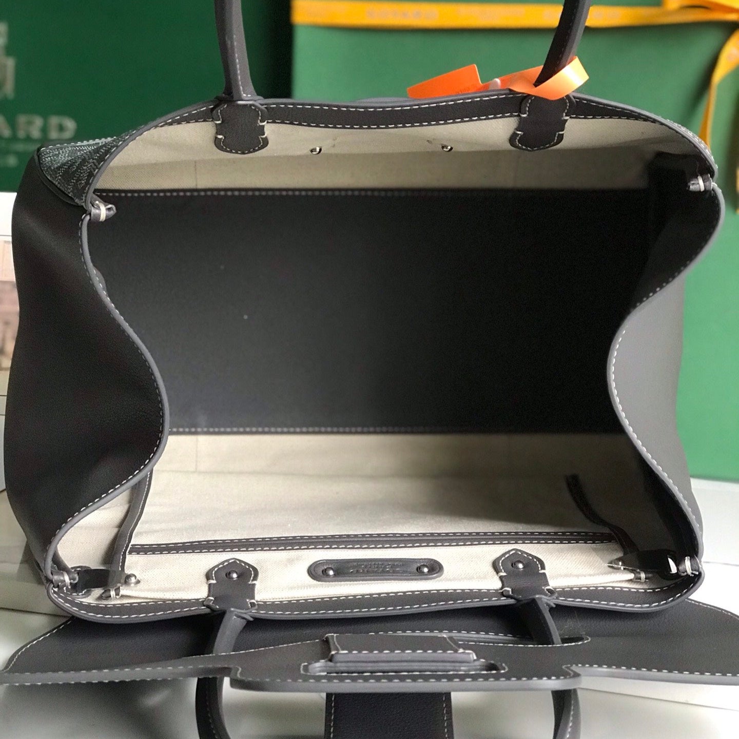 SAIGON SOUPLE BAG 34 IN GREY GOYARDINE CANVAS AND CALFSKIN