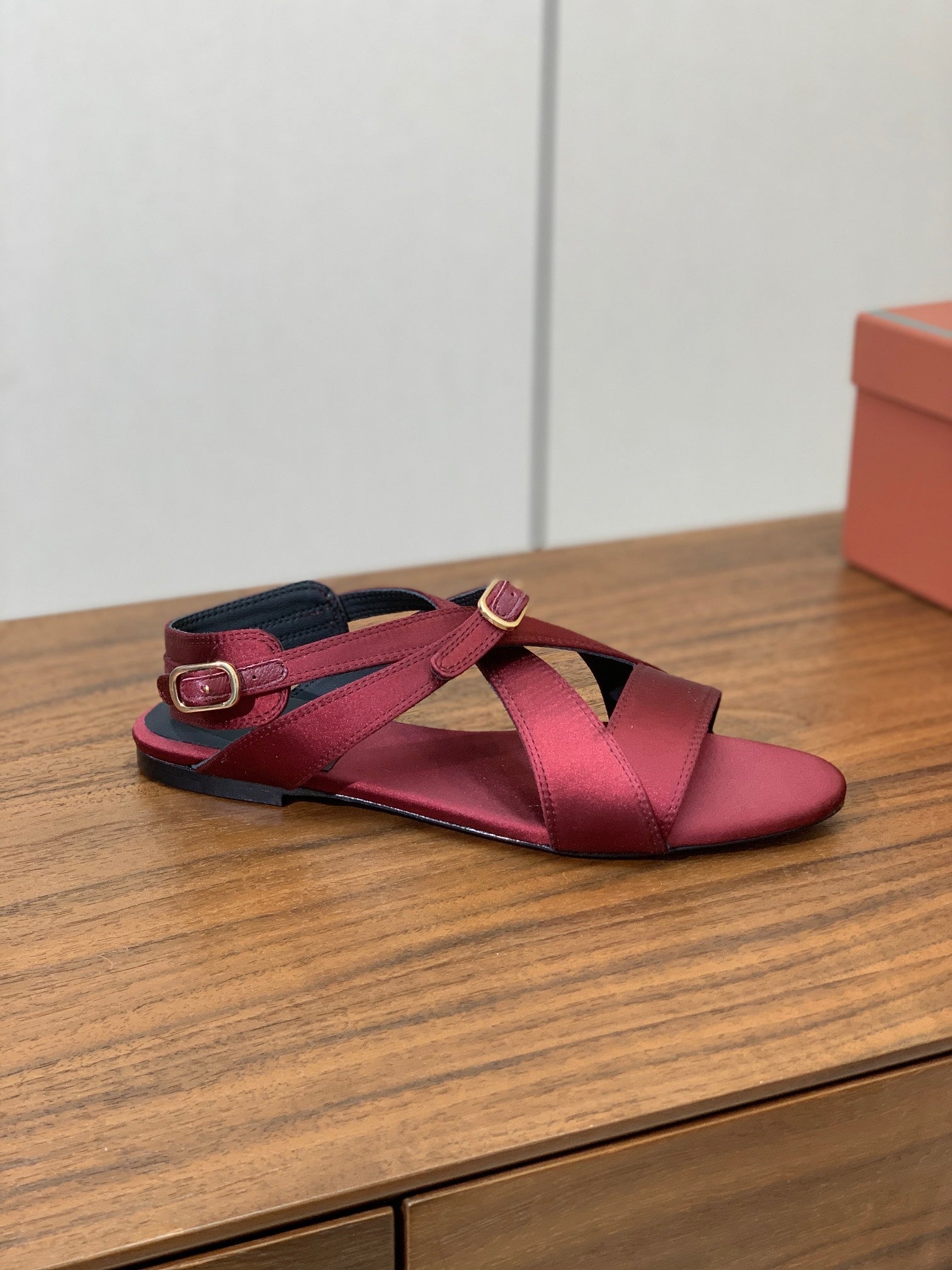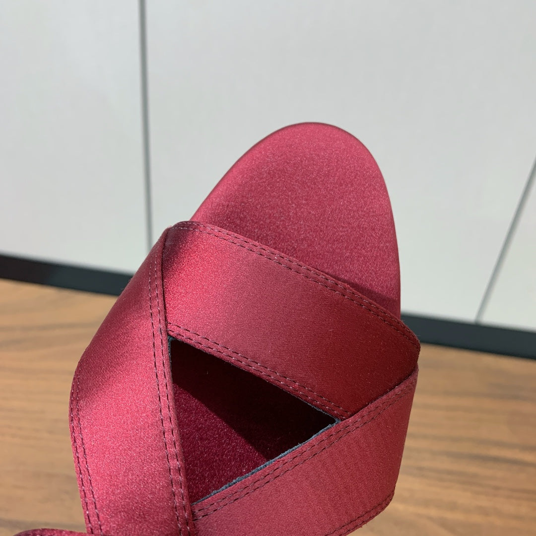 SANDALS IN RUBY RED SATIN