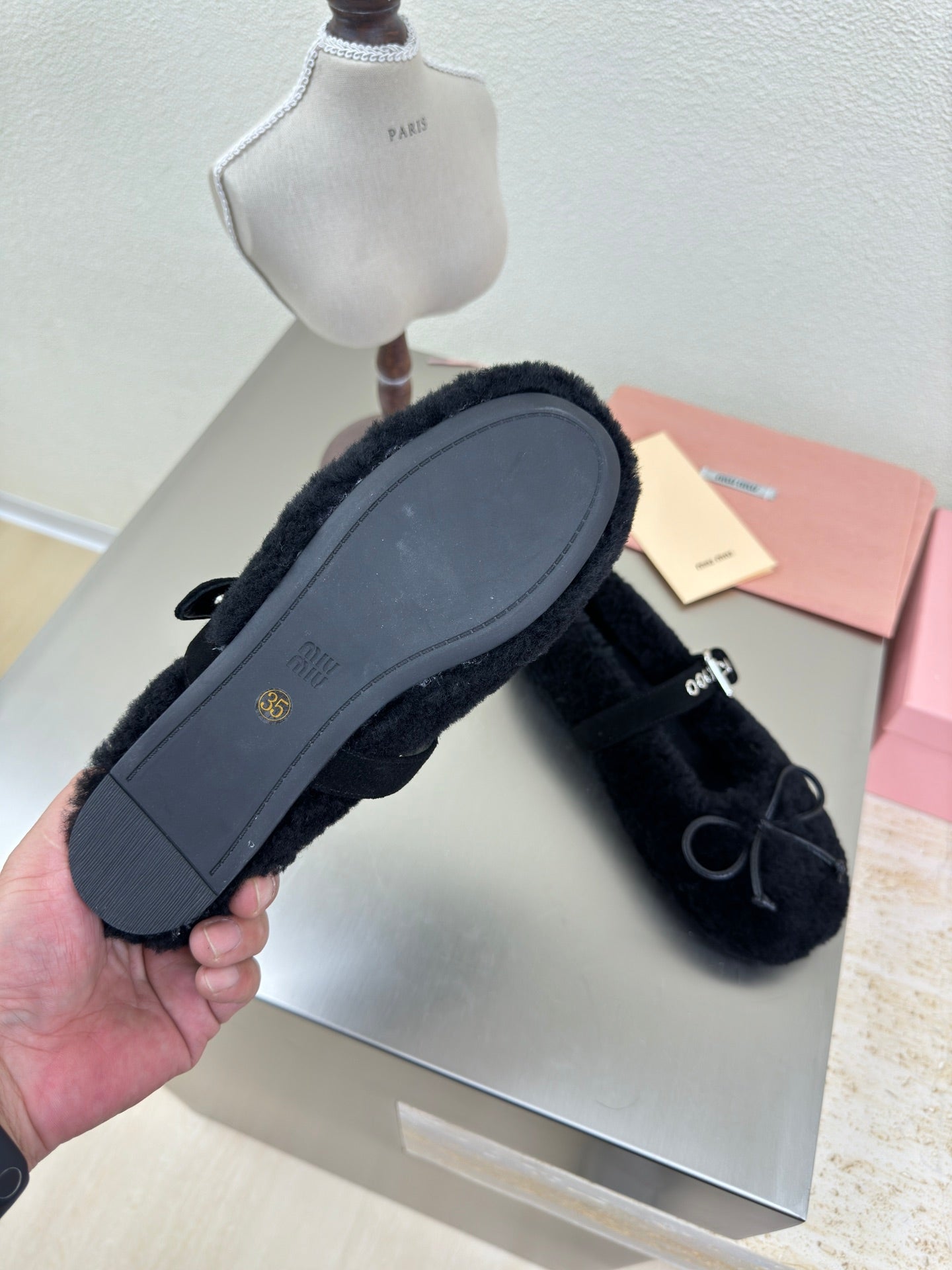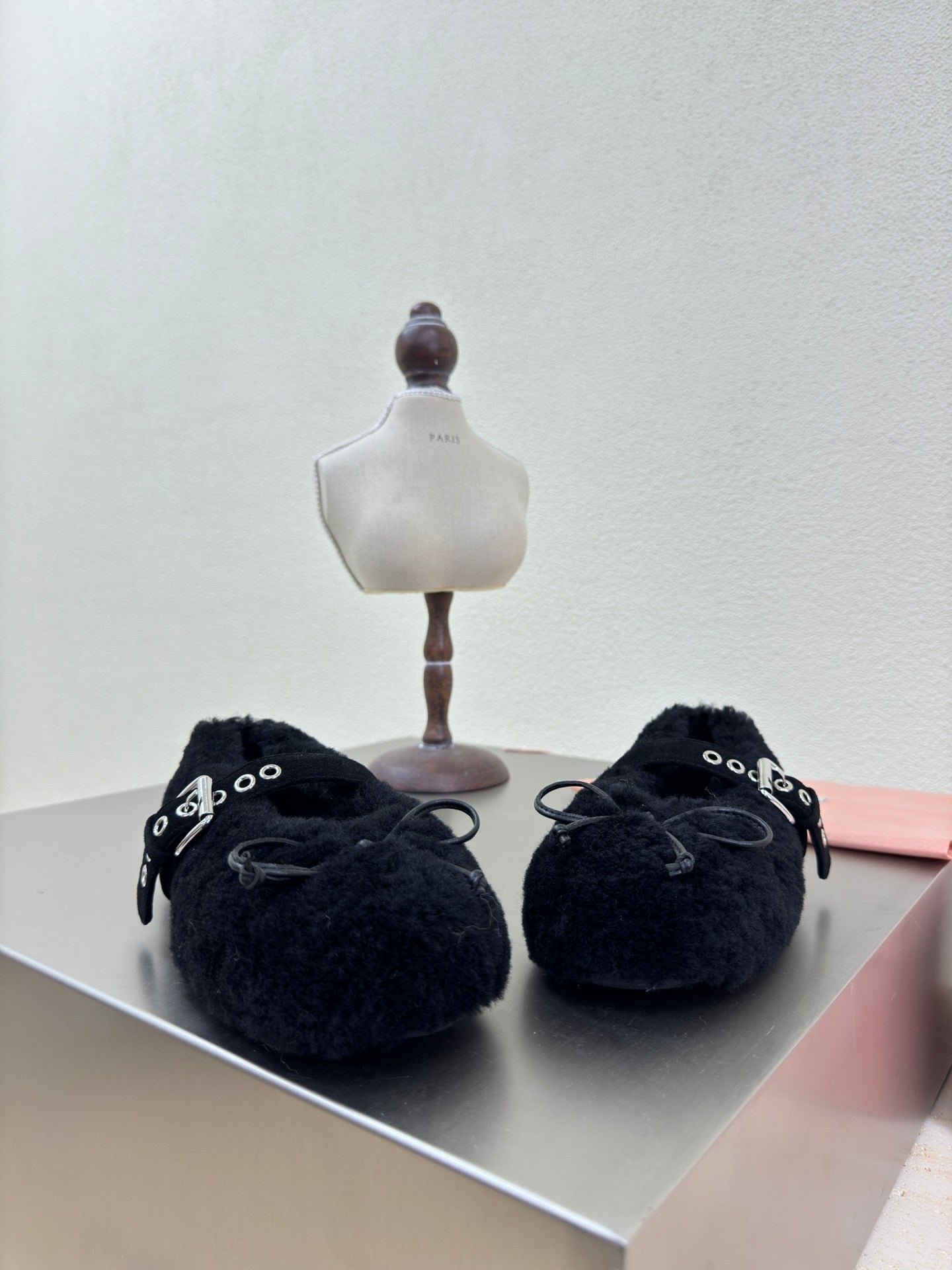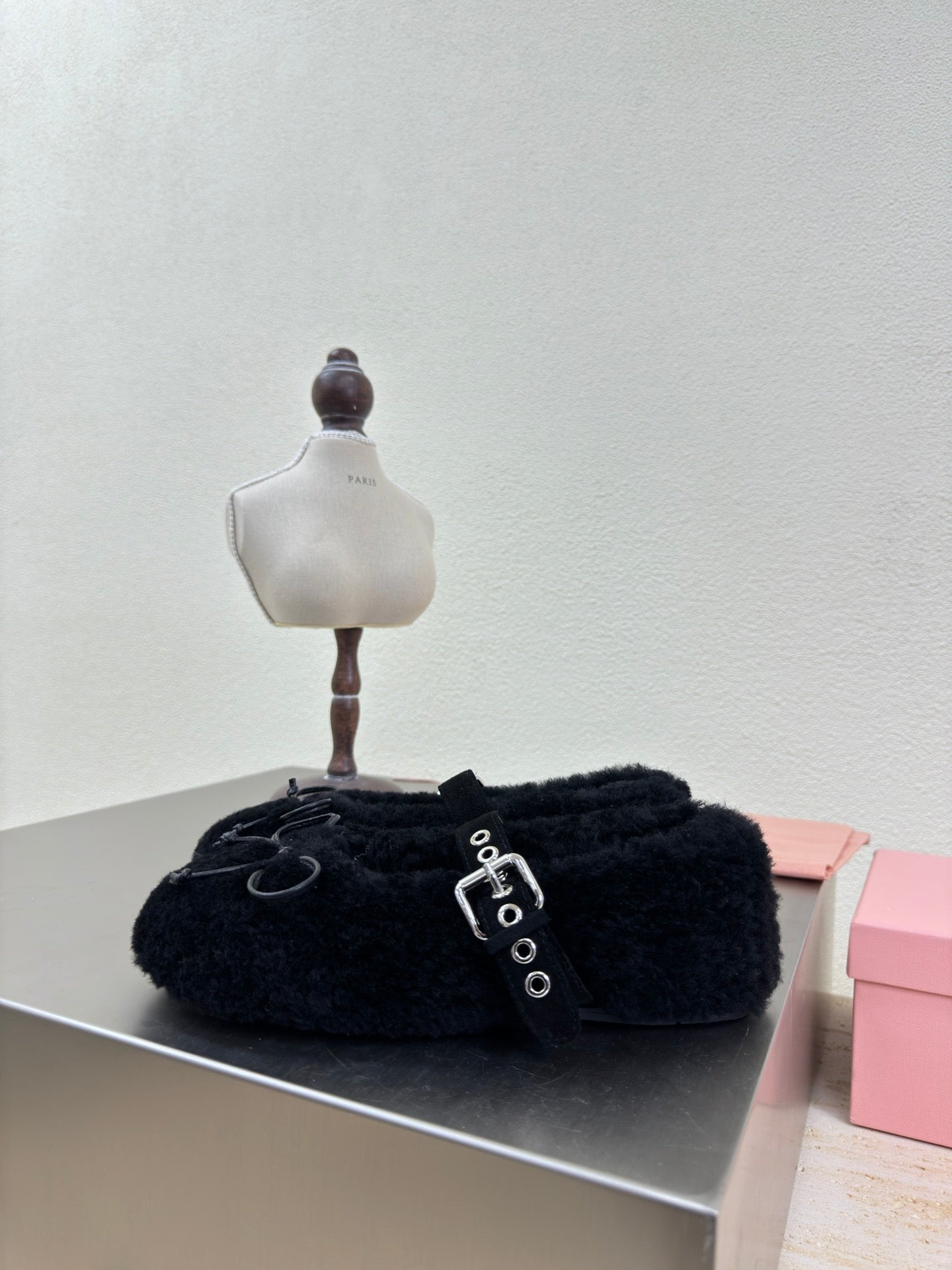 SHEARLING BALLET FLAT BLACK WITH SUEDE STRAP