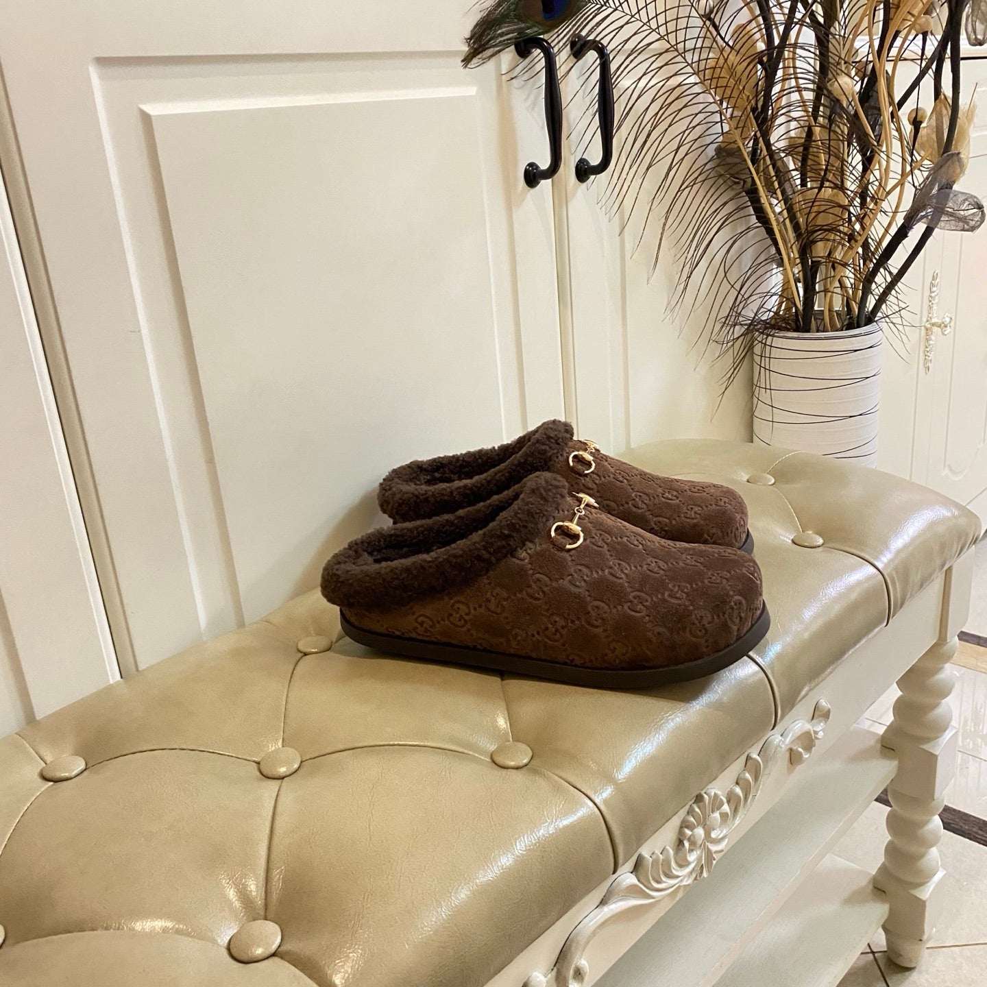 SHEARLING MULE IN DARK BROWN MONOGRAM SUEDE