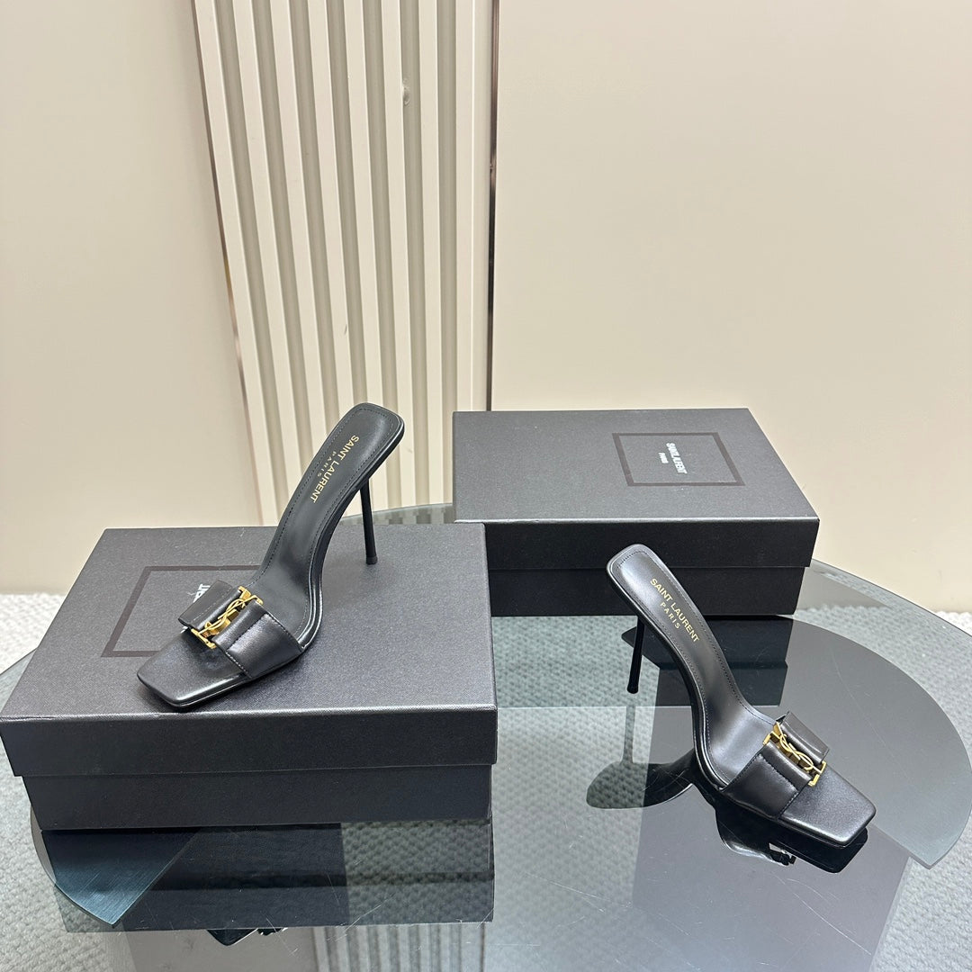 SL BABYLONE SLIDE PUMPS 115 BLACK CALFSKIN