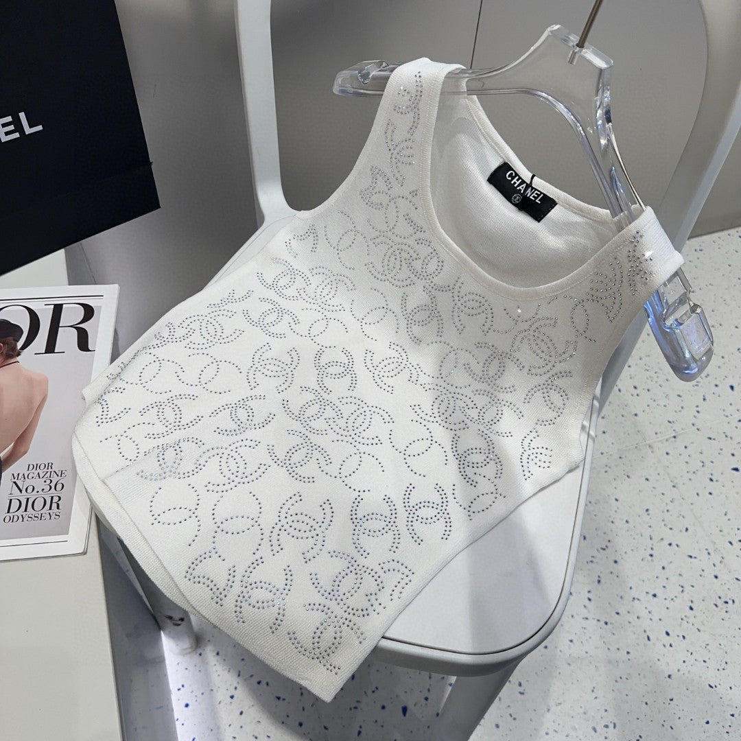 SLEEVELESS TOP 643224 IN WHITE COTTON EMBOSSED LOGO