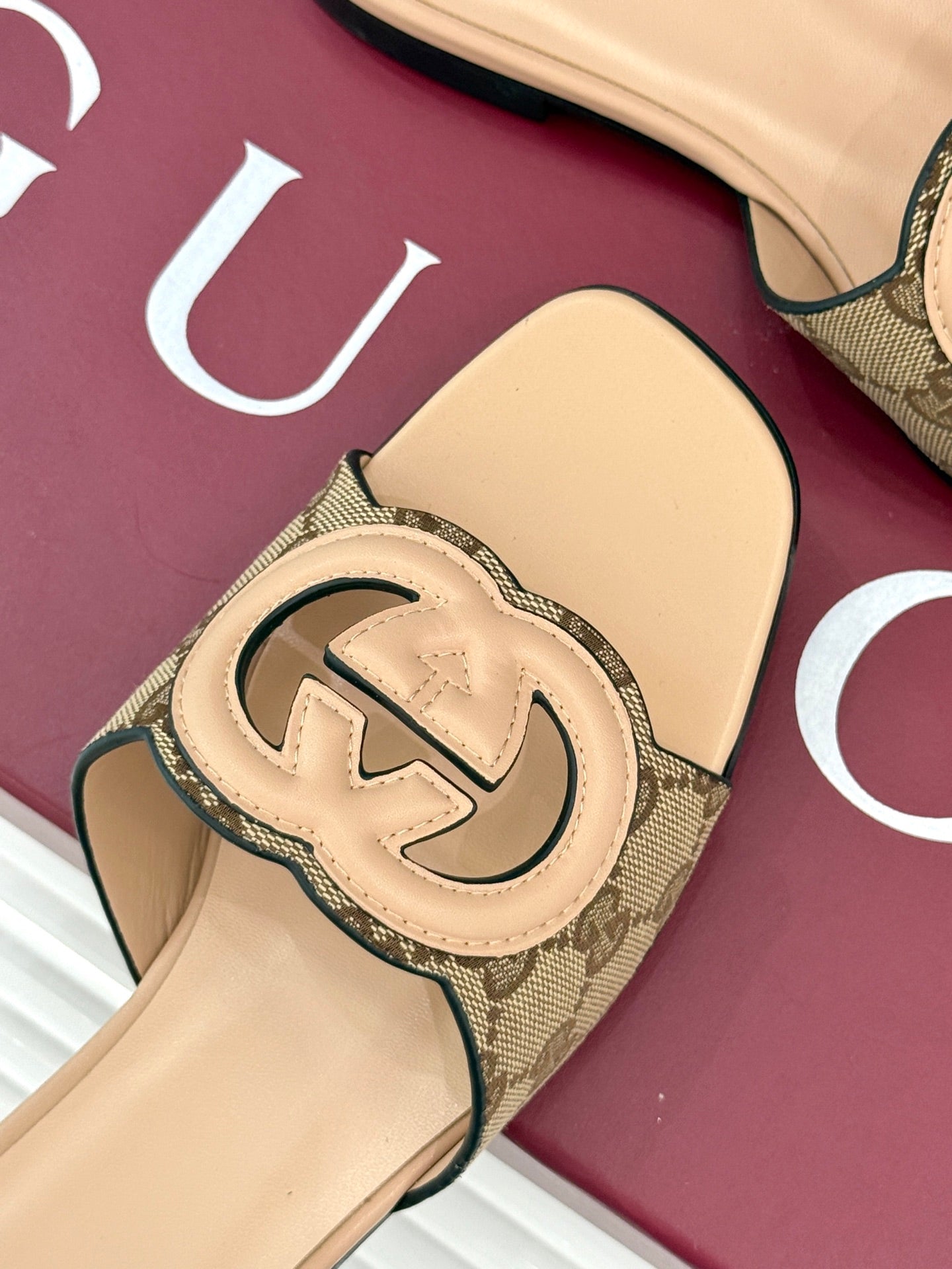 SLIDE SANDALS IN BEIGE CALFSKIN