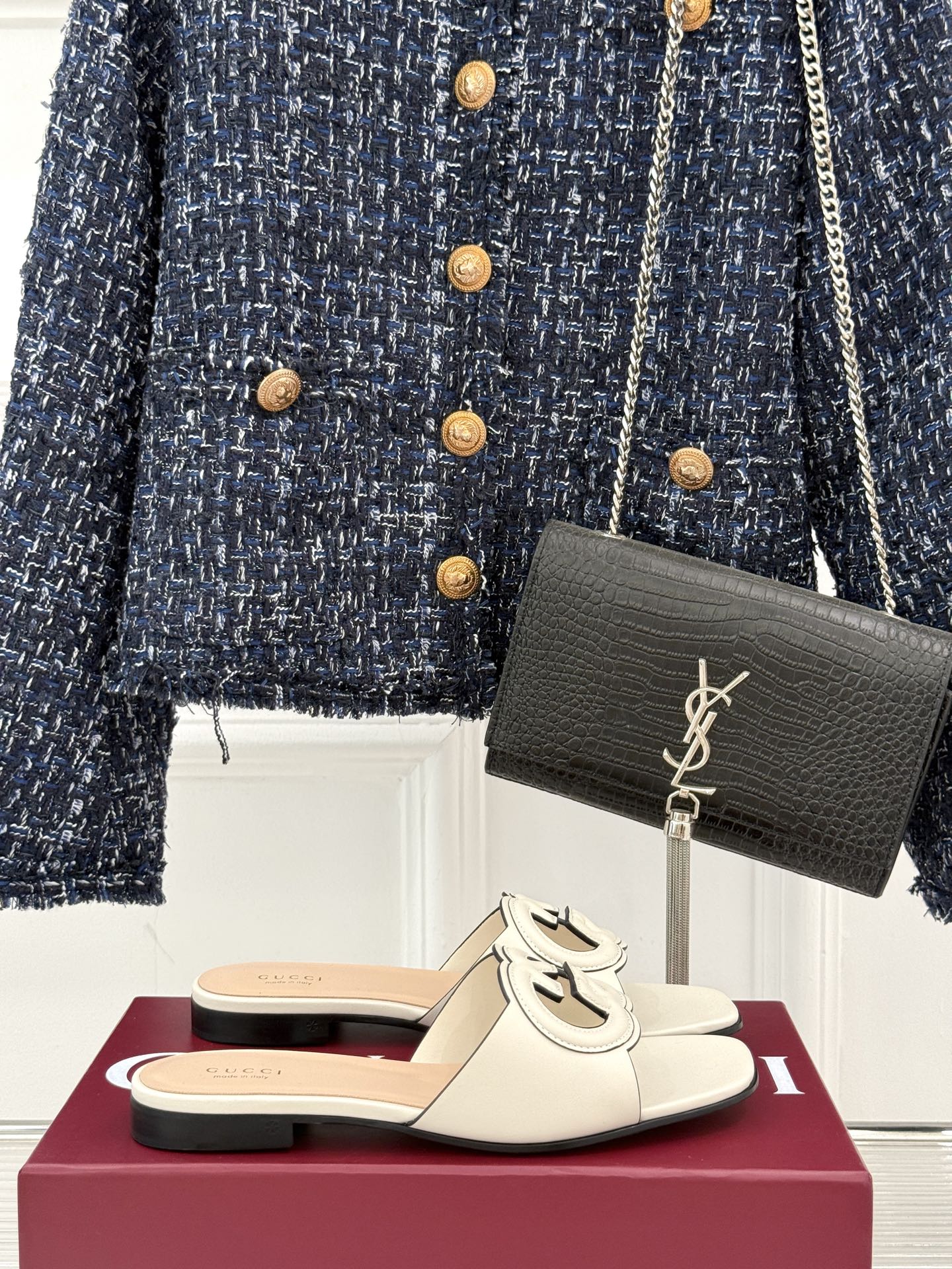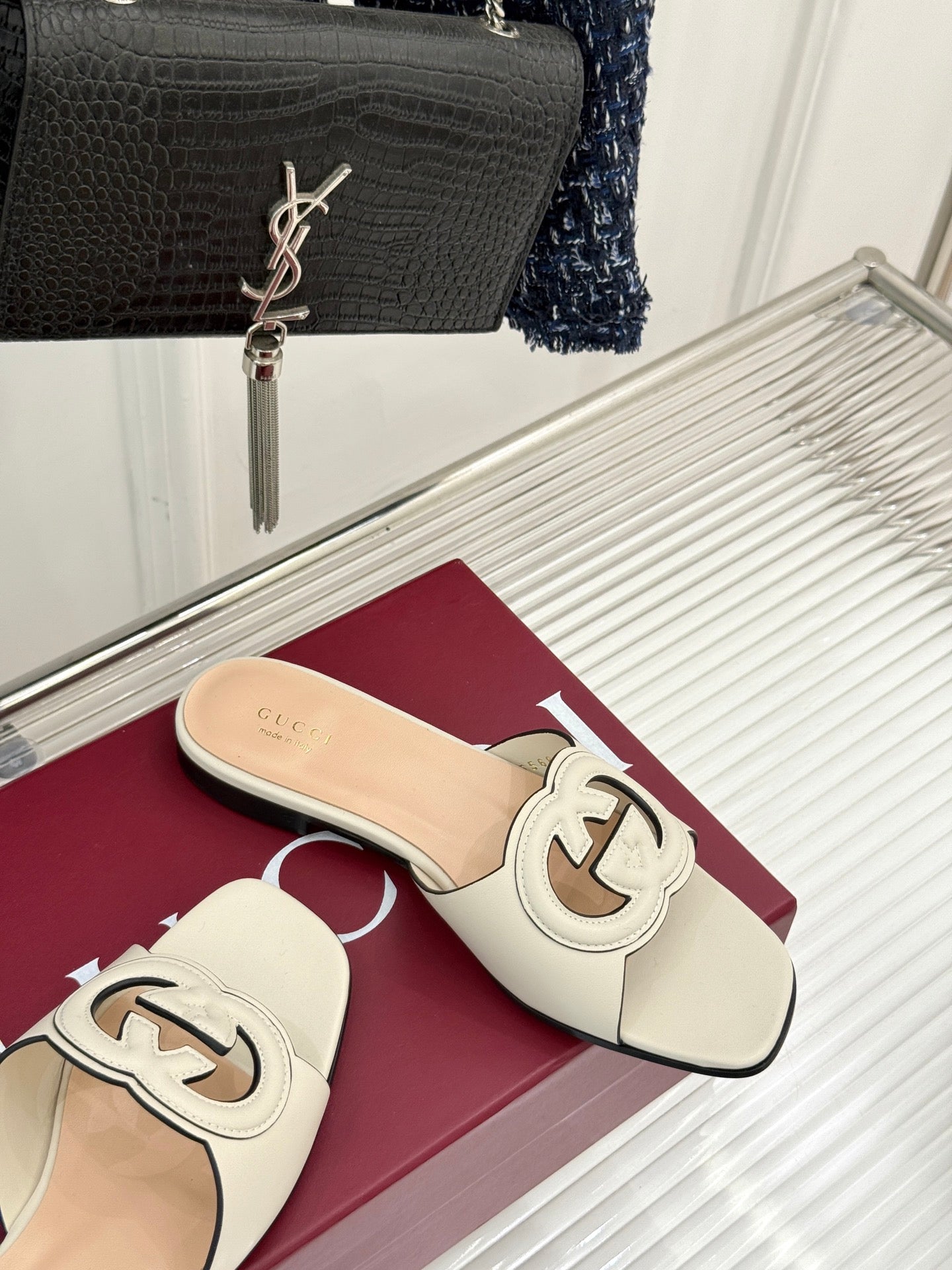 SLIDE SANDALS IN CREAM WHITE CALFSKIN