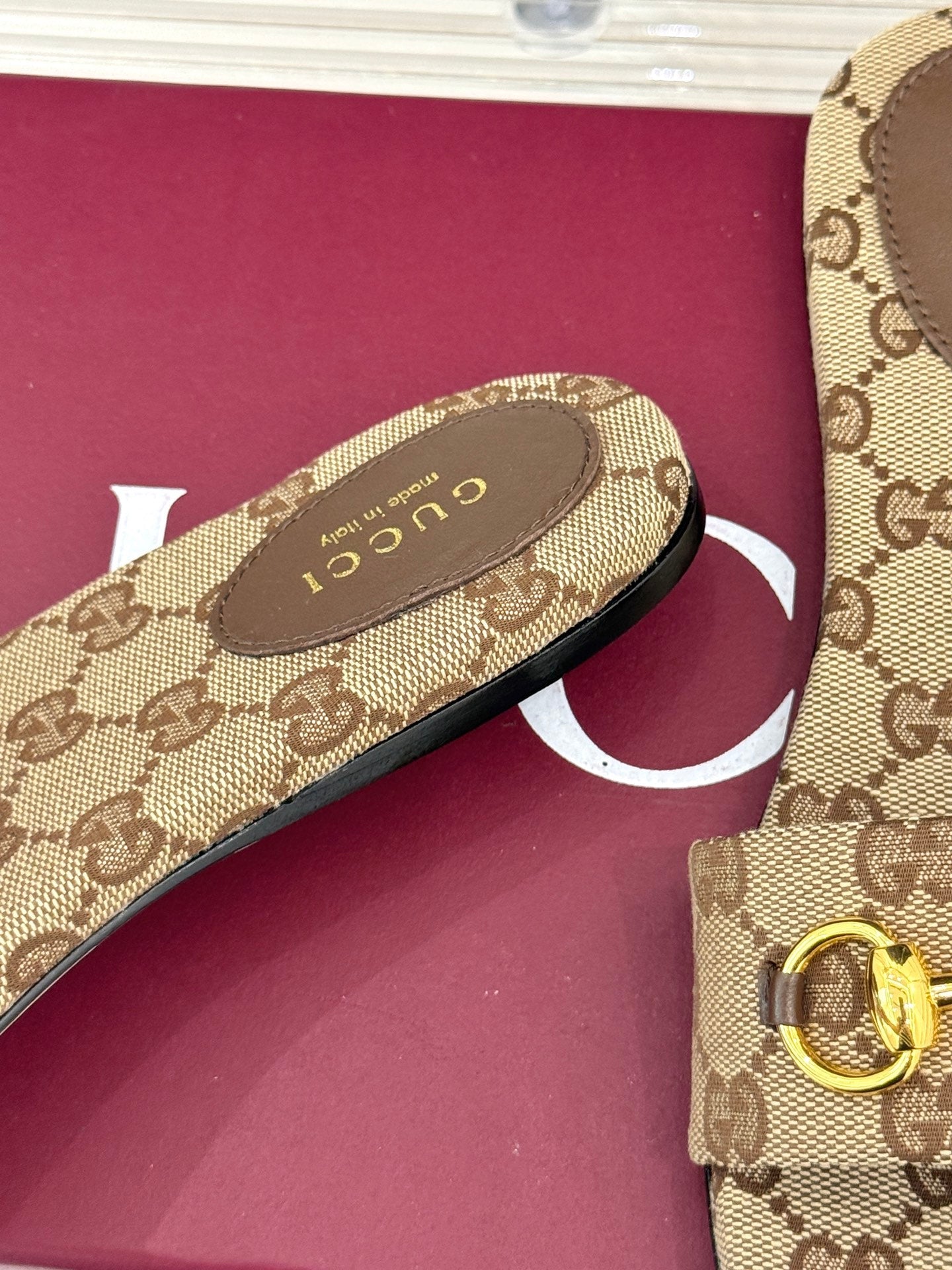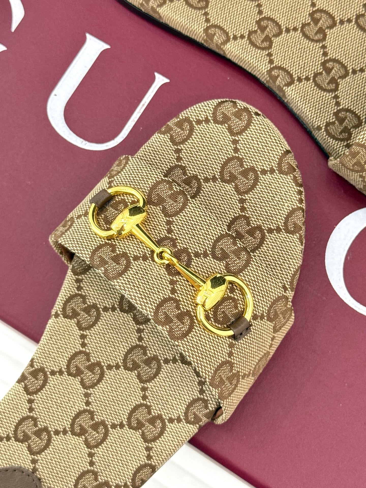 SLIDE SANDALS IN DARK BEIGE FABRIC EMBOSSED LOGO