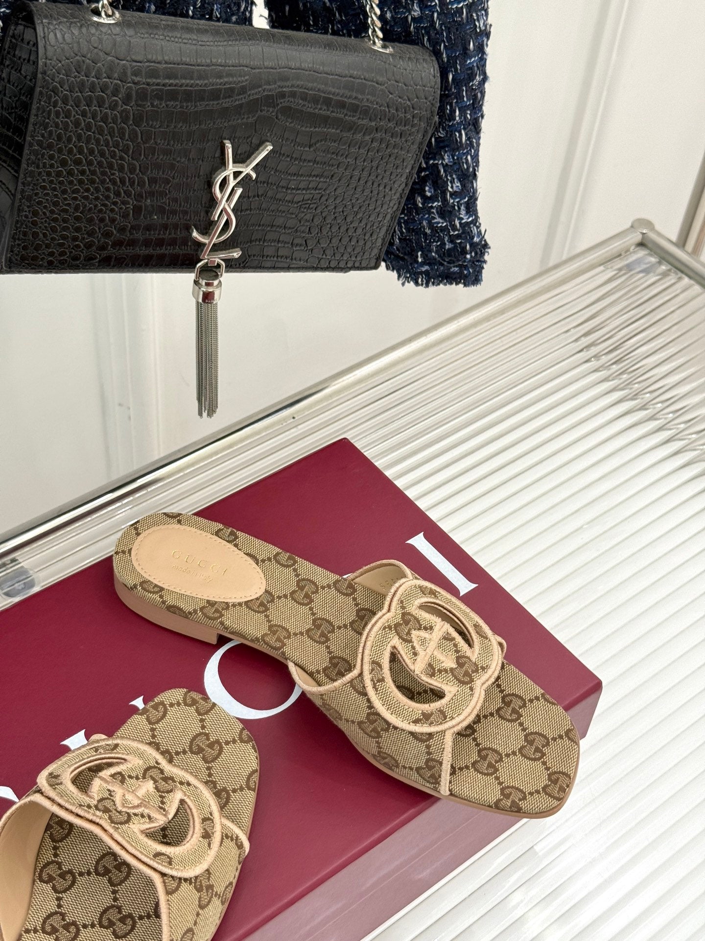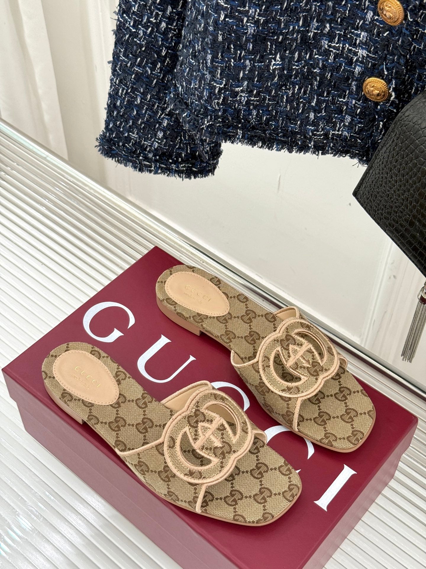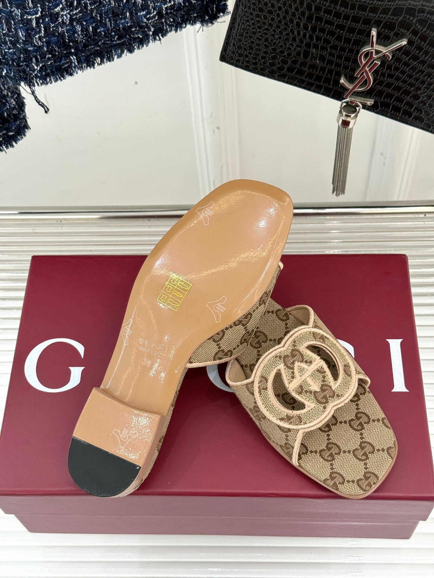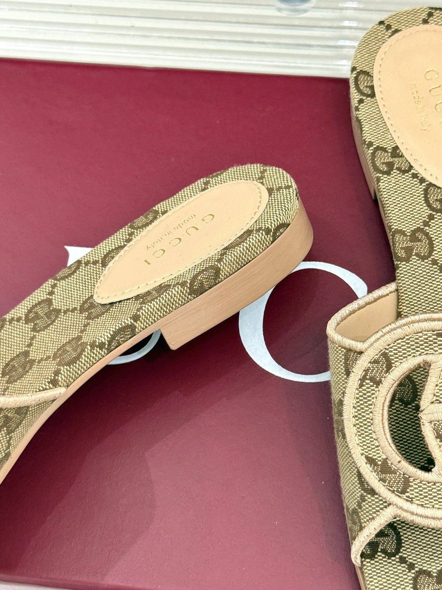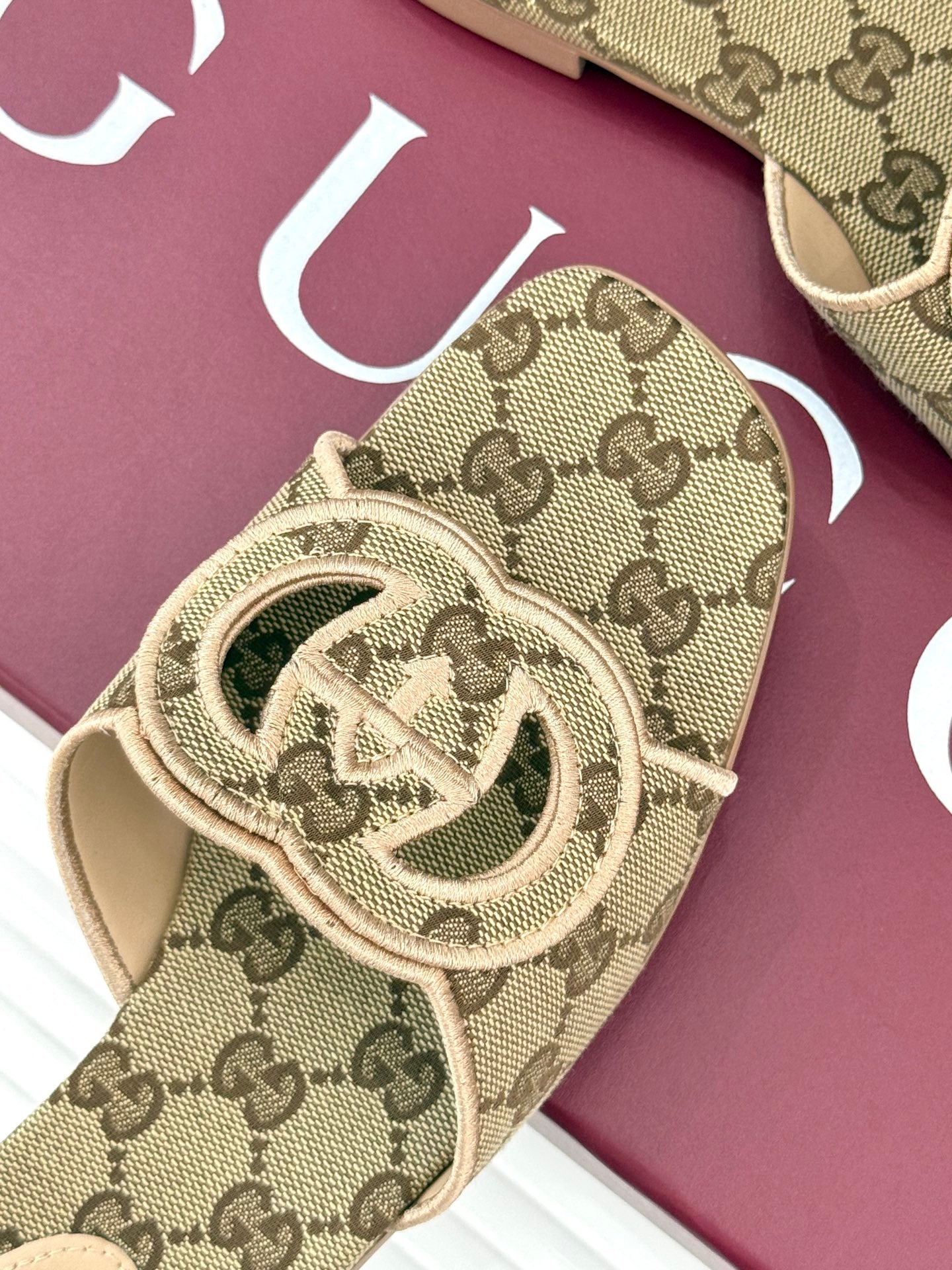 SLIDE SANDALS IN DARK BEIGE FABRIC EMBOSSED LOGO STYLE 3