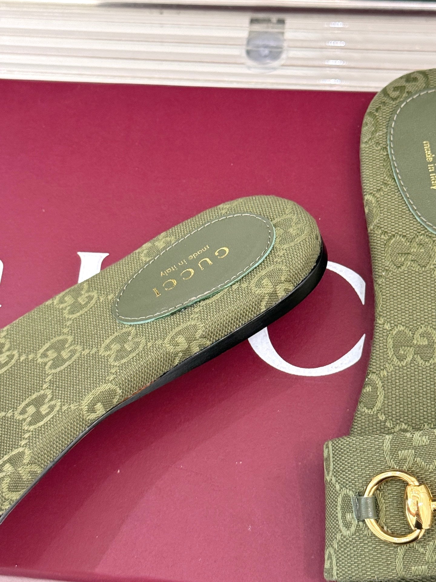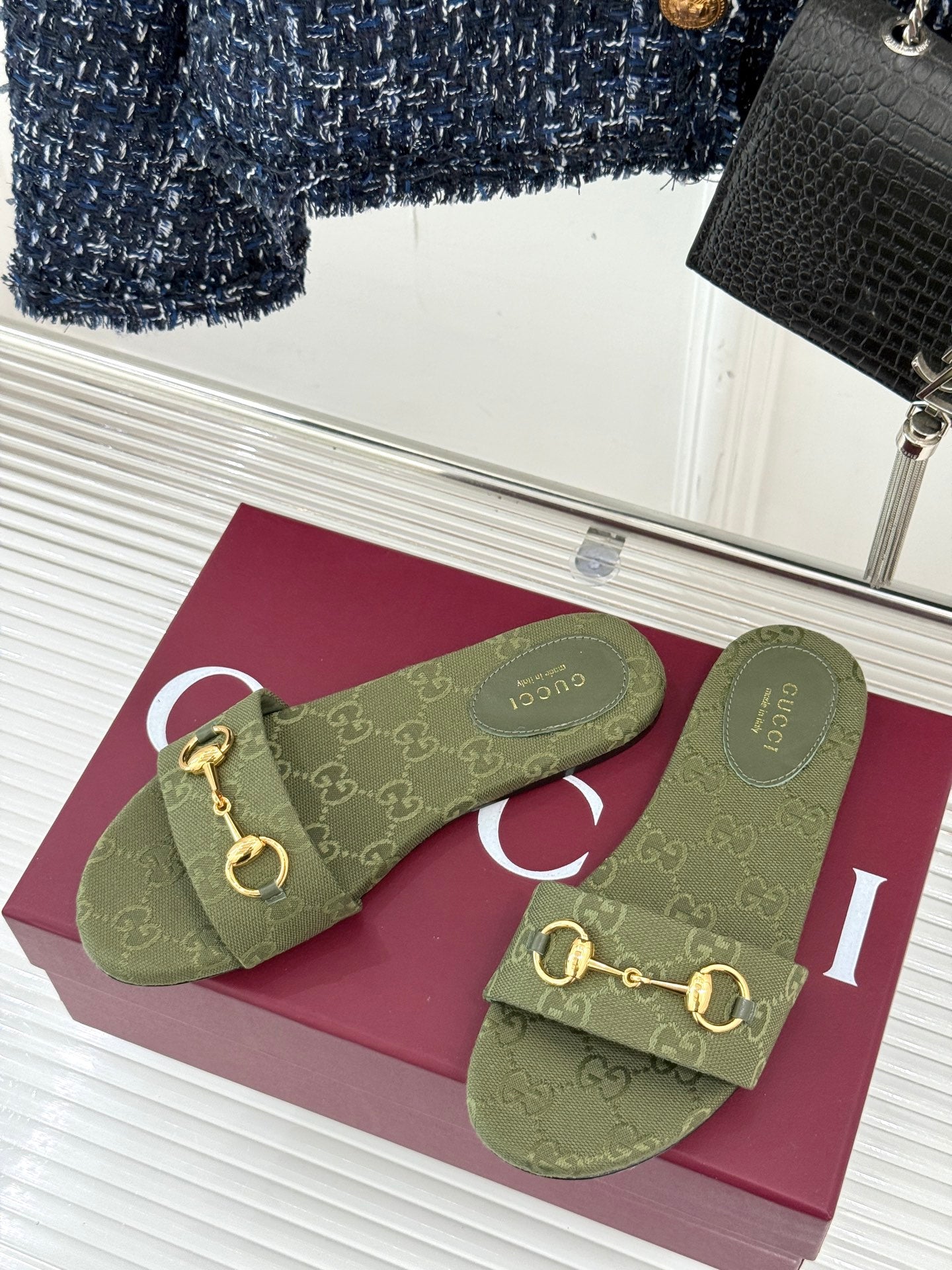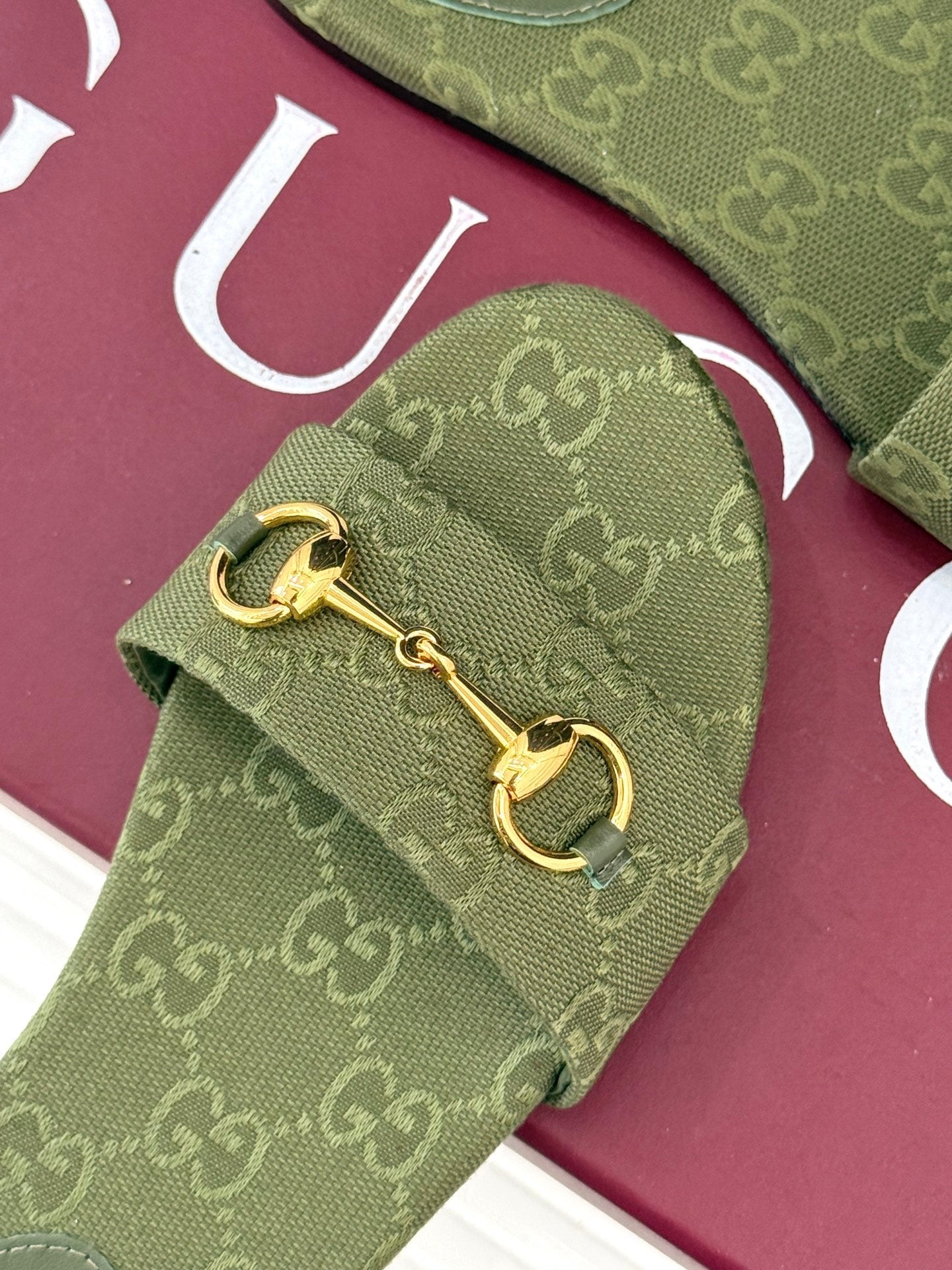 SLIDE SANDALS IN MOSS GREEN FABRIC EMBOSSED LOGO