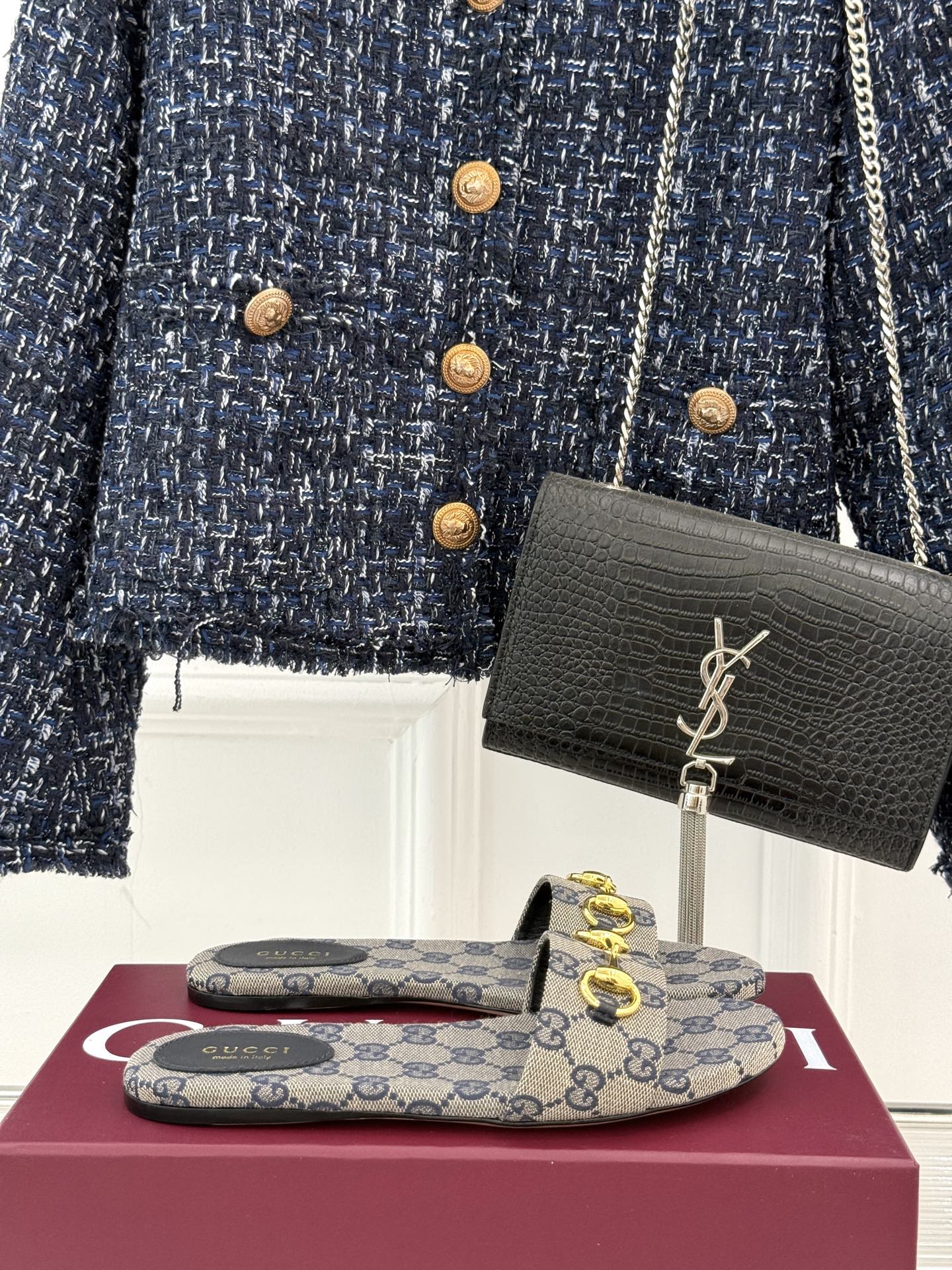 SLIDE SANDALS IN WARM BEIGE FABRIC EMBOSSED LOGO