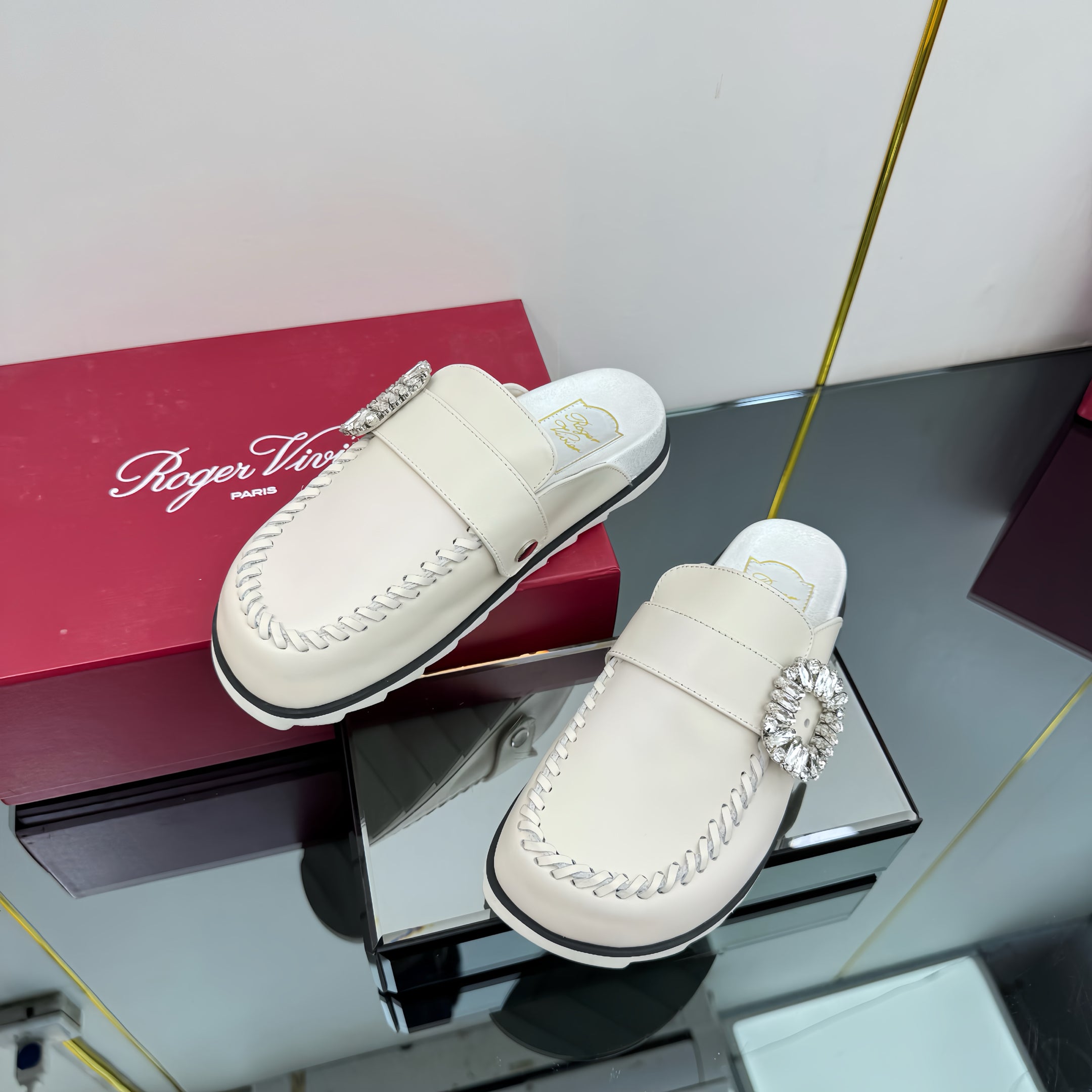 SLIDY VIV' MULES IN OFF WHITE CALFSKIN