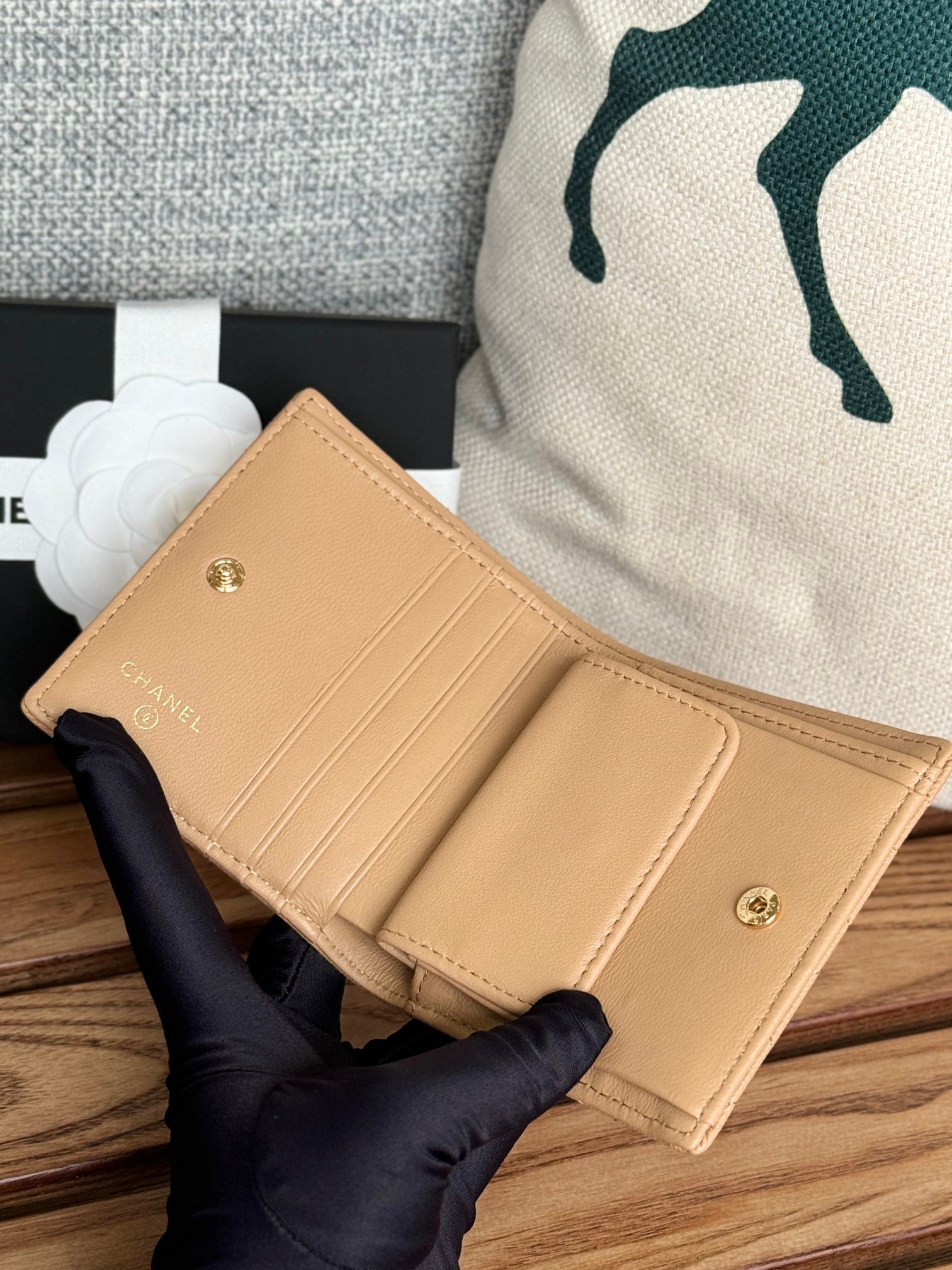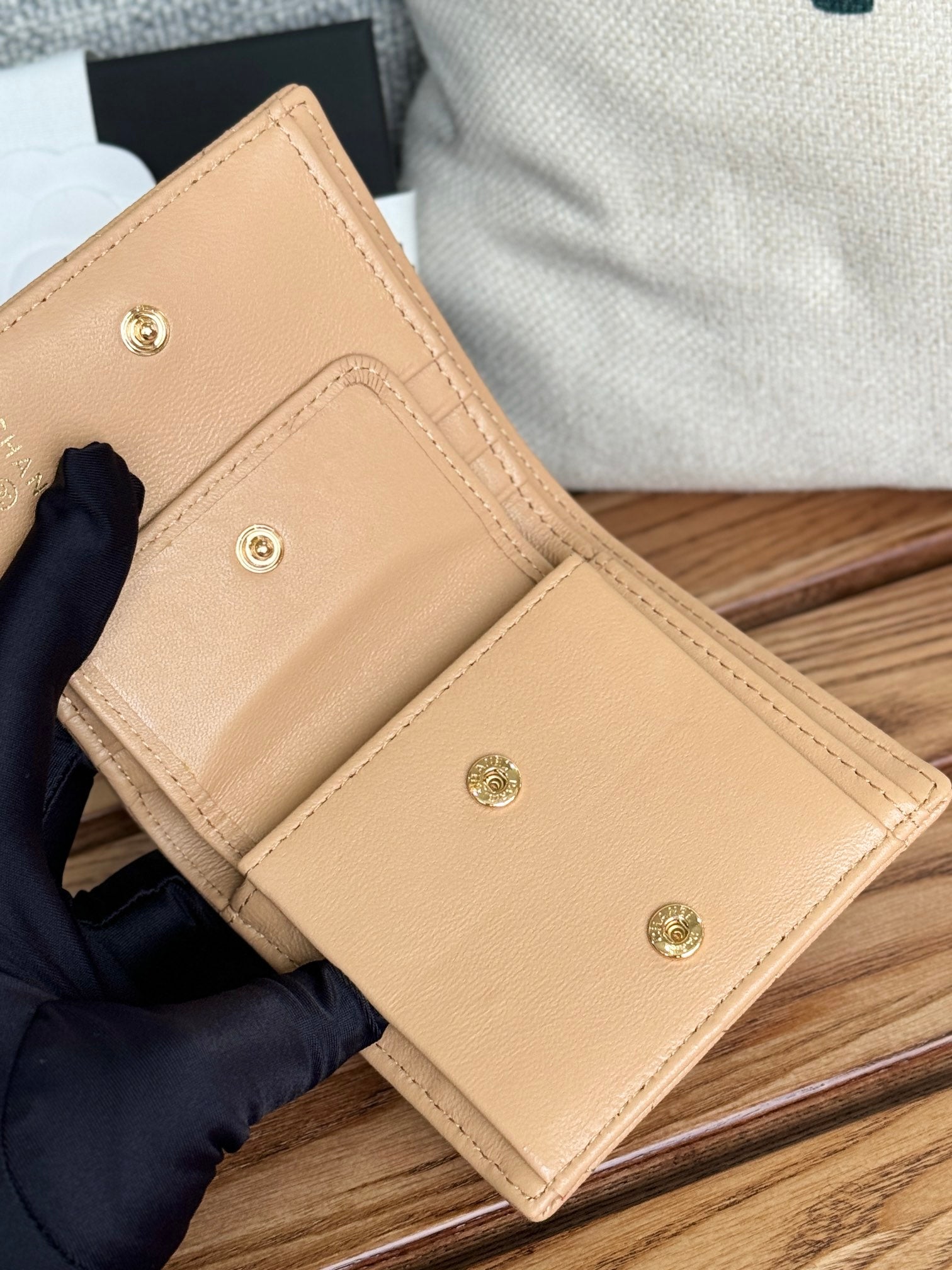 SMALL FLAP WALLET 12 IN LIGHT BROWN GRAINED CALFSKIN GOLD-TONE HARDWARE
