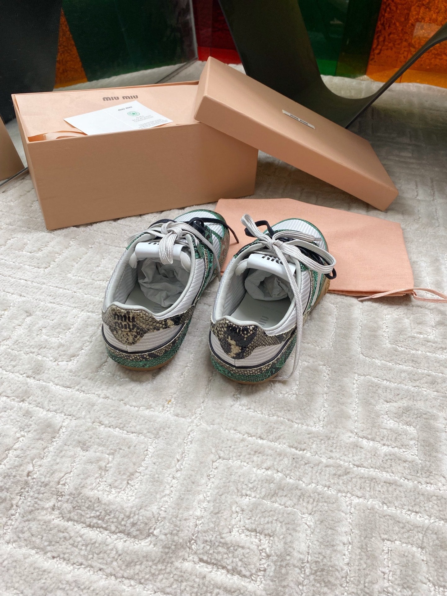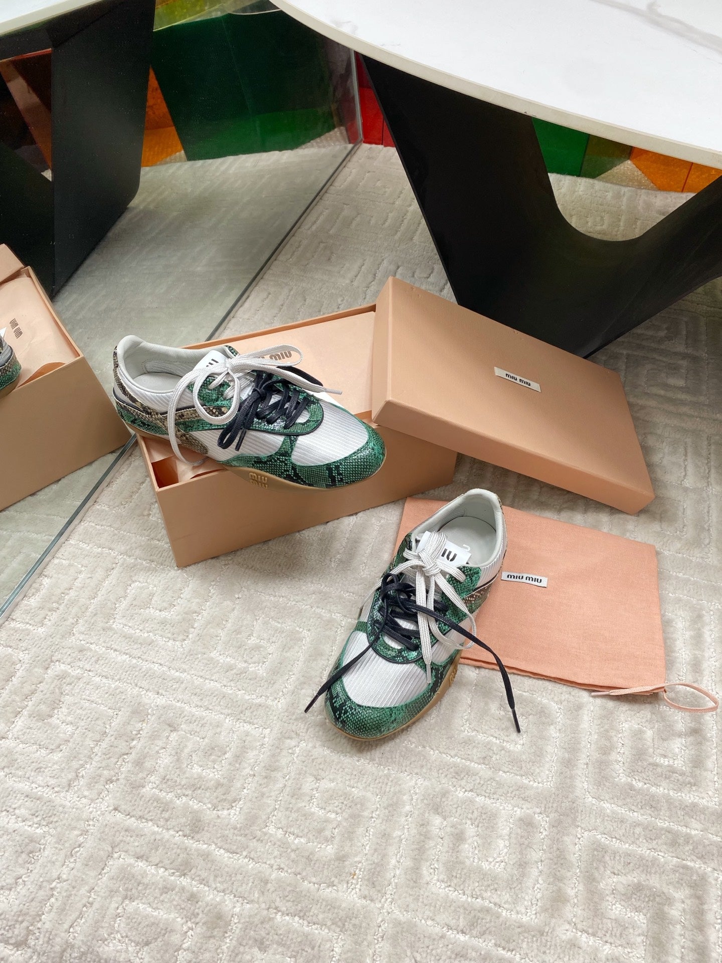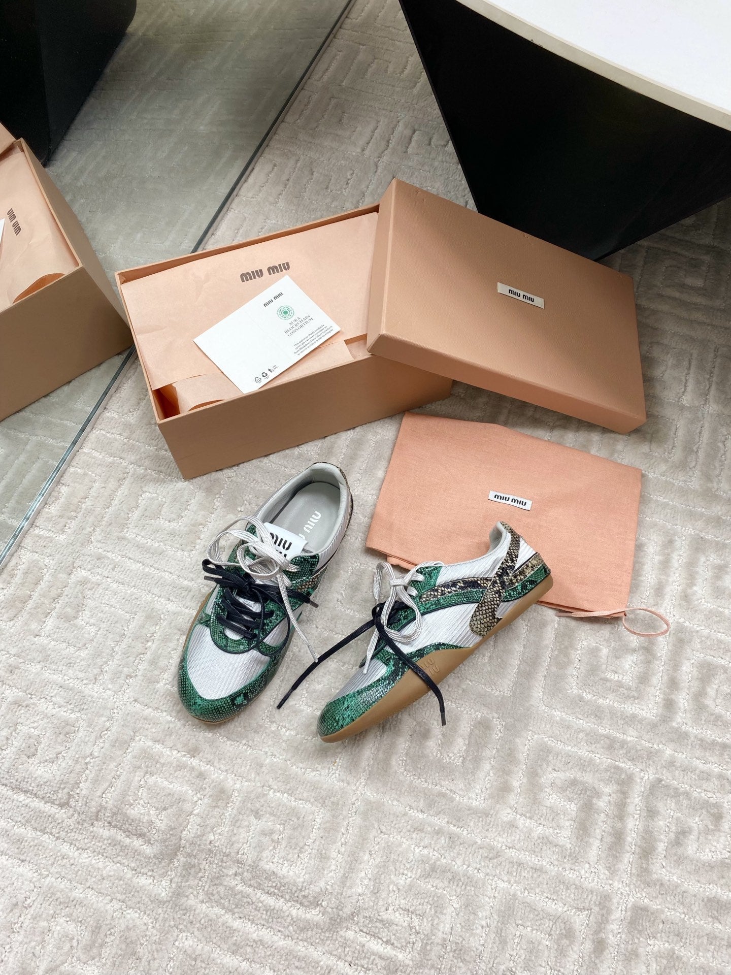 SNAKESKIN-LEATHER SNEAKERS IN GREEN MIX GREY CALFSKIN AND MESH