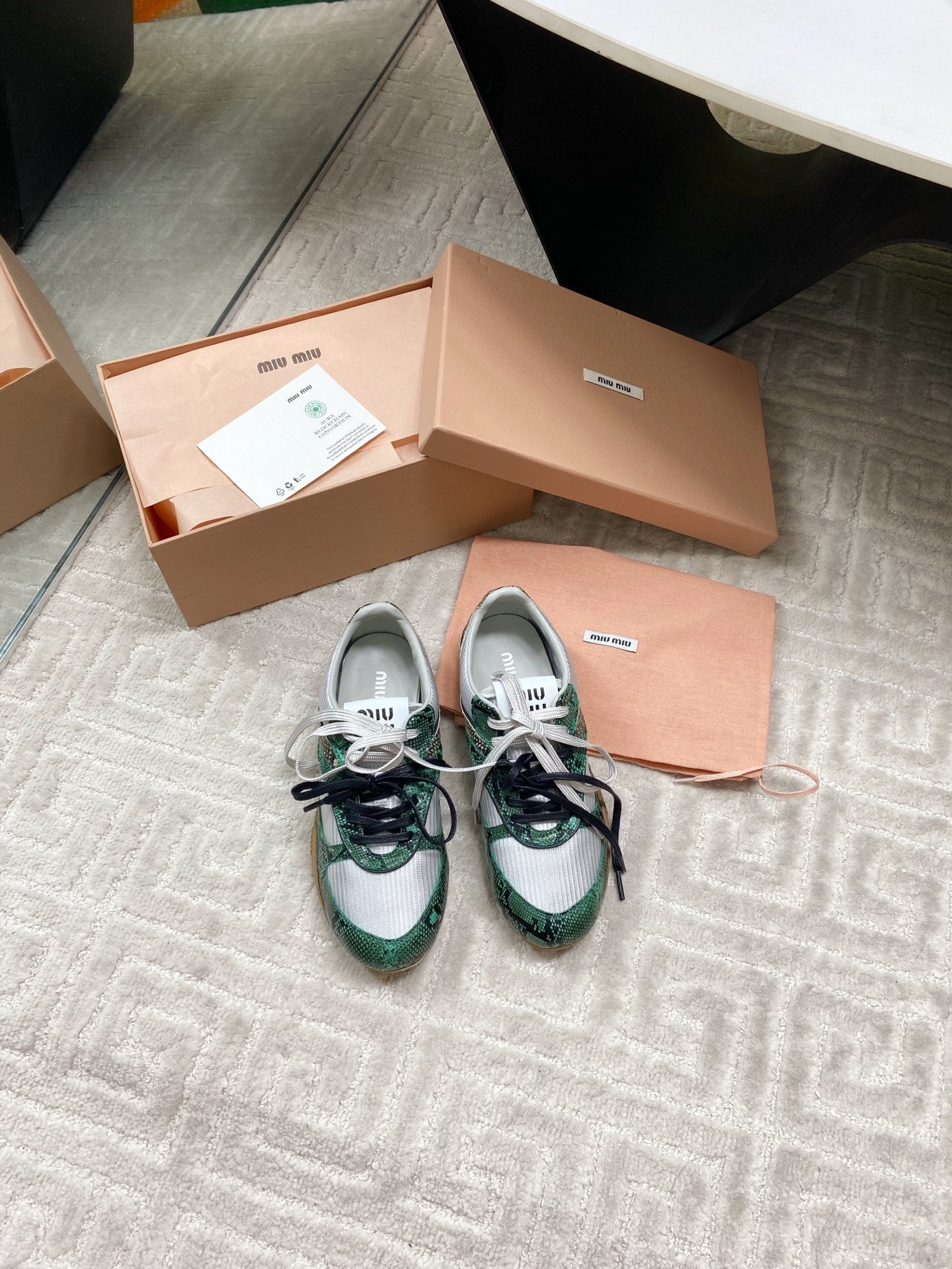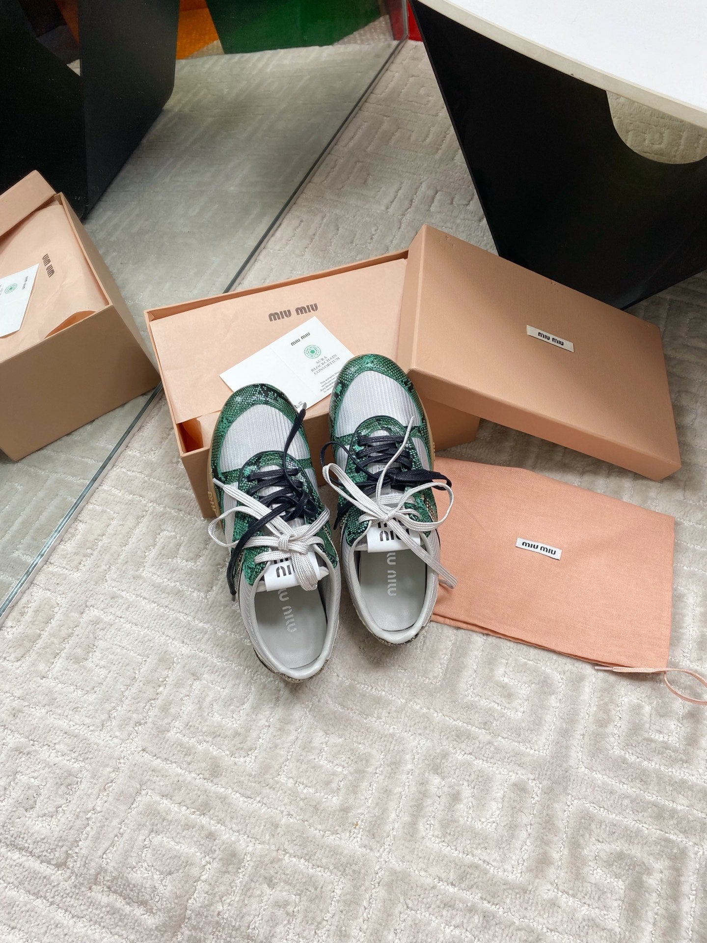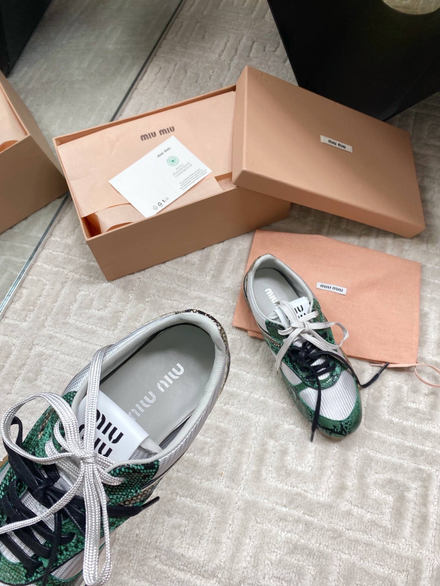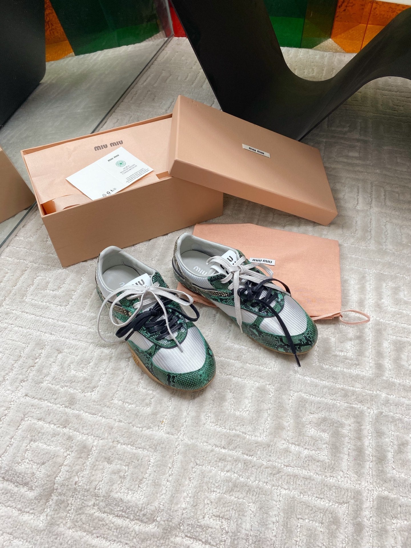 SNAKESKIN-LEATHER SNEAKERS IN GREEN MIX GREY CALFSKIN AND MESH