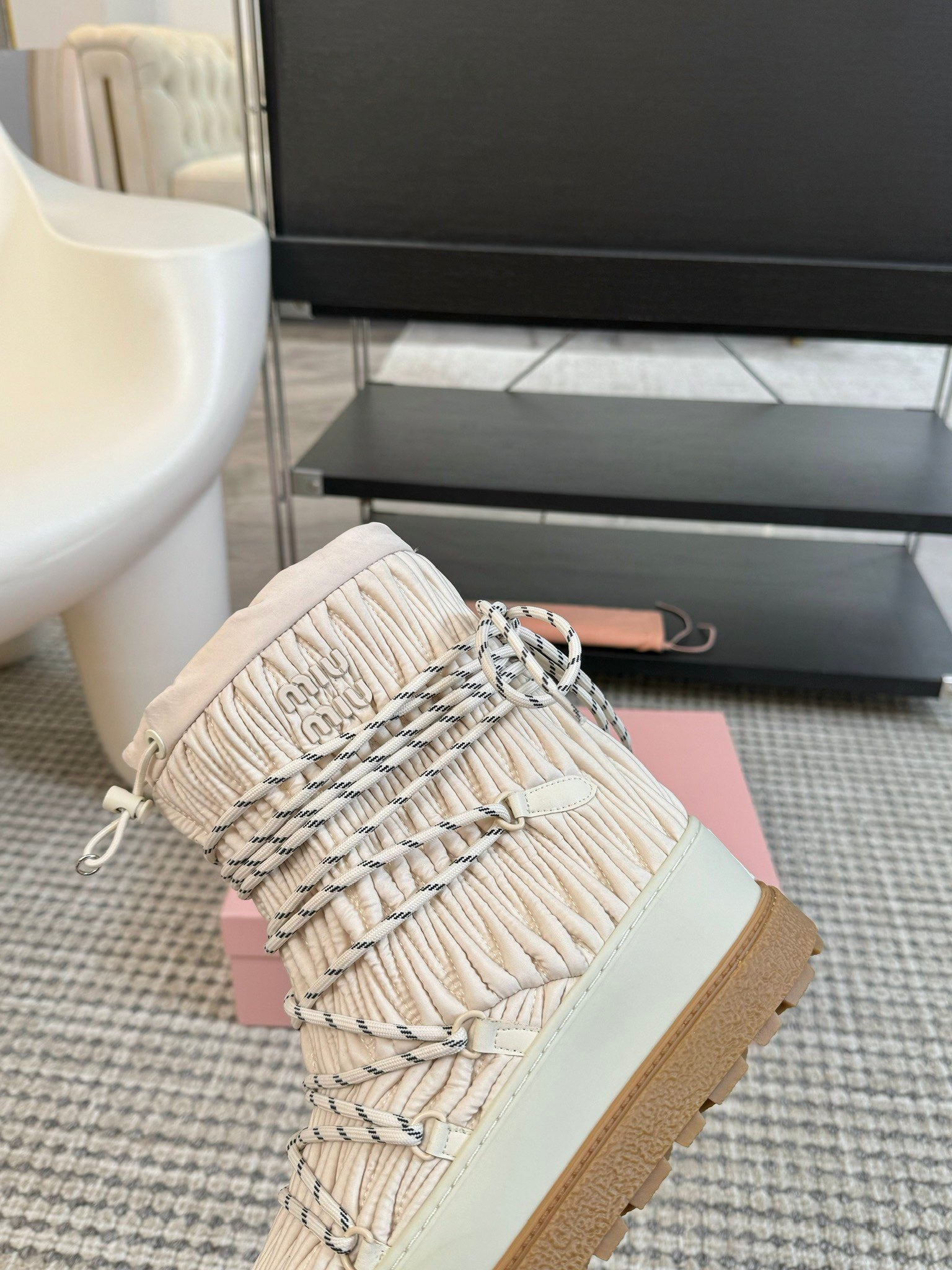 SNOW ANKLE BOOTS IN COSMIC LATTE WRINKLED NYLON