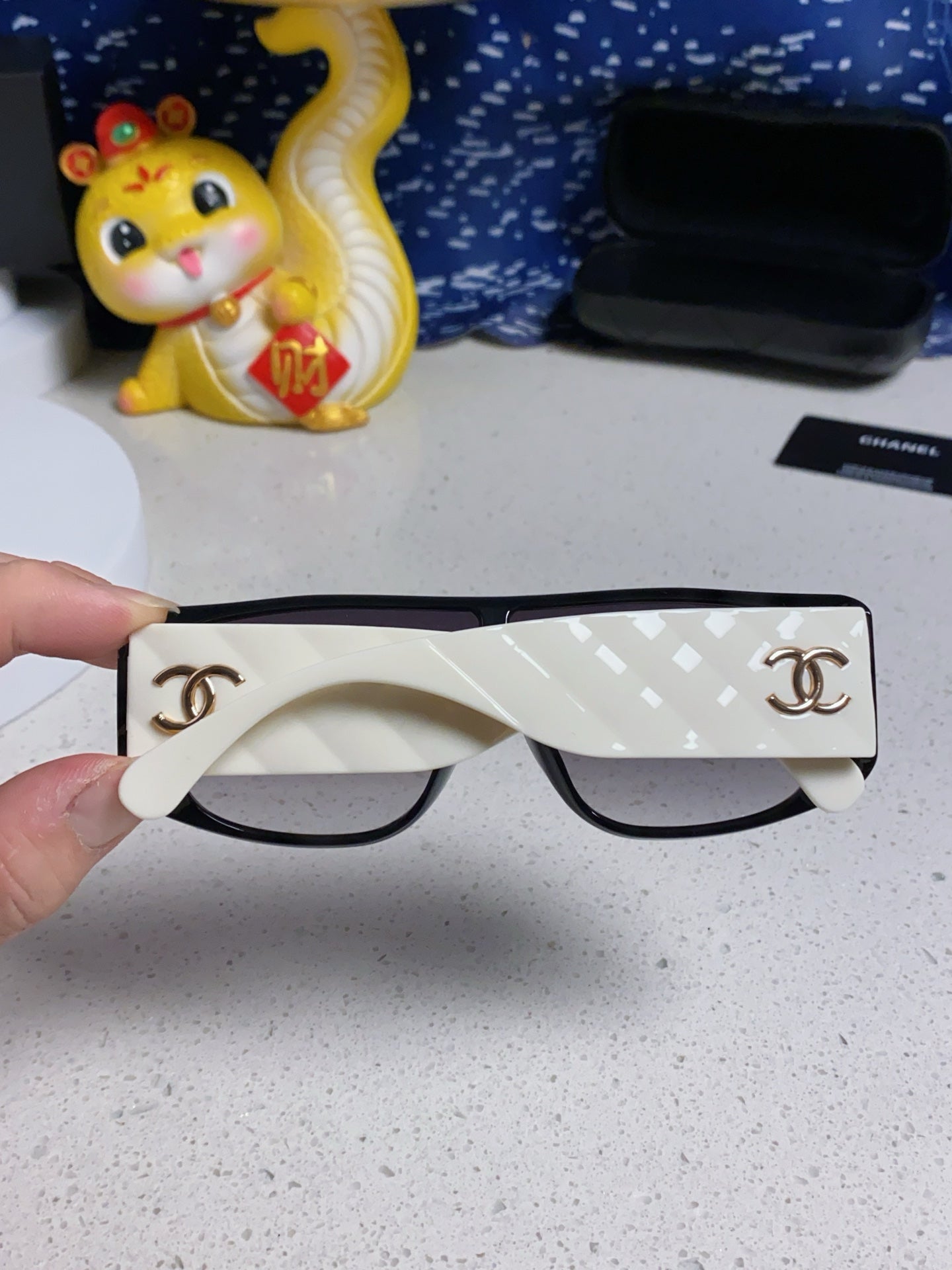 SQUARE SUNGLASSES 641781 IN BLACK ACETATE WHITE FRAME