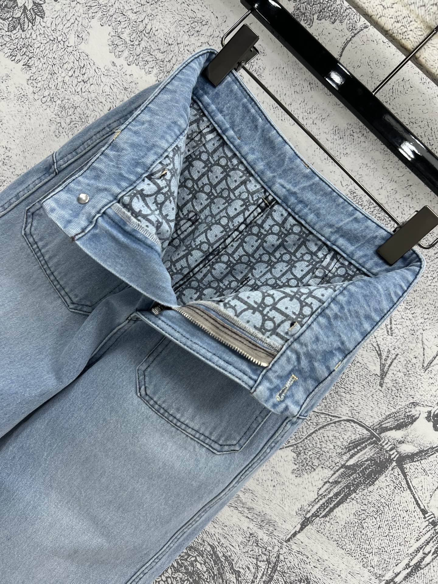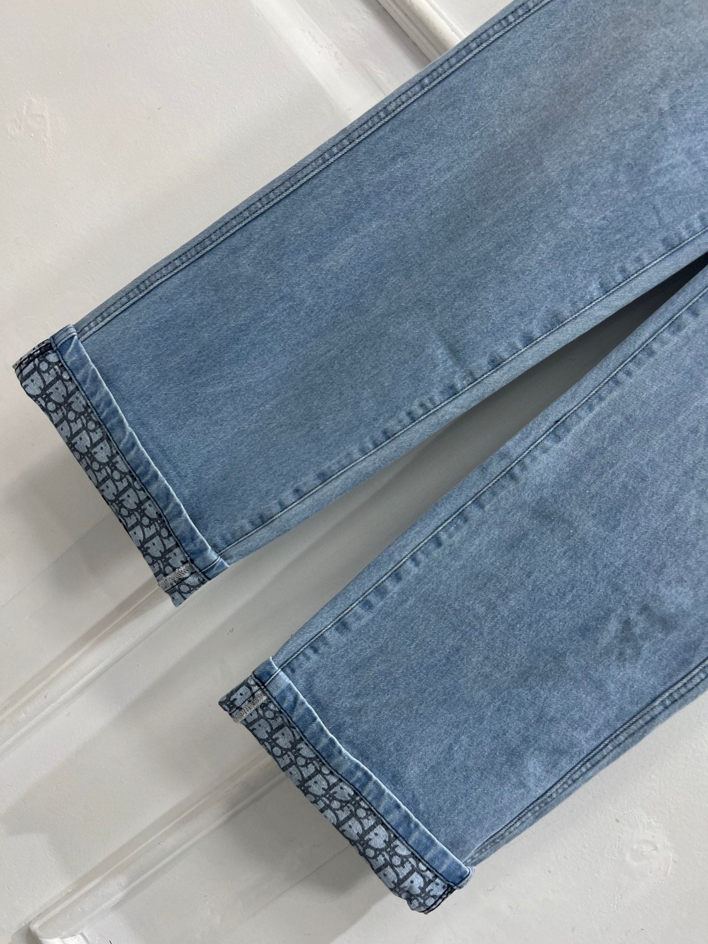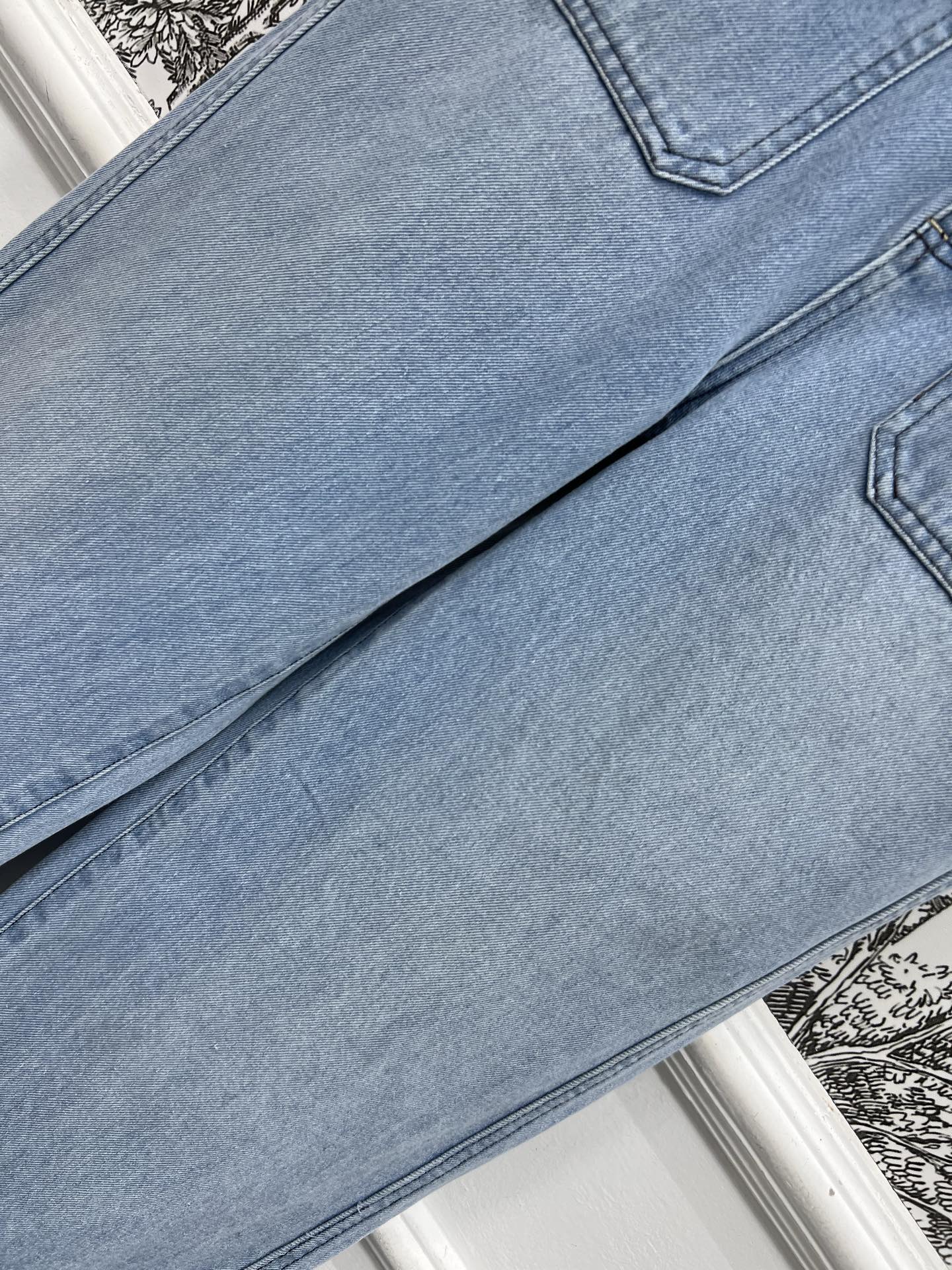 STRAIGHT LEG JEANS DENIM JACQUARD DUSTY BLUE 266732