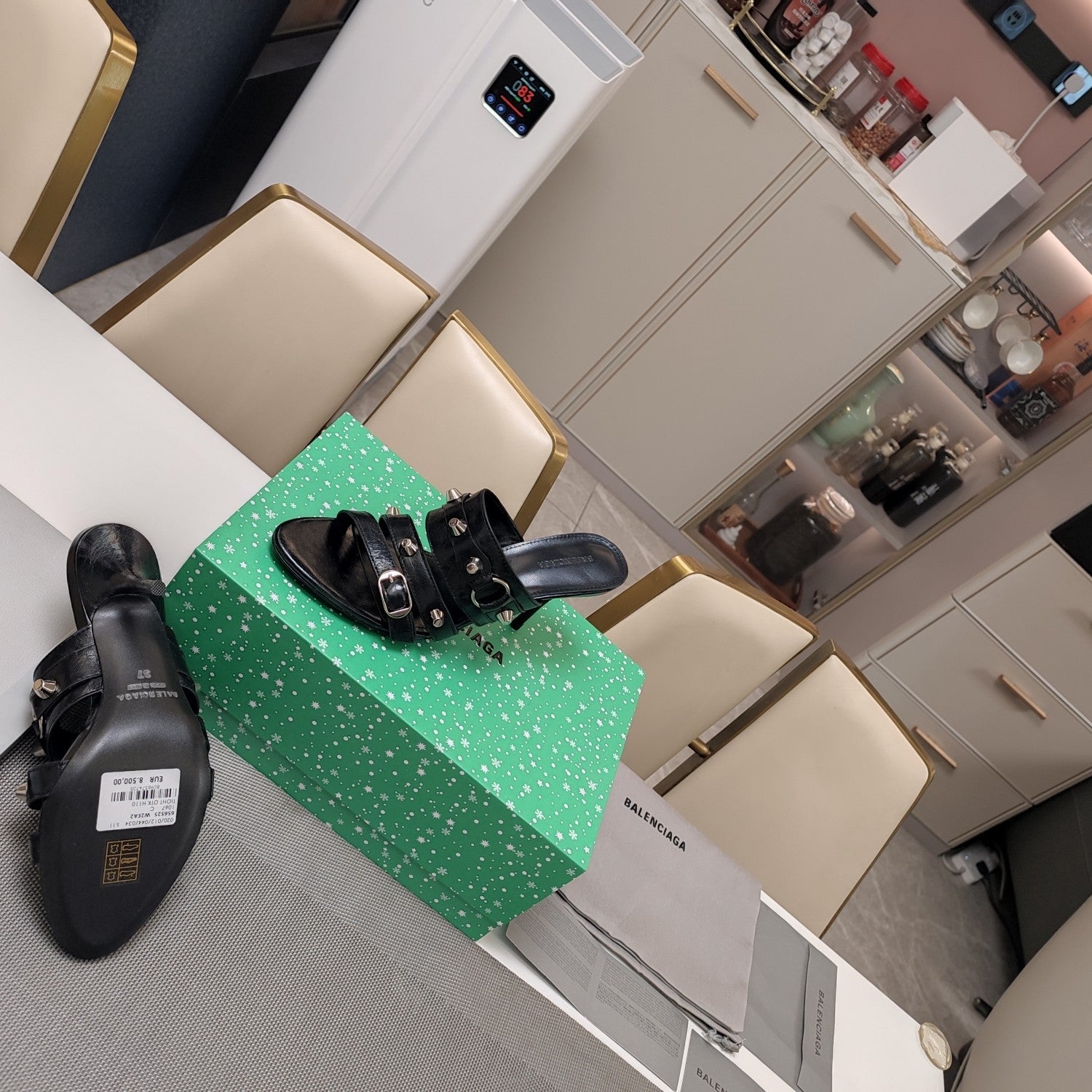 STRAPPY HIGH-HEELED SANDALS IN BLACK STUDDED WAX-OIL SHEEPSKIN