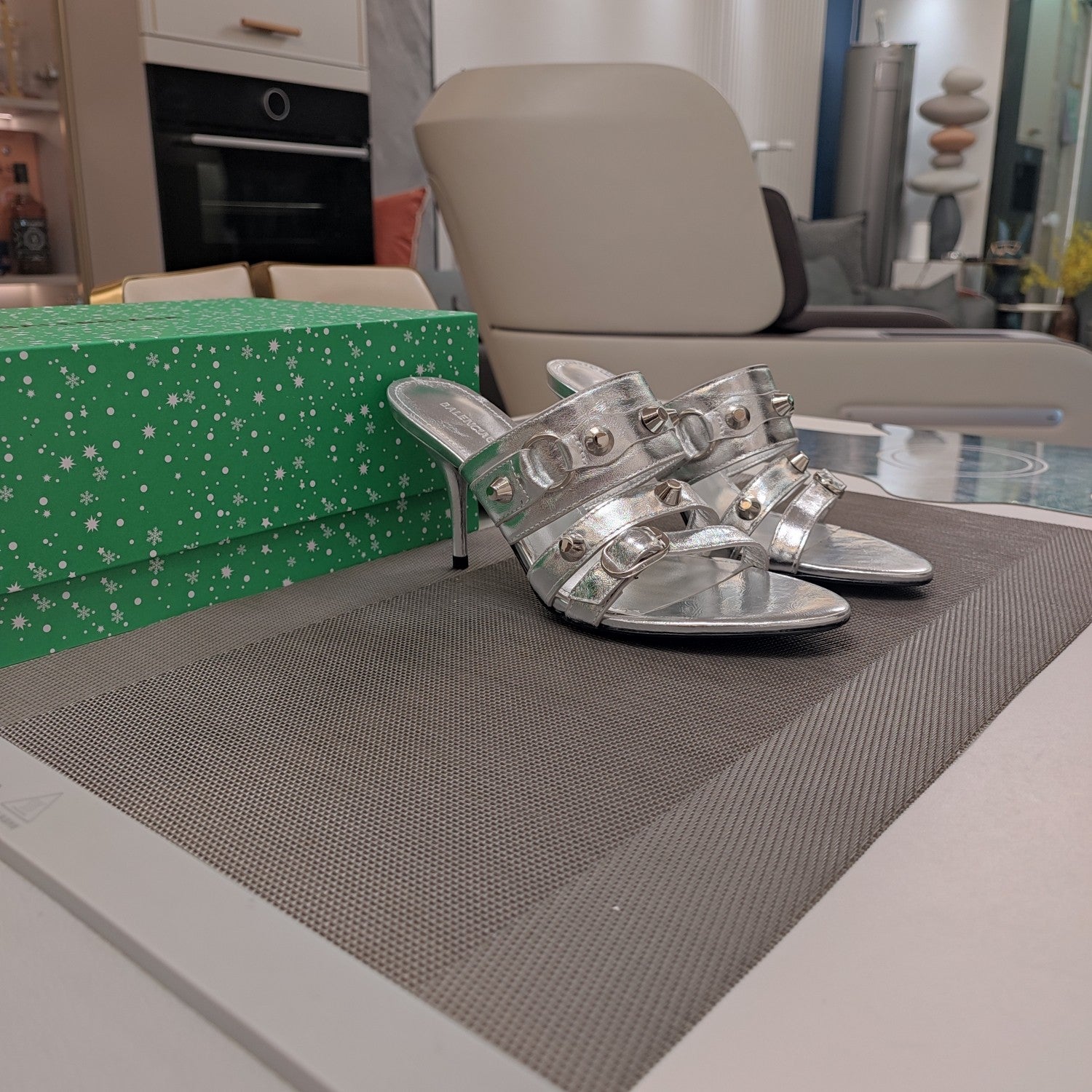 STRAPPY HIGH-HEELED SANDALS IN SILVER STUDDED WAX-OIL SHEEPSKIN