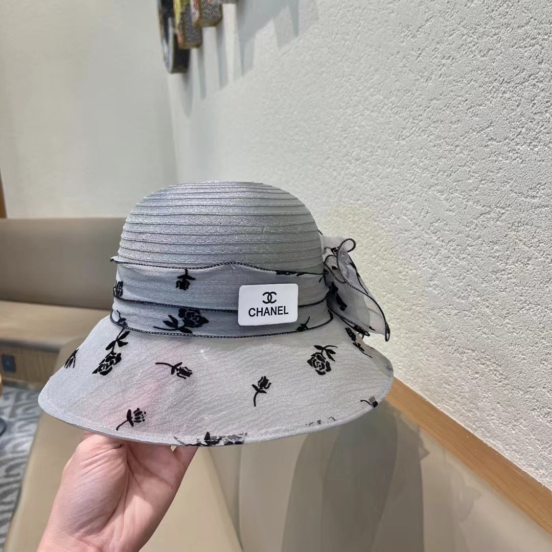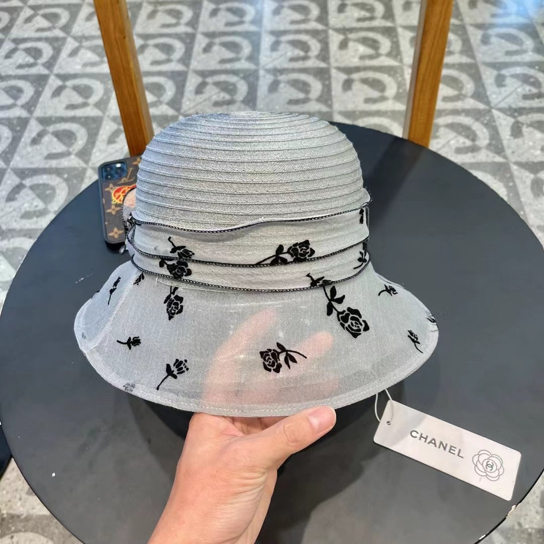 STRAW HAT WITH CHIFFON FLOWER VINTAGE GRAY 672759