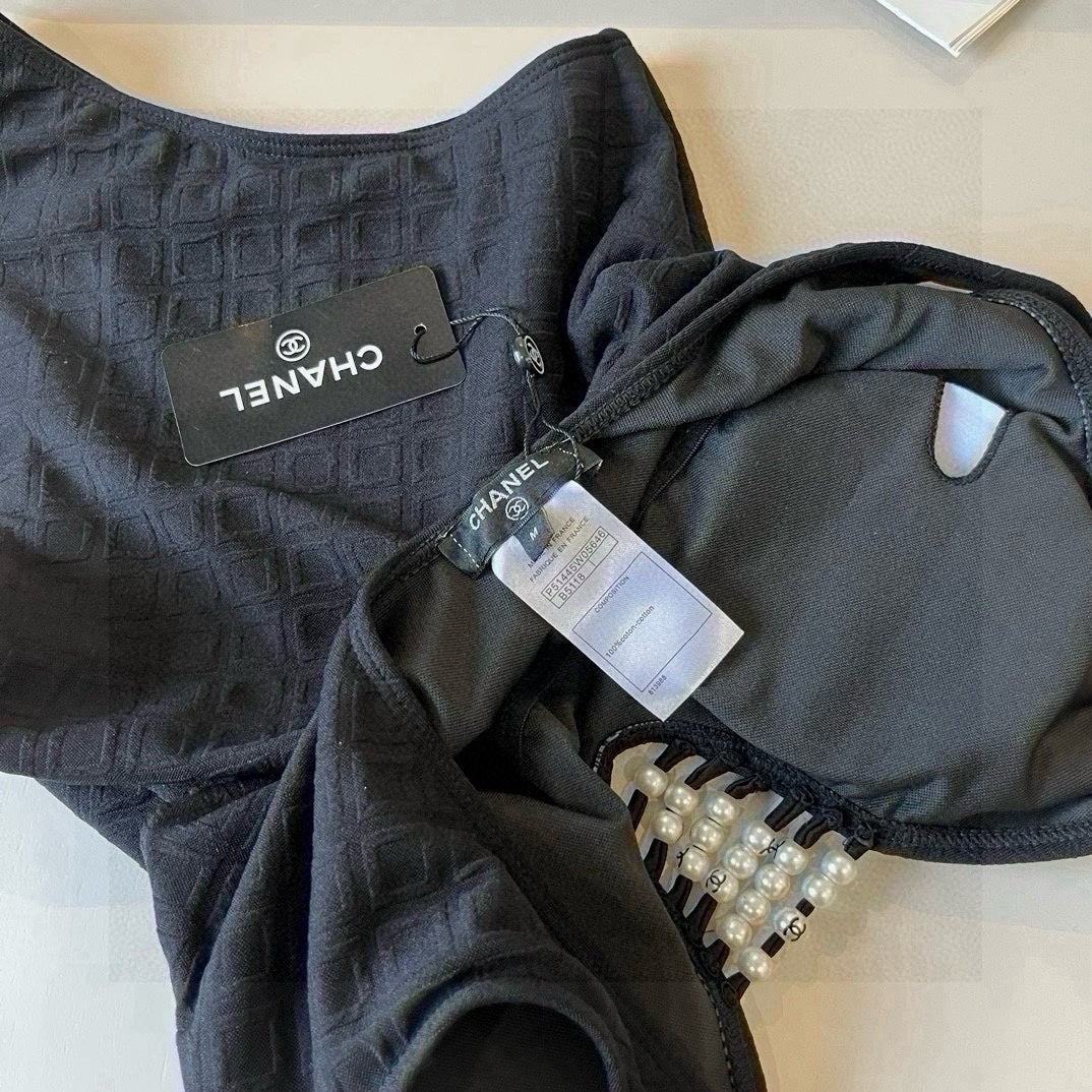 SWIMSUIT IN BLACK COTTON MIX PEARL PRINTED LOGO 627819