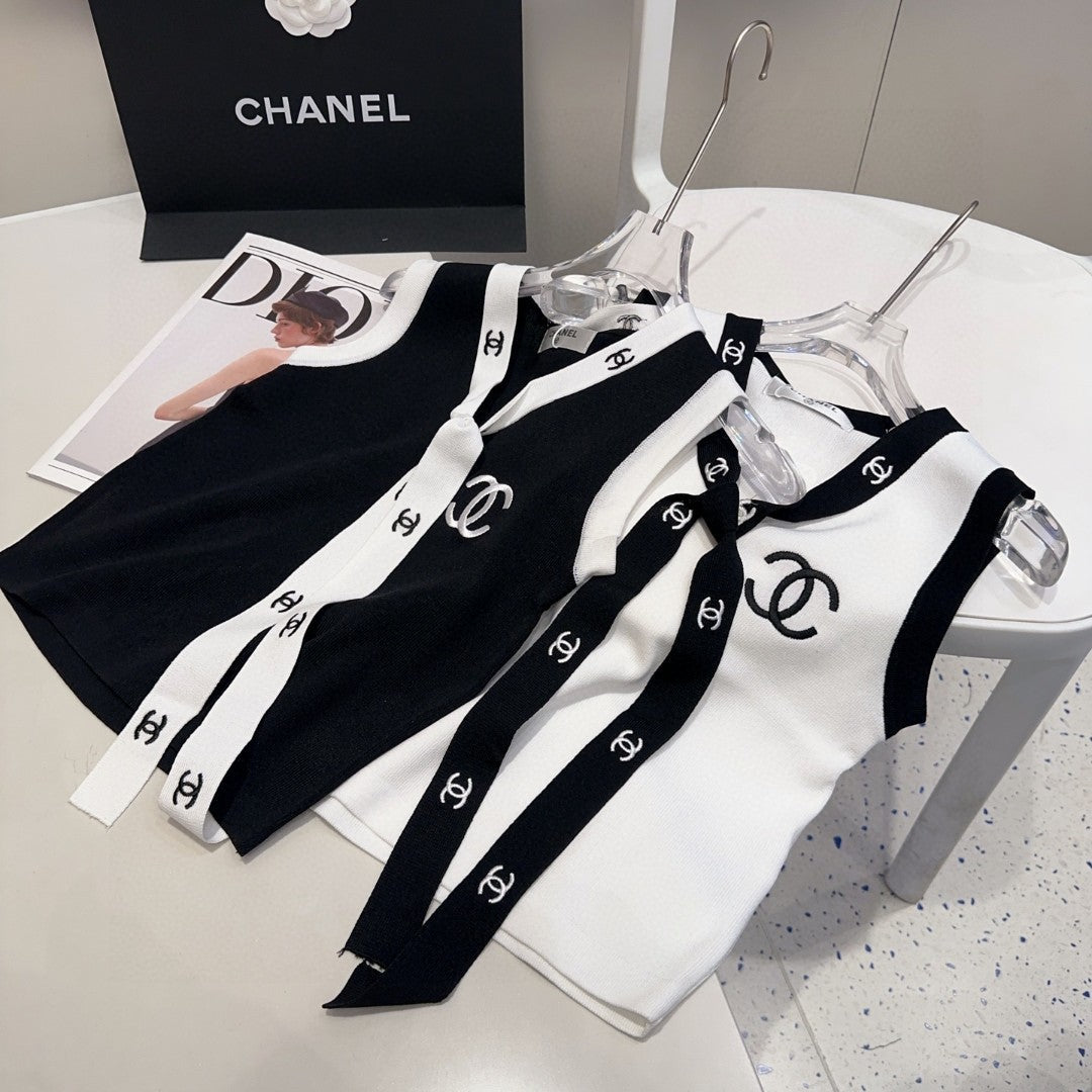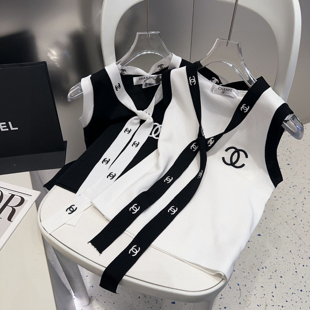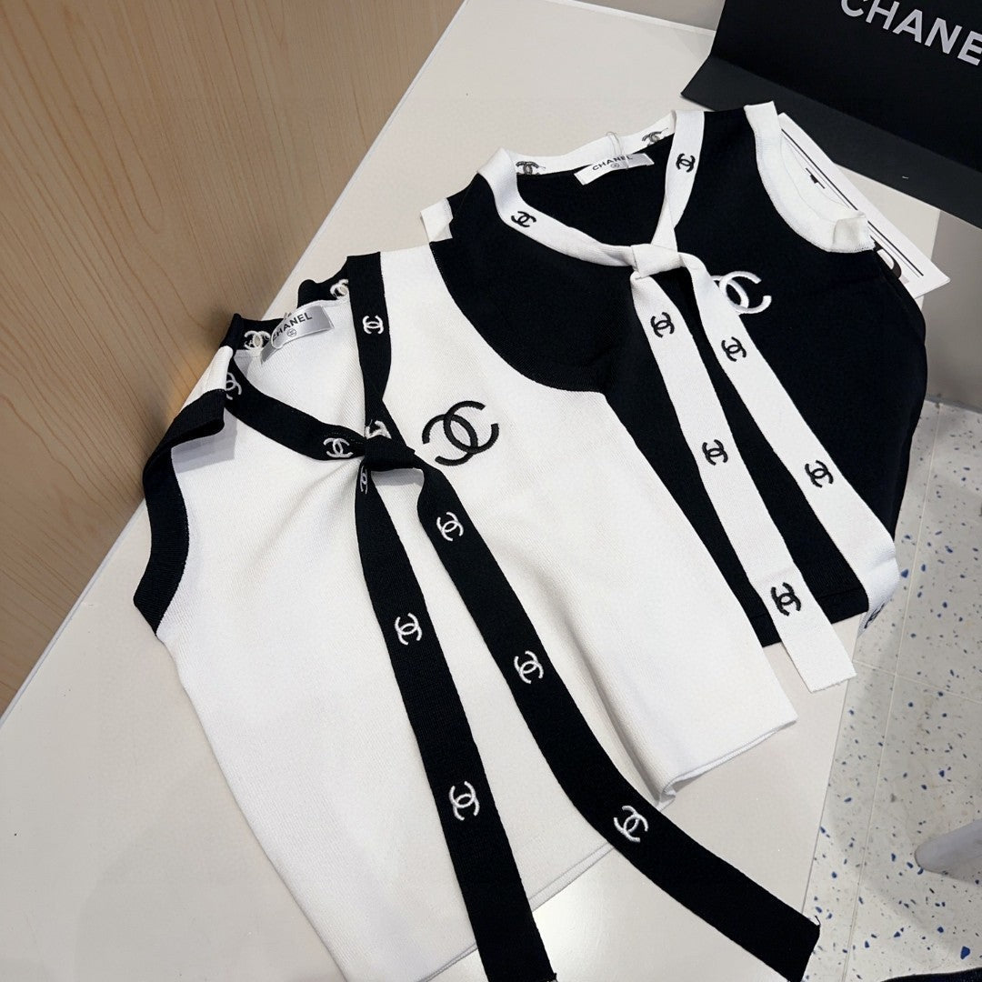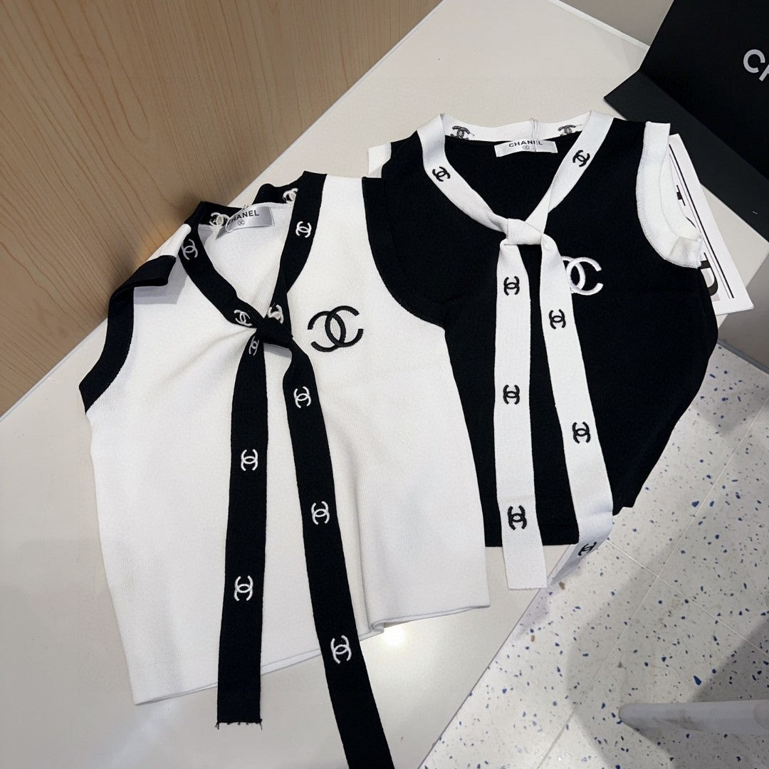 TANK TOP 624514 IN WHITE COTTON RIBBED BLACK TRIM AND BOW