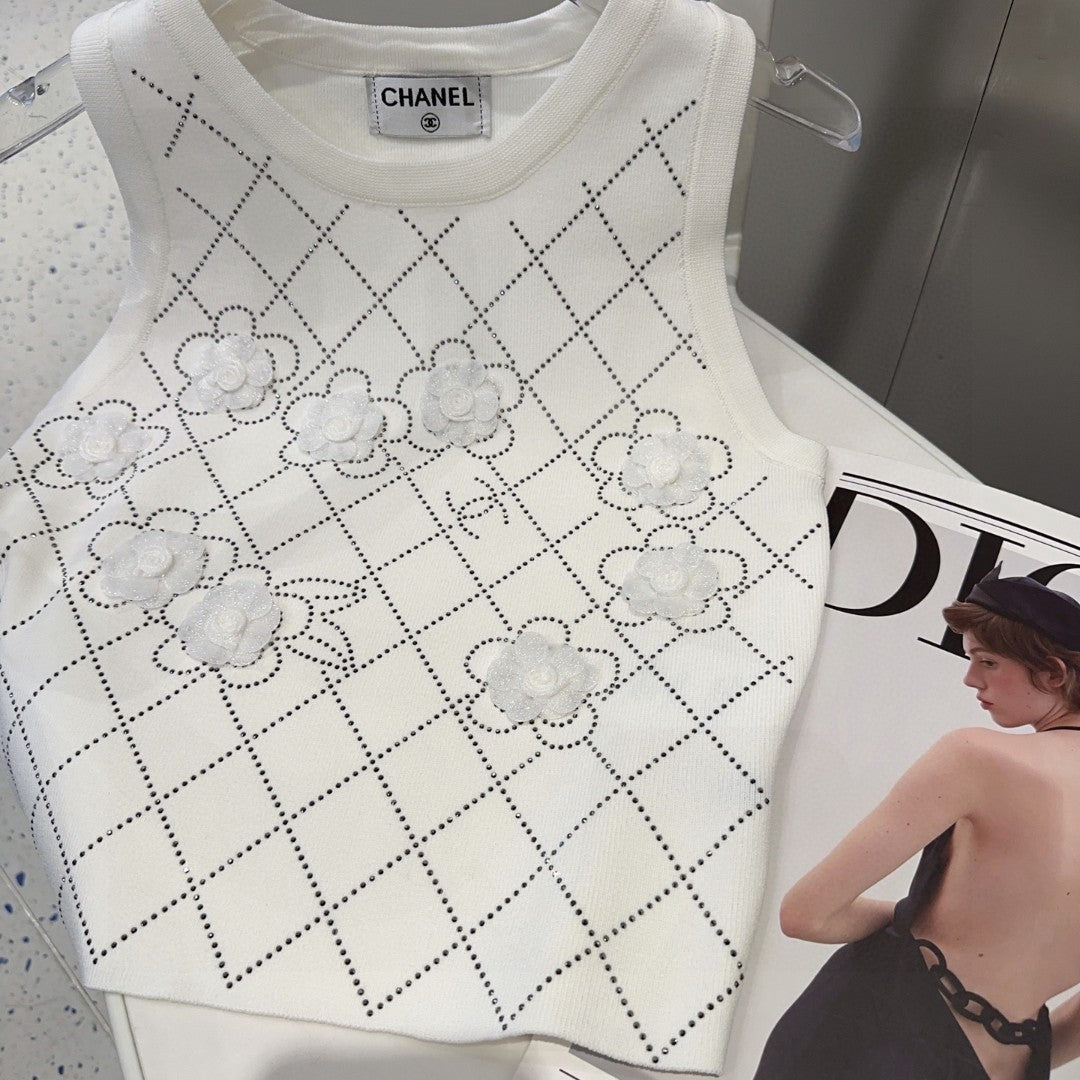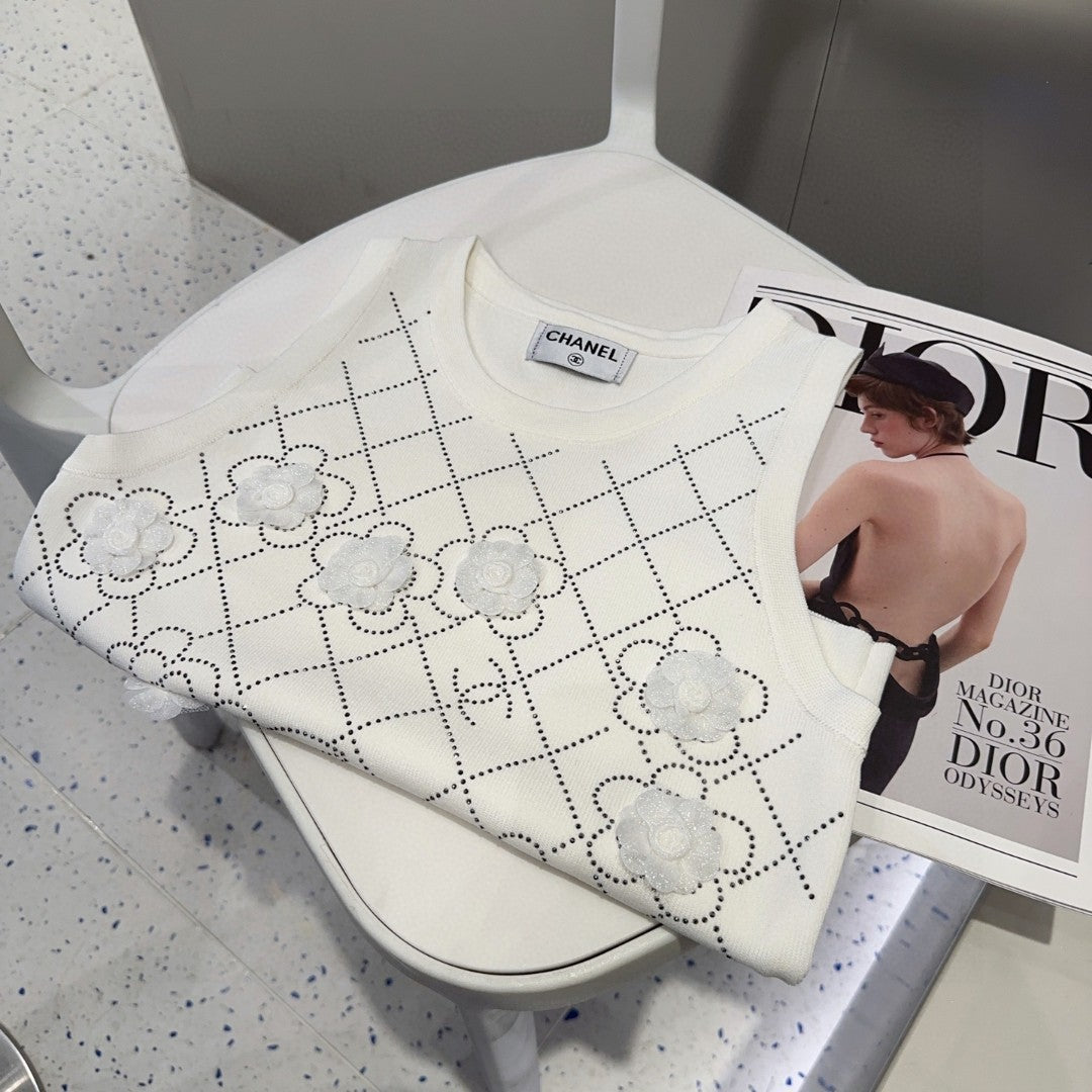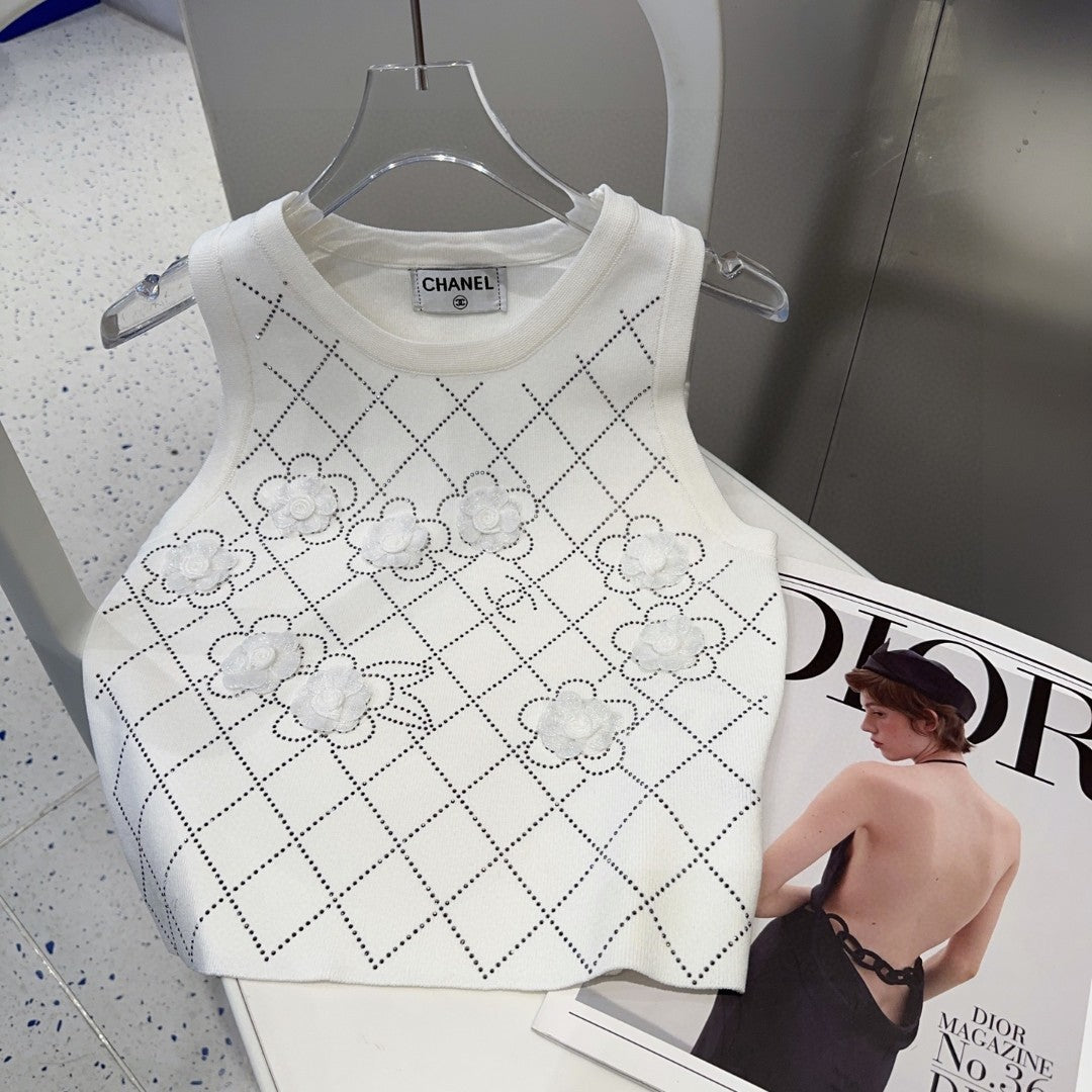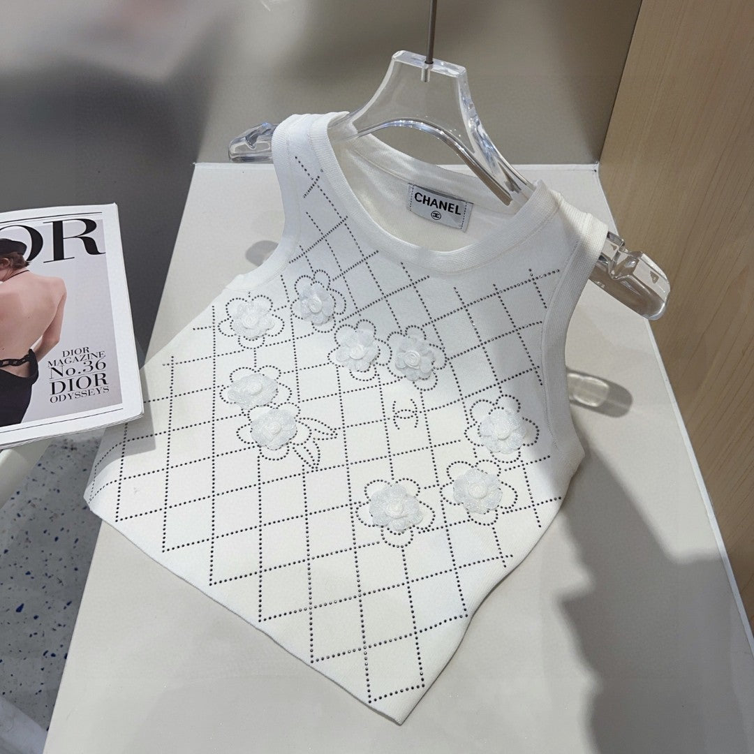 TANK TOP 633204 IN WHITE COTTON RIBBED KNIT EMBOSSED FLORAL