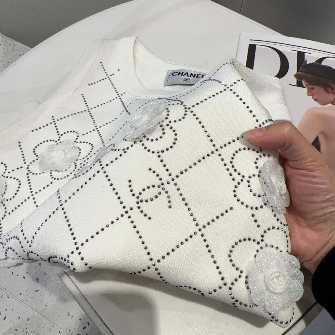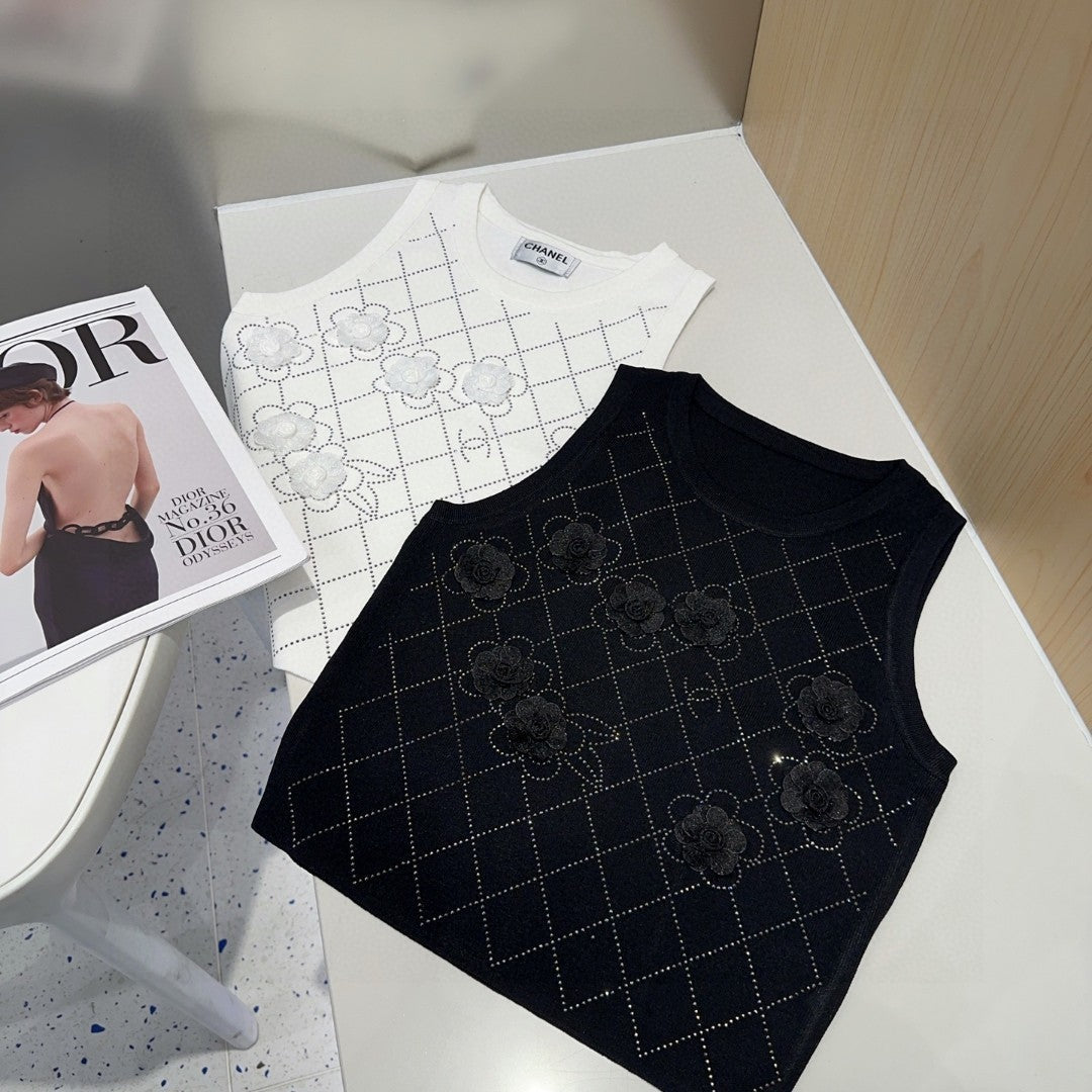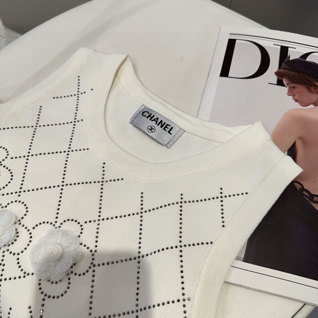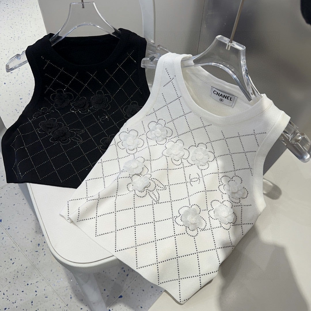 TANK TOP 633204 IN WHITE COTTON RIBBED KNIT EMBOSSED FLORAL
