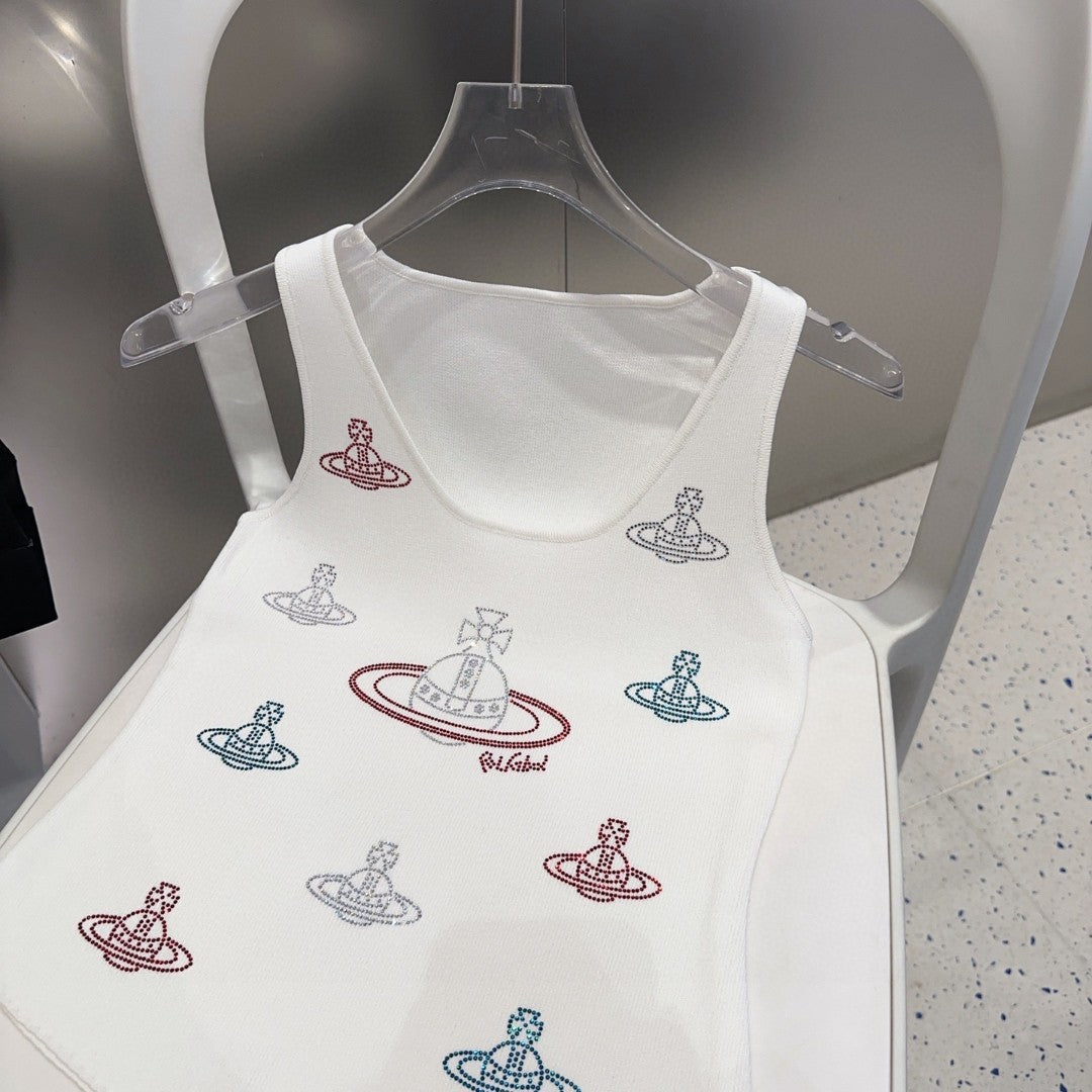 TANK TOP 639167 IN WHITE COTTON RIBBED KNIT EMBOSSED CRYSTAL