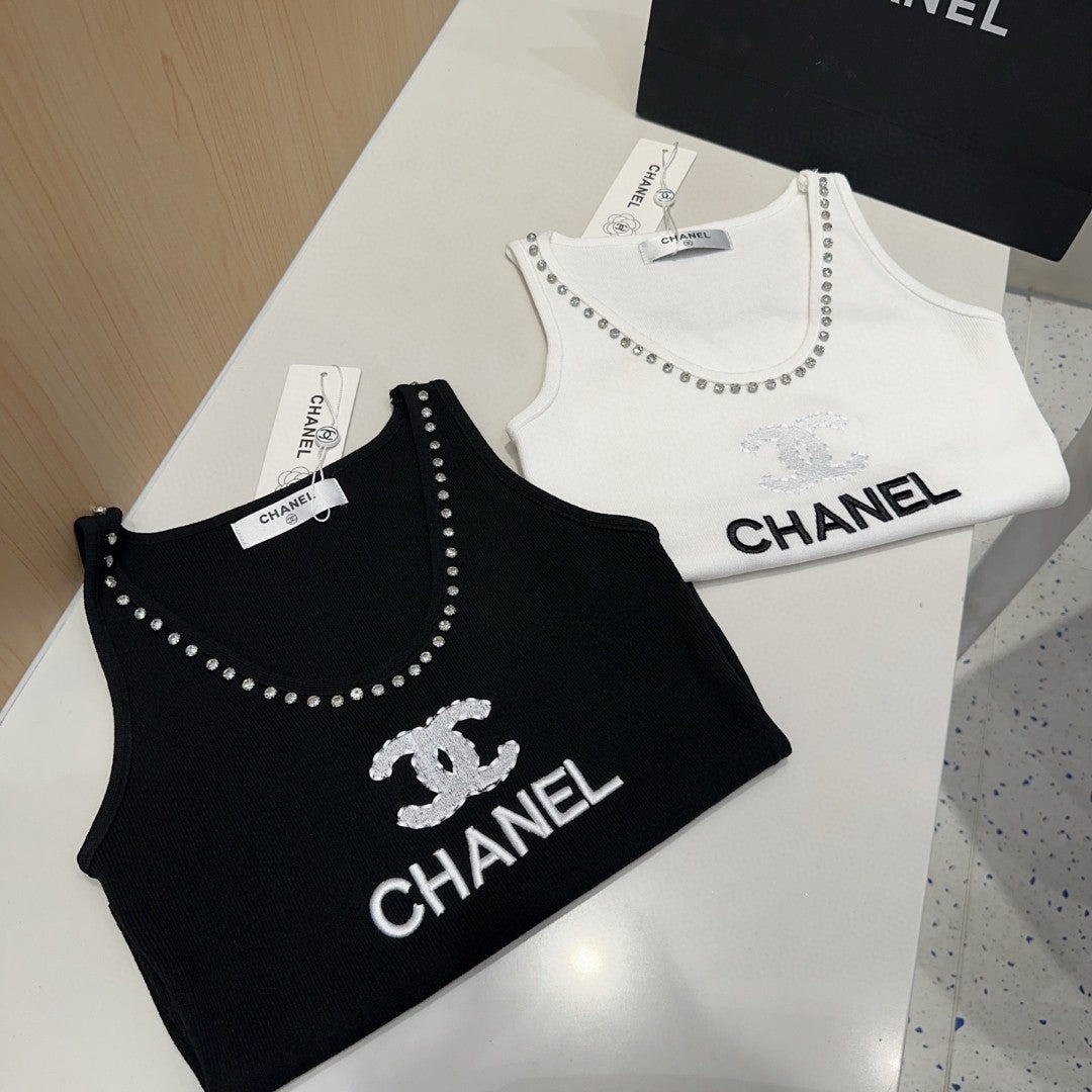 TANK TOP 640623 IN BLACK COTTON CRYSTAL ON TRIM