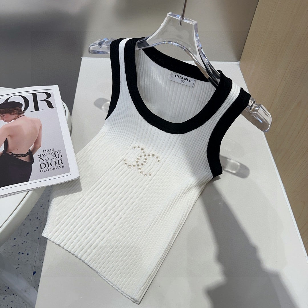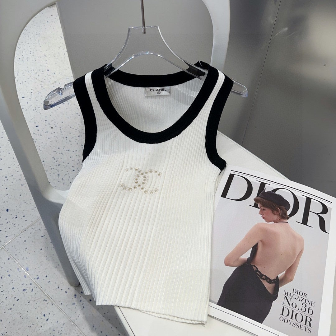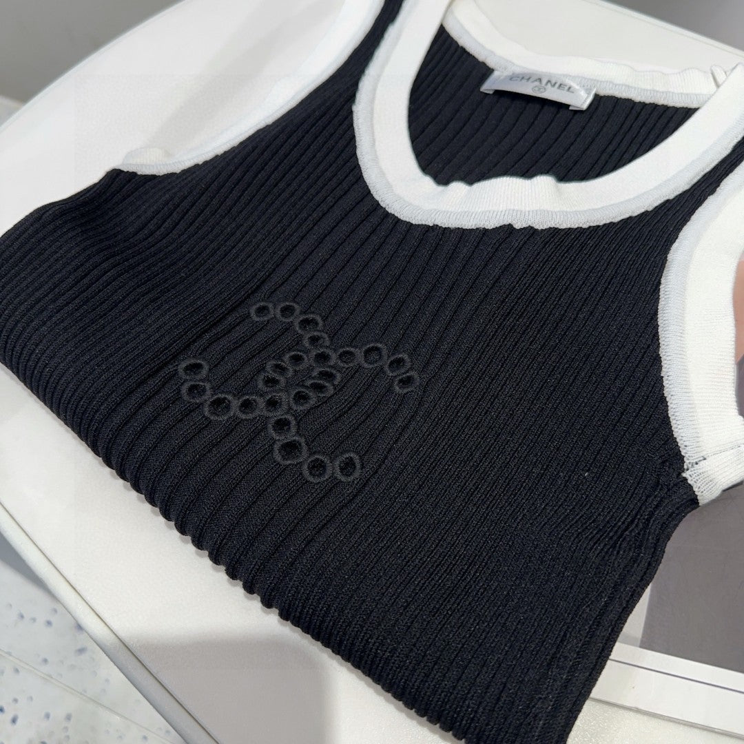 TANK TOP 643225 IN BLACK AND WHITE COTTON RIBBED KNIT