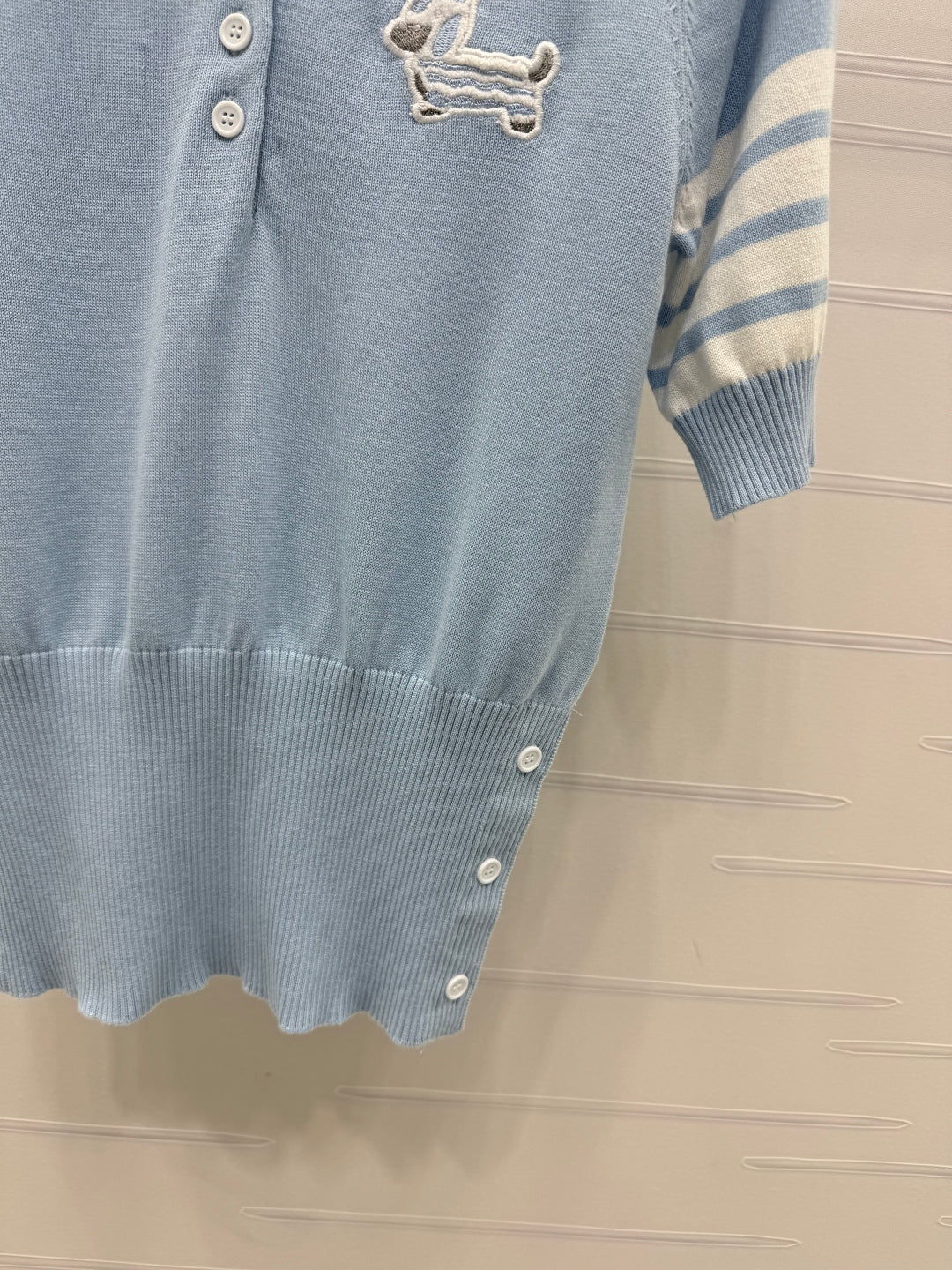 THOM SHORT-SLEEVE KNIT SWEATER WITH EMBROIDERED DOG MOTIF 274849