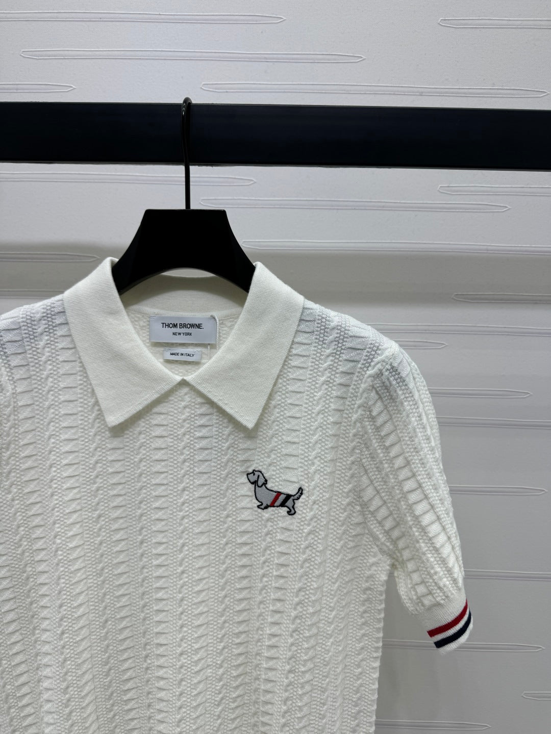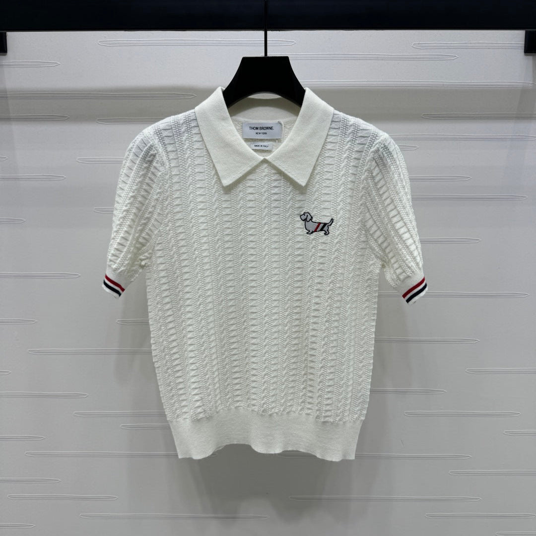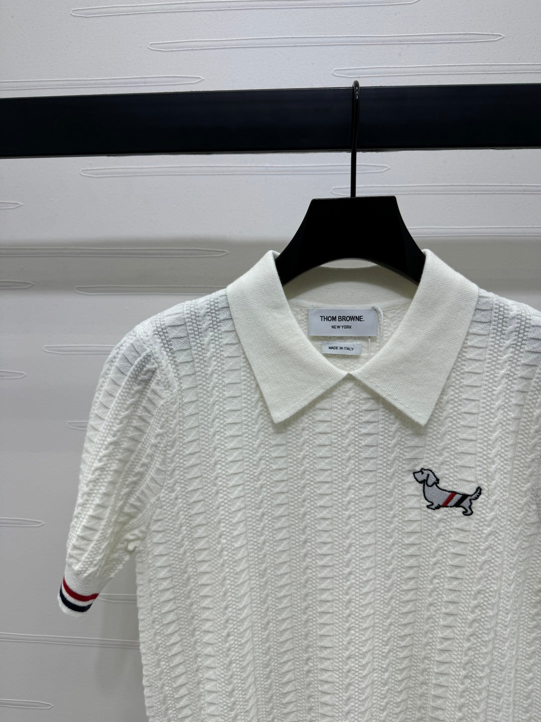 THOM SHORT-SLEEVE KNIT TOP WITH EMBROIDERED DOG MOTIF 274871