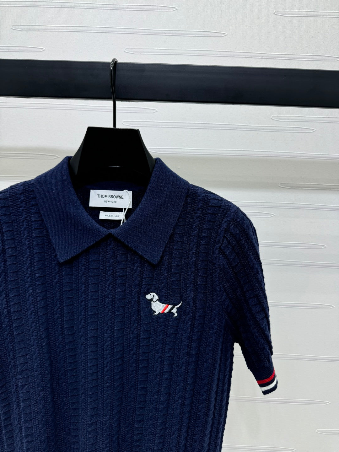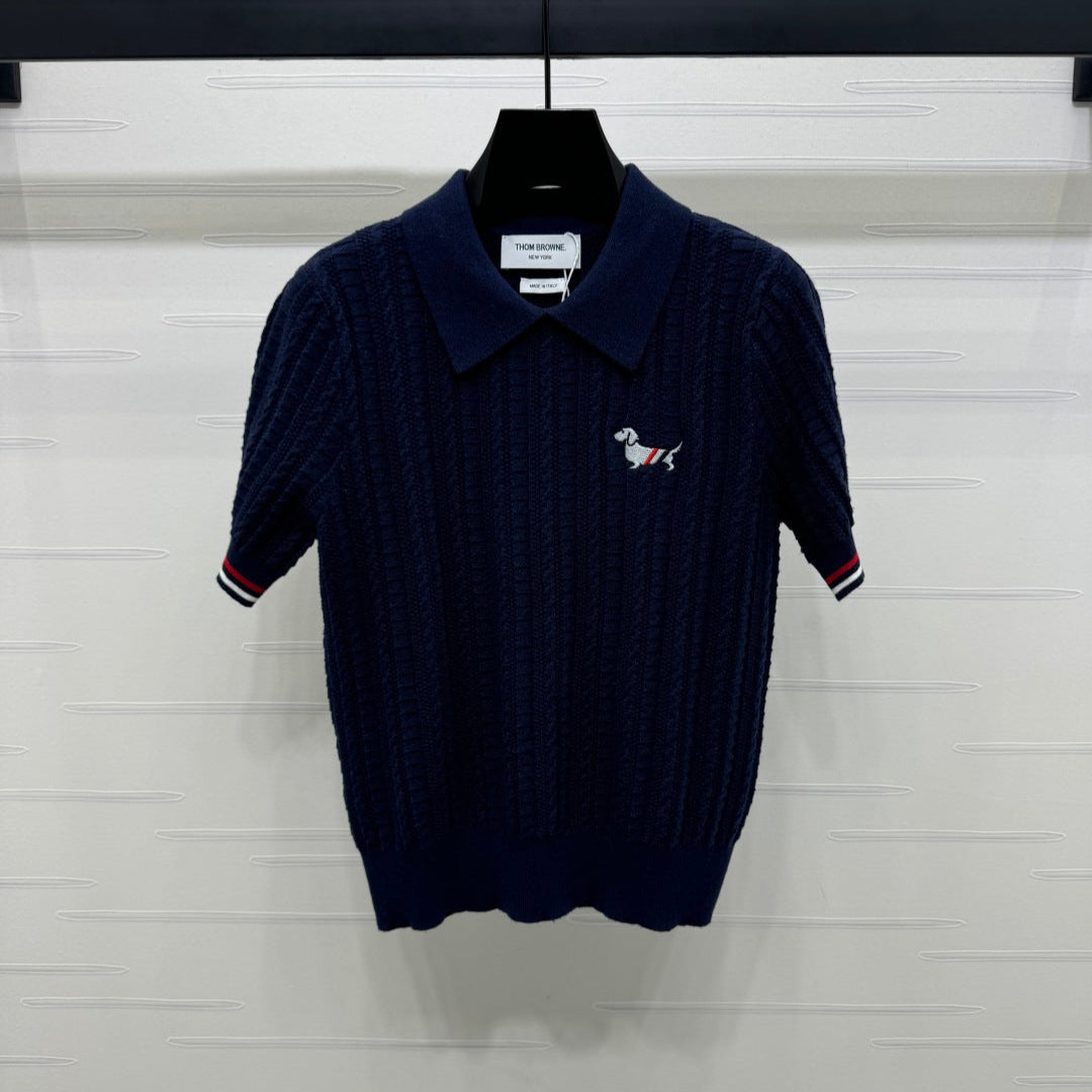THOM SHORT-SLEEVE KNIT TOP WITH EMBROIDERED DOG MOTIF 274873
