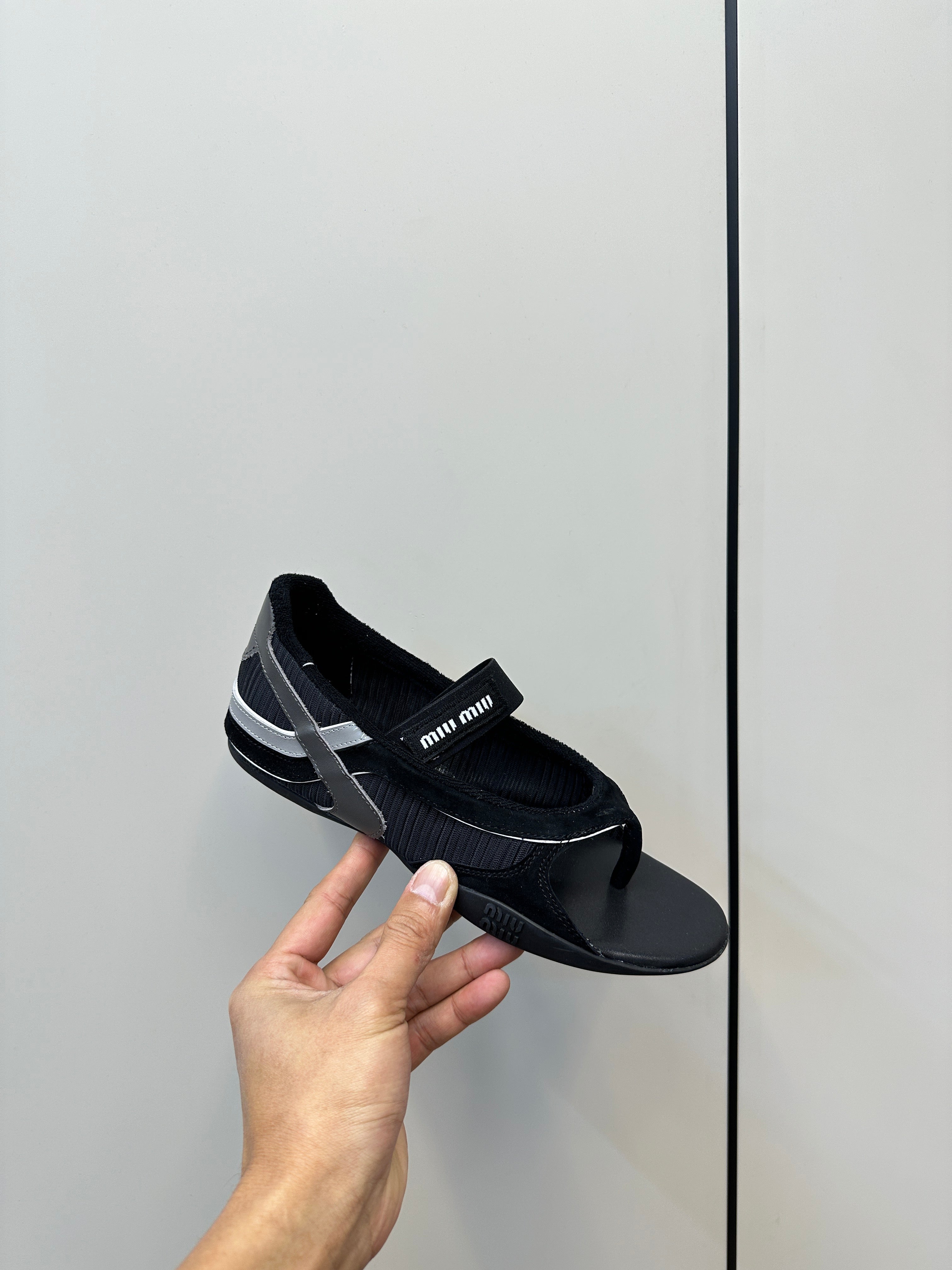 THONG SANDALS IN BLACK SUEDE MIX TECH FABRIC