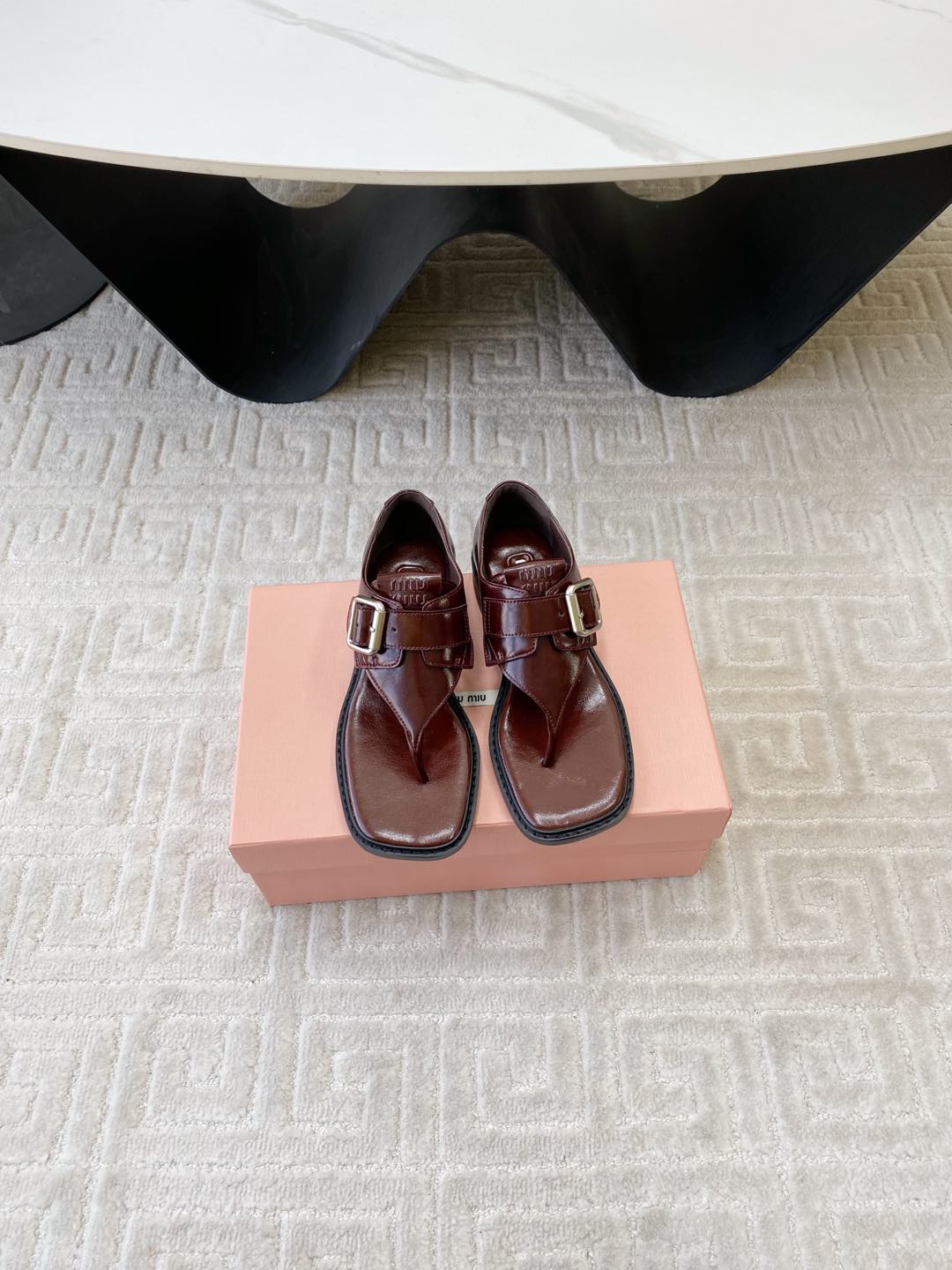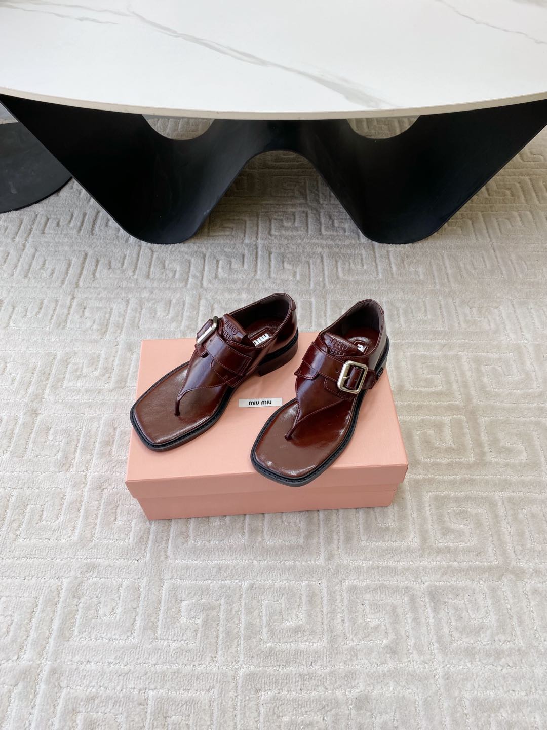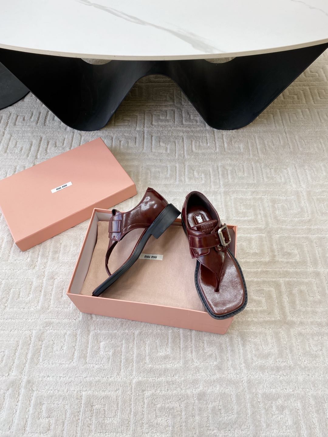 THONG SANDALS IN RED BROWN SHINY LAMBSKIN WITH SILVER BUCKLE