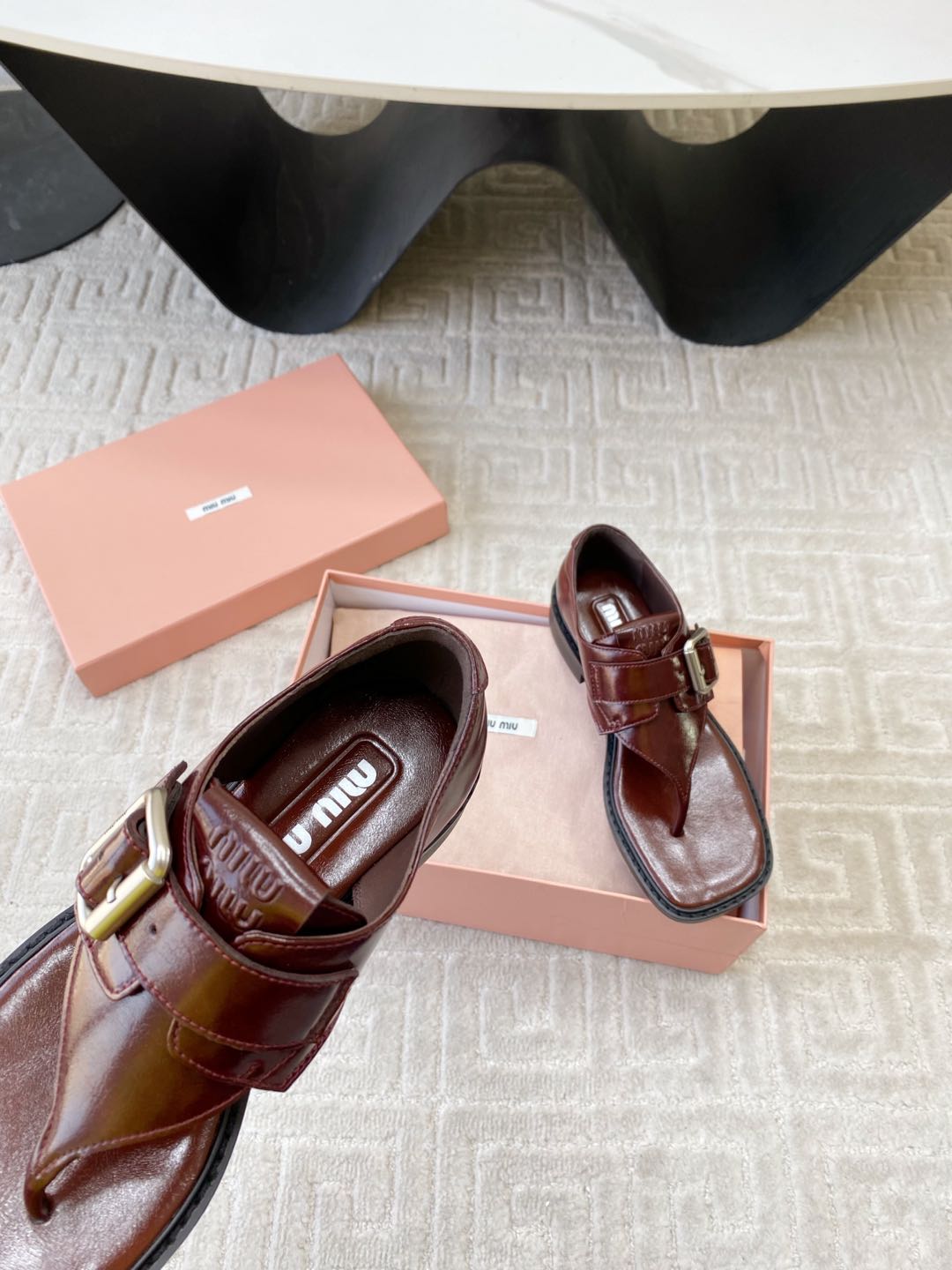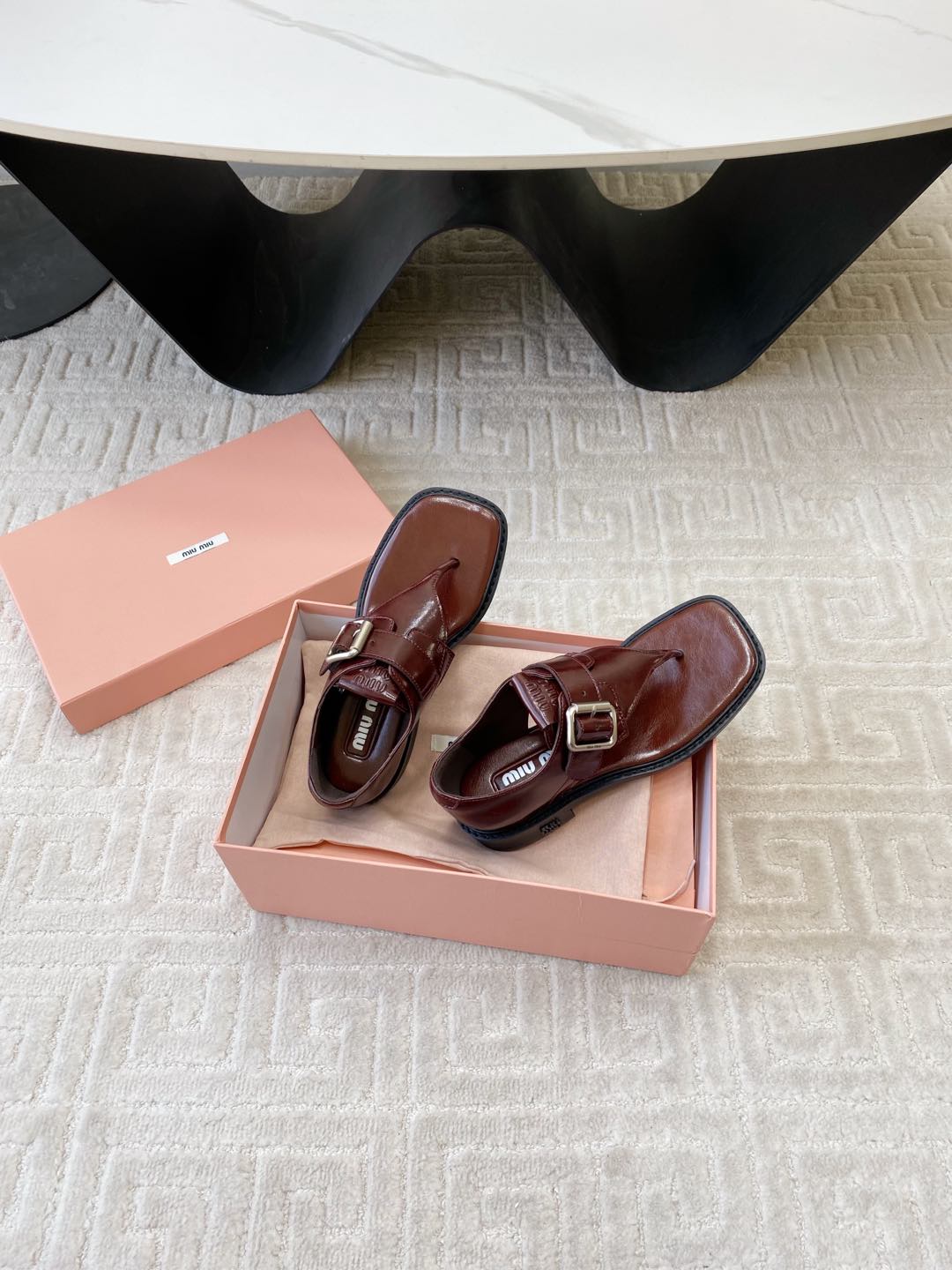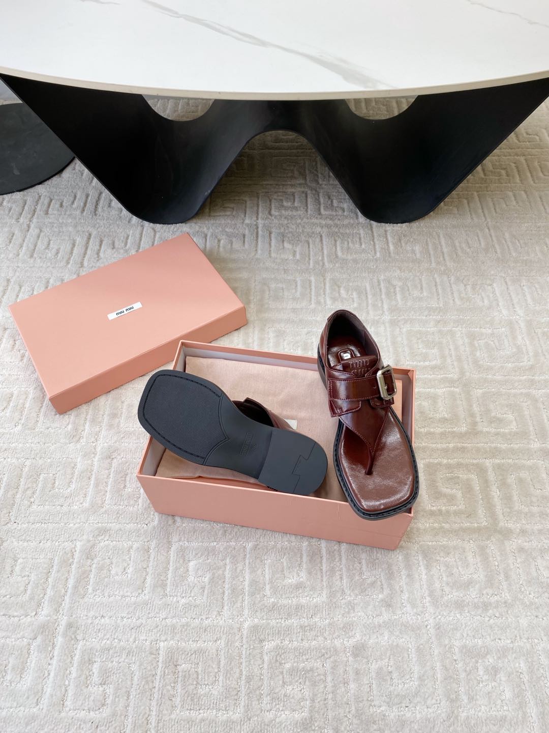 THONG SANDALS IN RED BROWN SHINY LAMBSKIN WITH SILVER BUCKLE