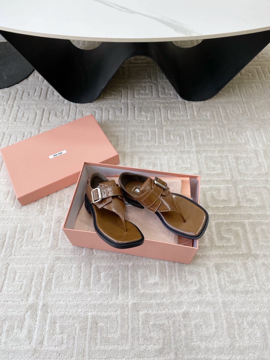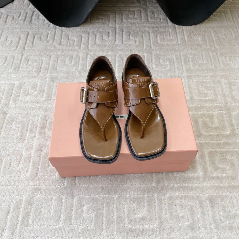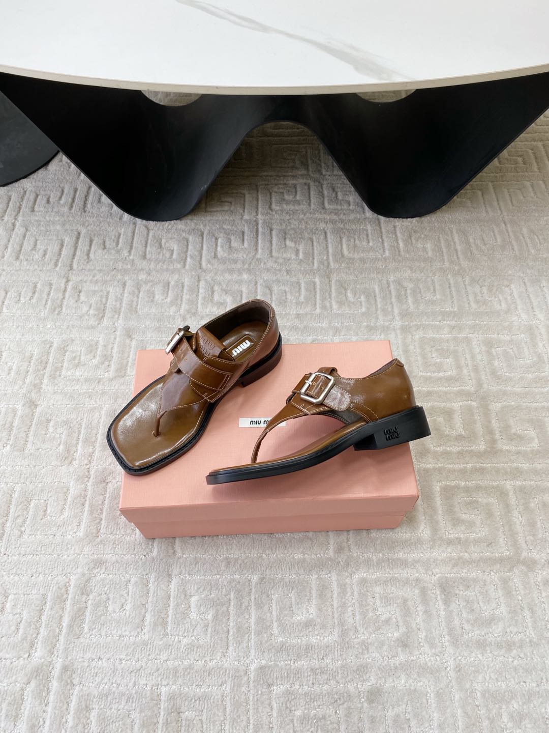 THONG SANDALS IN RUSSET BROWN SHINY LAMBSKIN WITH SILVER BUCKLE