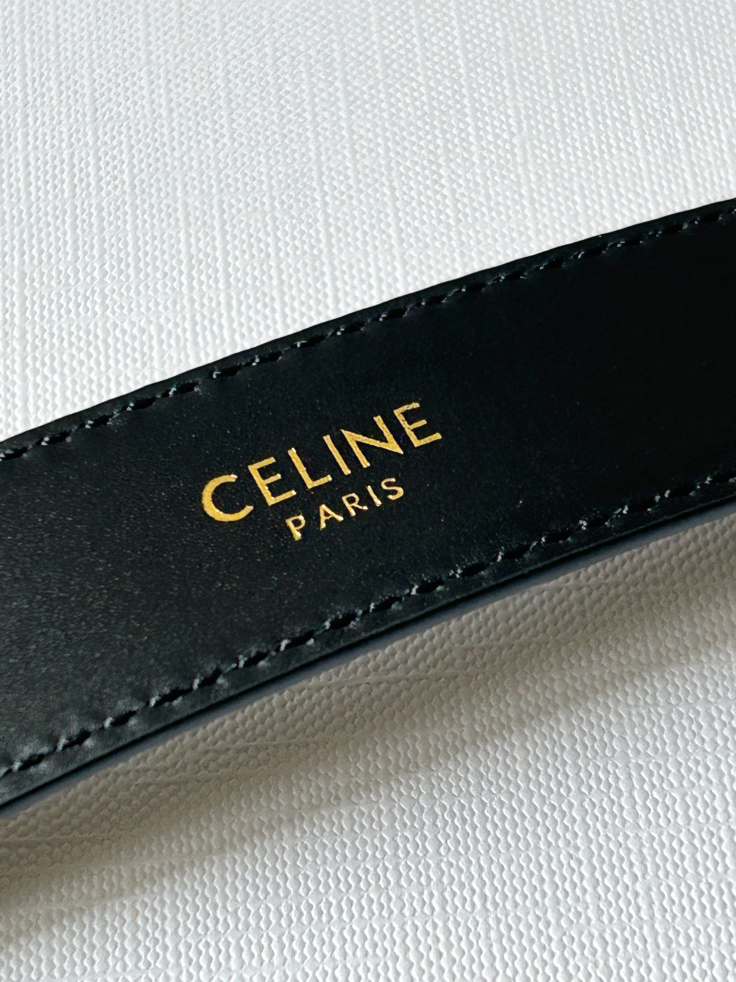 TRIOMPHE BELT 24MM IN BLACK CALFSKIN WITH LEATHER BUCKLE GOLD HARDWARE