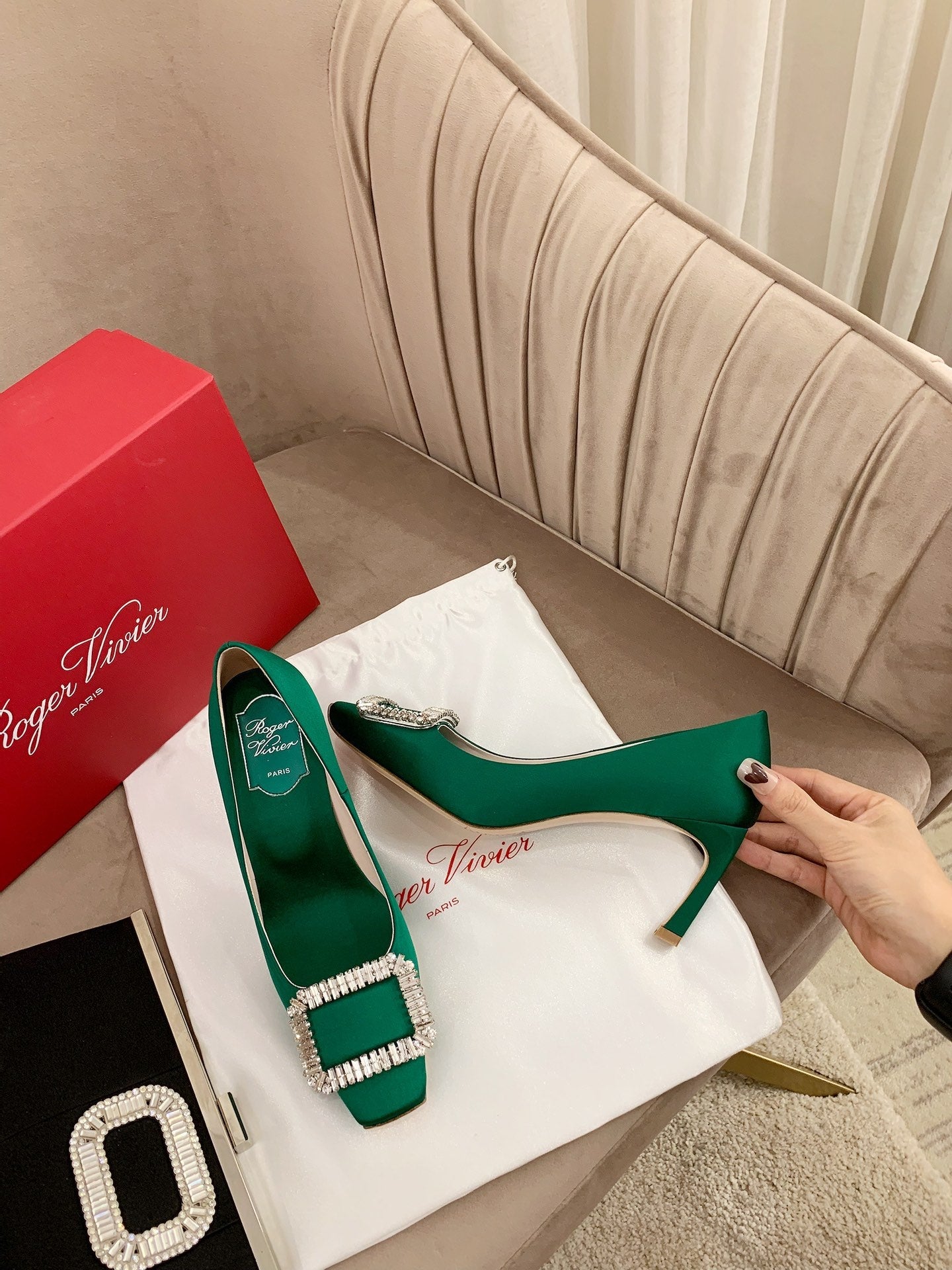TROMPETTE PUMPS IN GREEN SILK CRYSTAL BUCKLE
